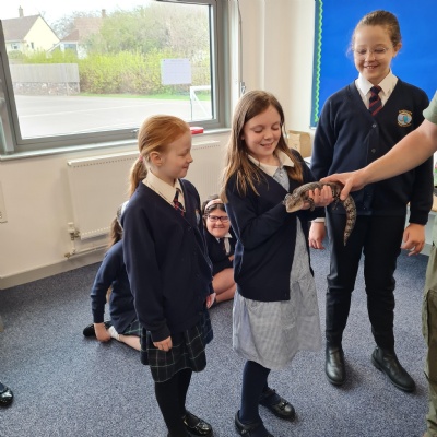 As part of our living things and habitats topic, Chris the Animal Man. Chris brought a wide range of animals with him from an Owl to an armadillo, who scouted around the classroom. The children were able to ask Chris a number of questions on the different animals. This visit allowed the children to build on their knowledge of the animal life cycles, which they have studied in Science.
