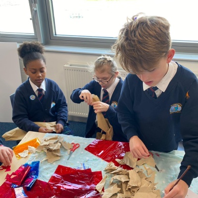 As part of the children's art project this half term, the children have been studying collage. It has been great to see the children learn and master using materials to create certain impressions. The final pieces were 3 native animals to England and linked to the school name. The children worked very well in the groups to make these pieces, we look forward to hanging them up at school.
