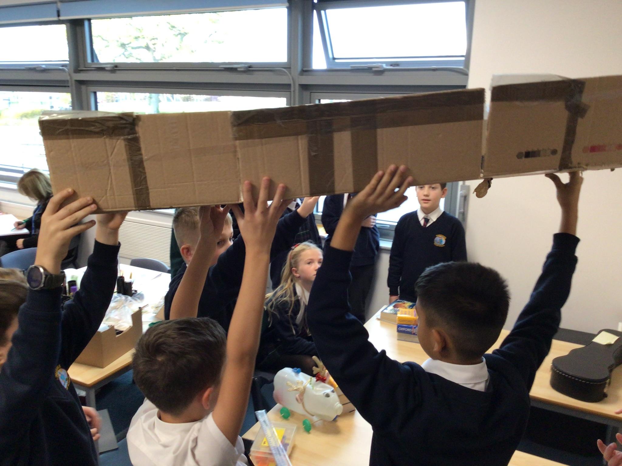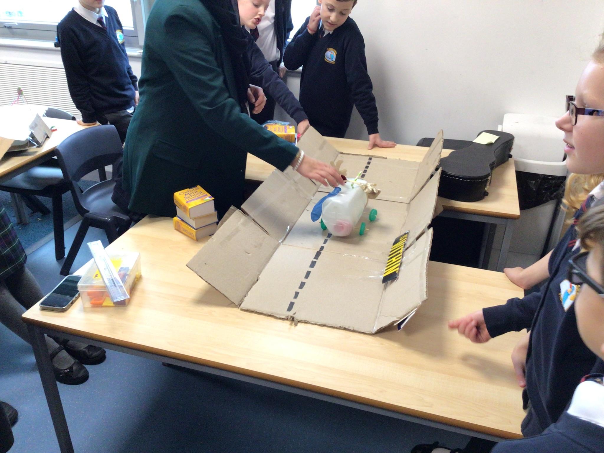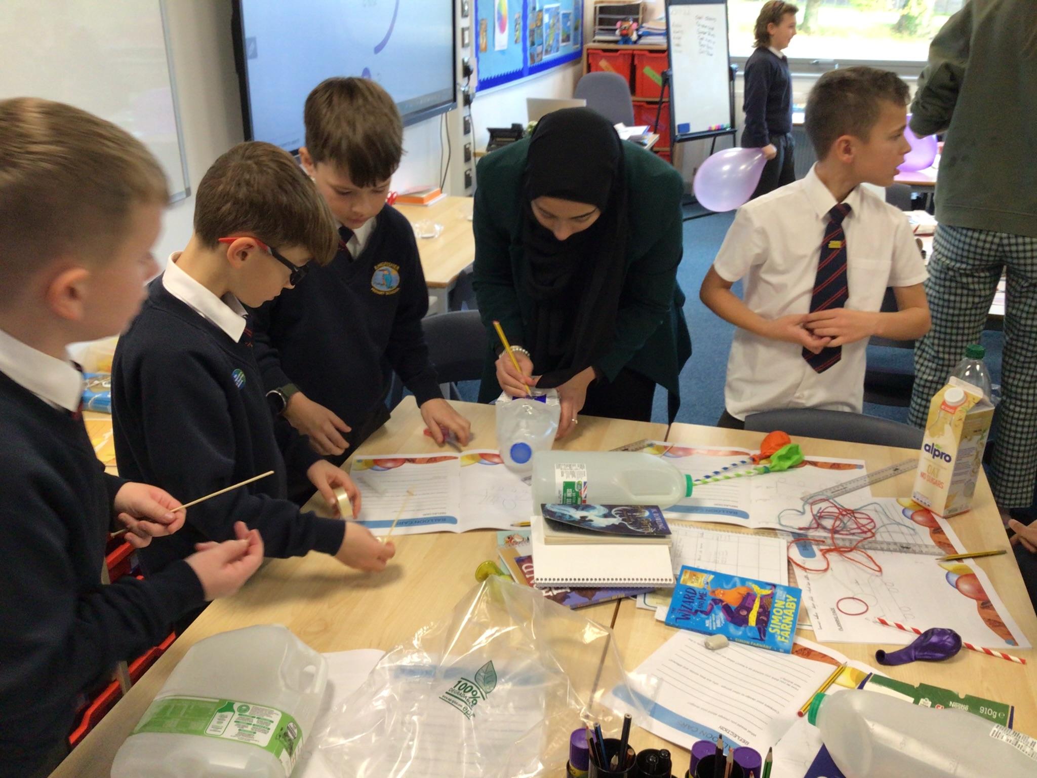 This week, we had a visit from Leonardo’s who hosted a day of cool aeronautics. After bringing in some recycling, we were introduced to the activities we would do. The first activity was making a balloon powered car. We split into teams and looked at some different designs that had been made before. After this, we created a plan for our cars in teams. We later used these to create a balloon powered car and tested how far these travelled. We discussed the forces that were acting on the car and how this would impact the distance they travelled. Our second activity was to make a bridge for our car to travel across. We repeated the same design process before starting to make our own bridges. A key discussion point here was how to reinforce the structure of the bridge and to make sure to test them throughout the making process to make improvements. When we were ready, we tested whether our bridges would hold our car and how much weight they could hold before collapsing. Finally, we discussed the improvements we could have made to our designs and had the opportunity to ask some questions to people in the engineering industry which included a pilot!