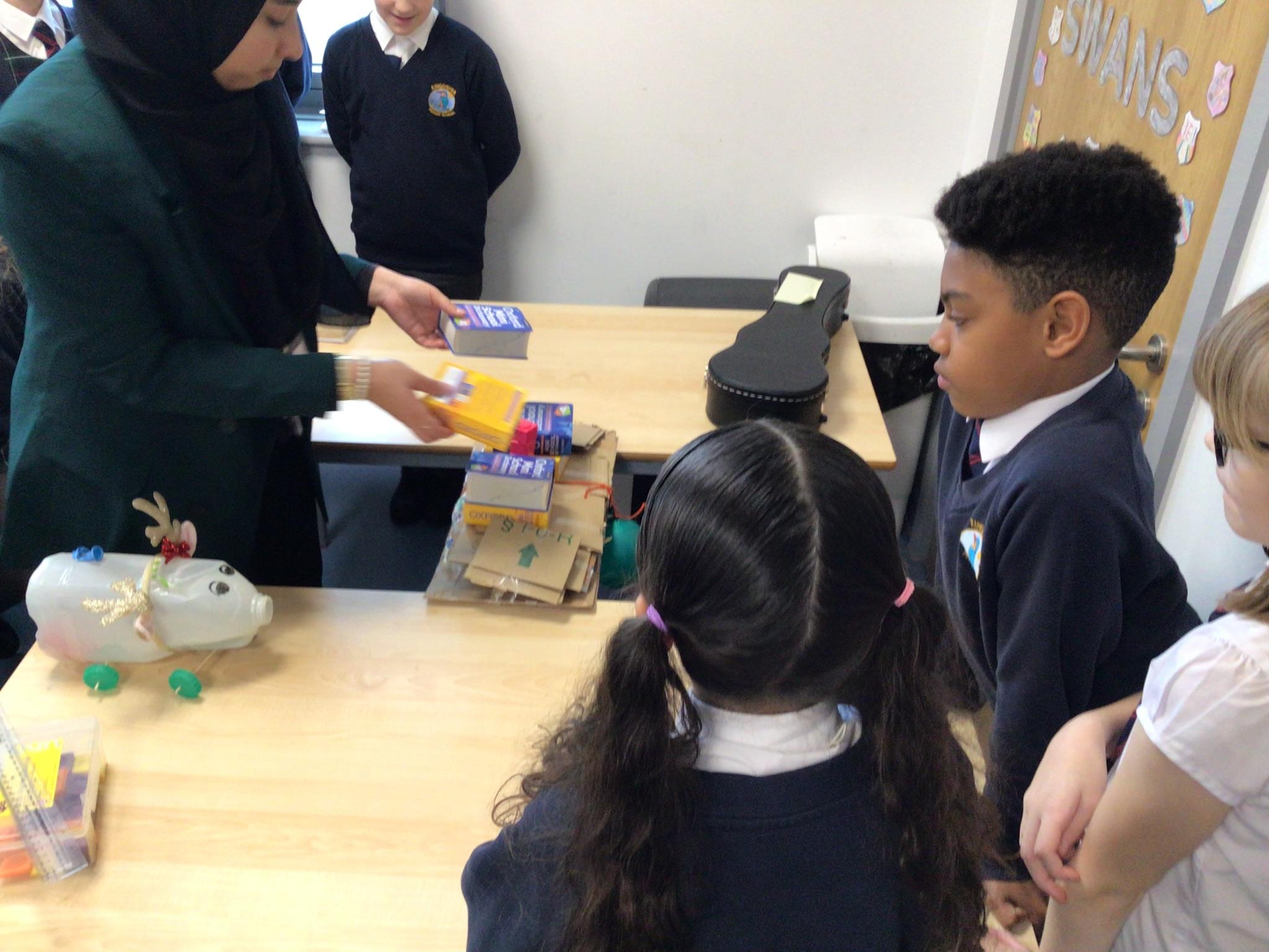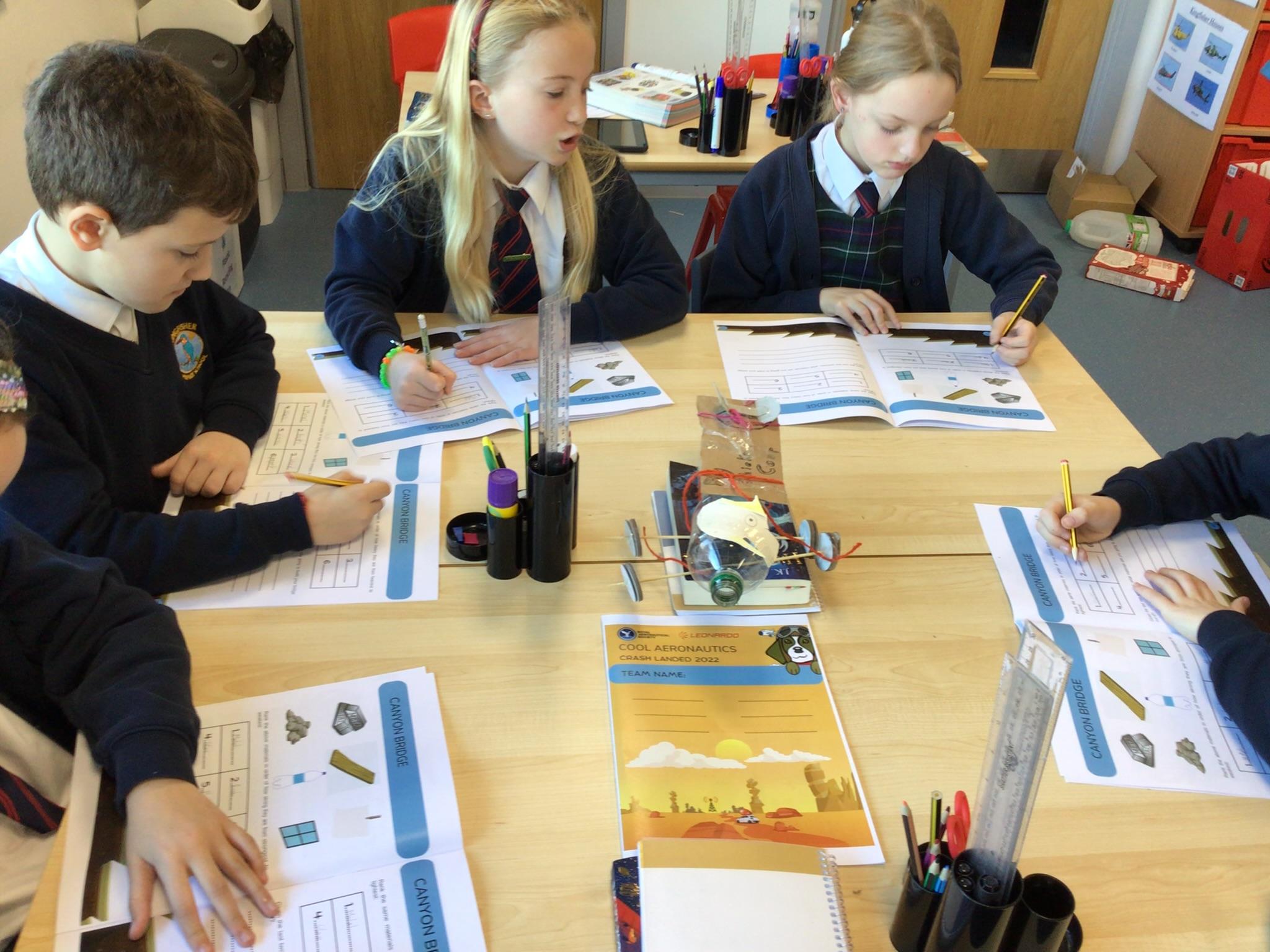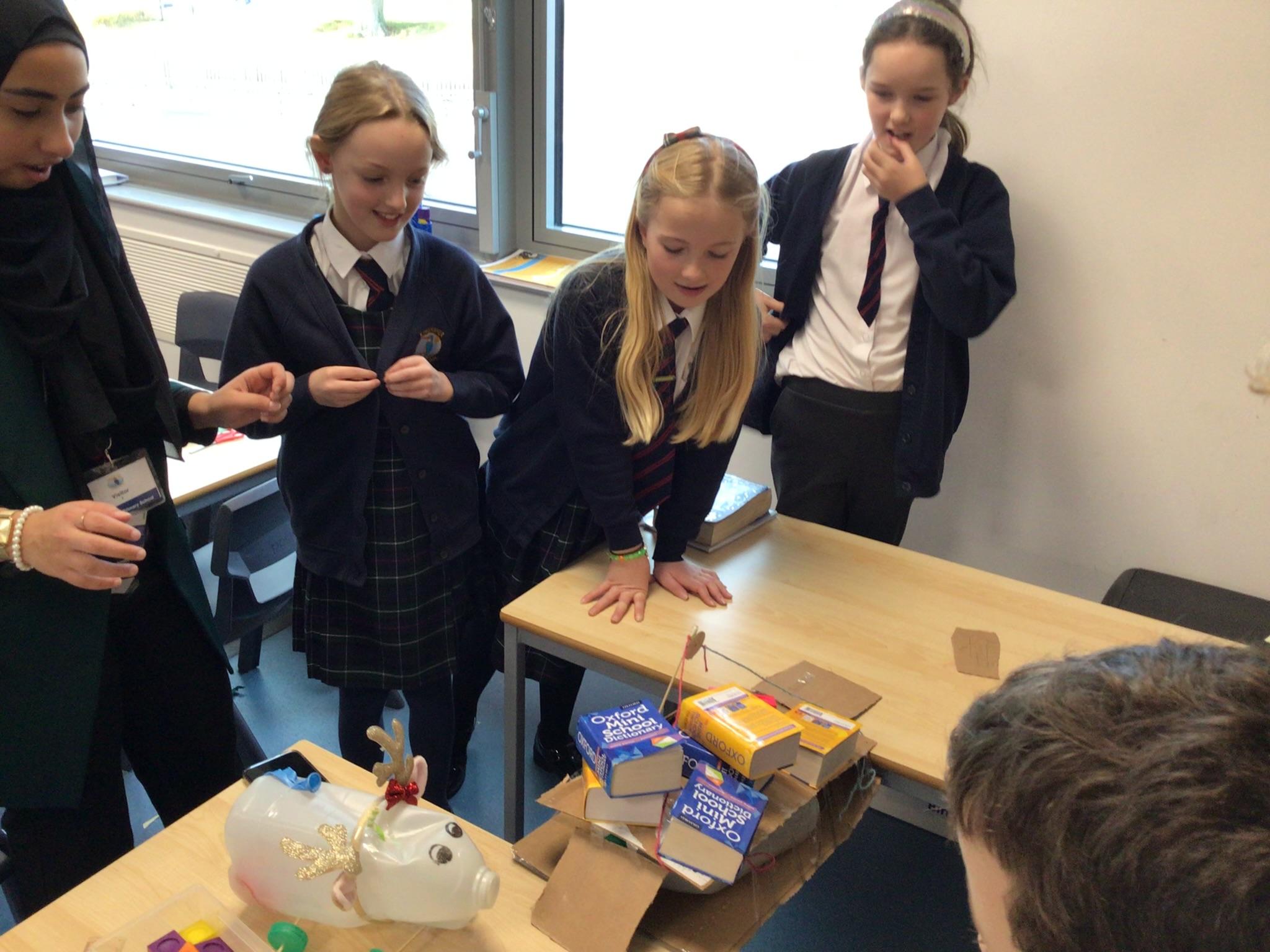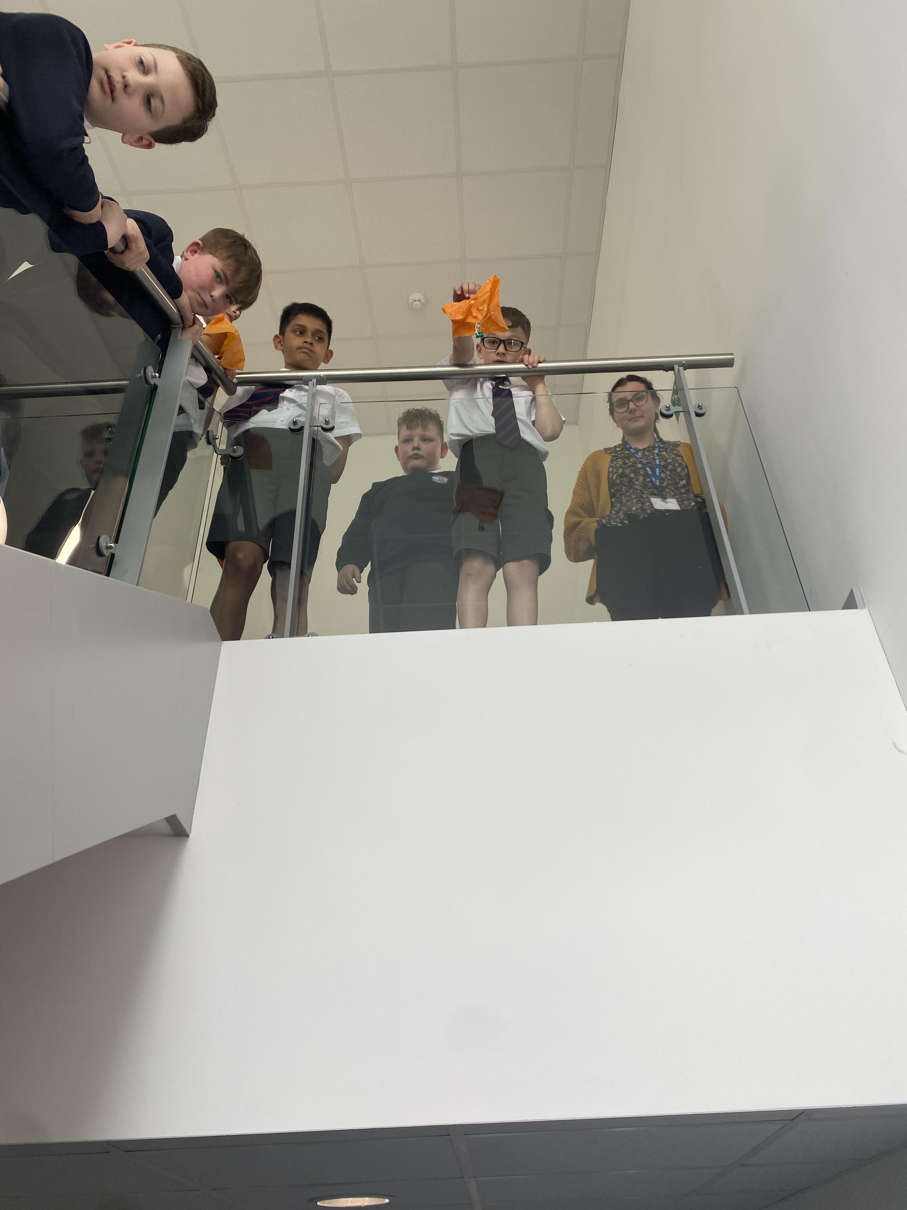 This week, we had a visit from Leonardo’s who hosted a day of cool aeronautics. After bringing in some recycling, we were introduced to the activities we would do. The first activity was making a balloon powered car. We split into teams and looked at some different designs that had been made before. After this, we created a plan for our cars in teams. We later used these to create a balloon powered car and tested how far these travelled. We discussed the forces that were acting on the car and how this would impact the distance they travelled. Our second activity was to make a bridge for our car to travel across. We repeated the same design process before starting to make our own bridges. A key discussion point here was how to reinforce the structure of the bridge and to make sure to test them throughout the making process to make improvements. When we were ready, we tested whether our bridges would hold our car and how much weight they could hold before collapsing. Finally, we discussed the improvements we could have made to our designs and had the opportunity to ask some questions to people in the engineering industry which included a pilot!