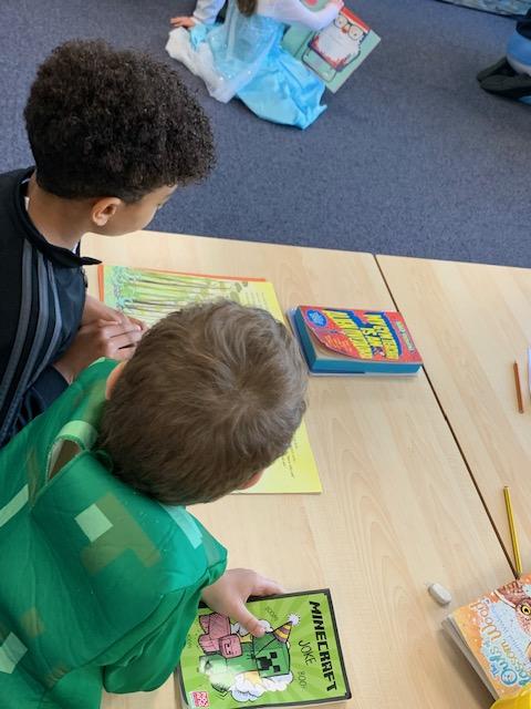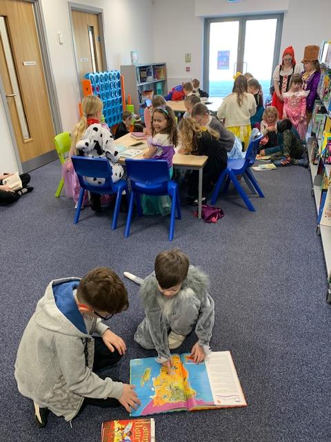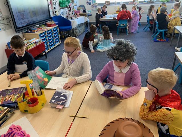 To celebrate World Book Day, the children went down to year two to hear some of the children read. The children also read some of their books to the younger children. At the end of the session, the children were able to choose a library book and have a chance to read this together.