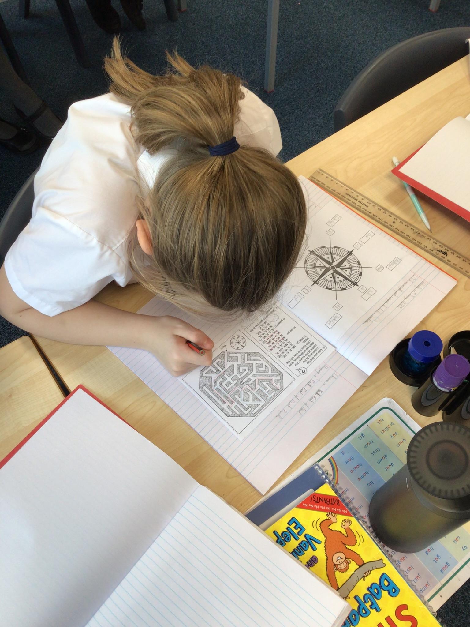 In geography this week, we were studying compass directions. After examining the compass and where different countries are based on compass directions, the children completed a compass maze.