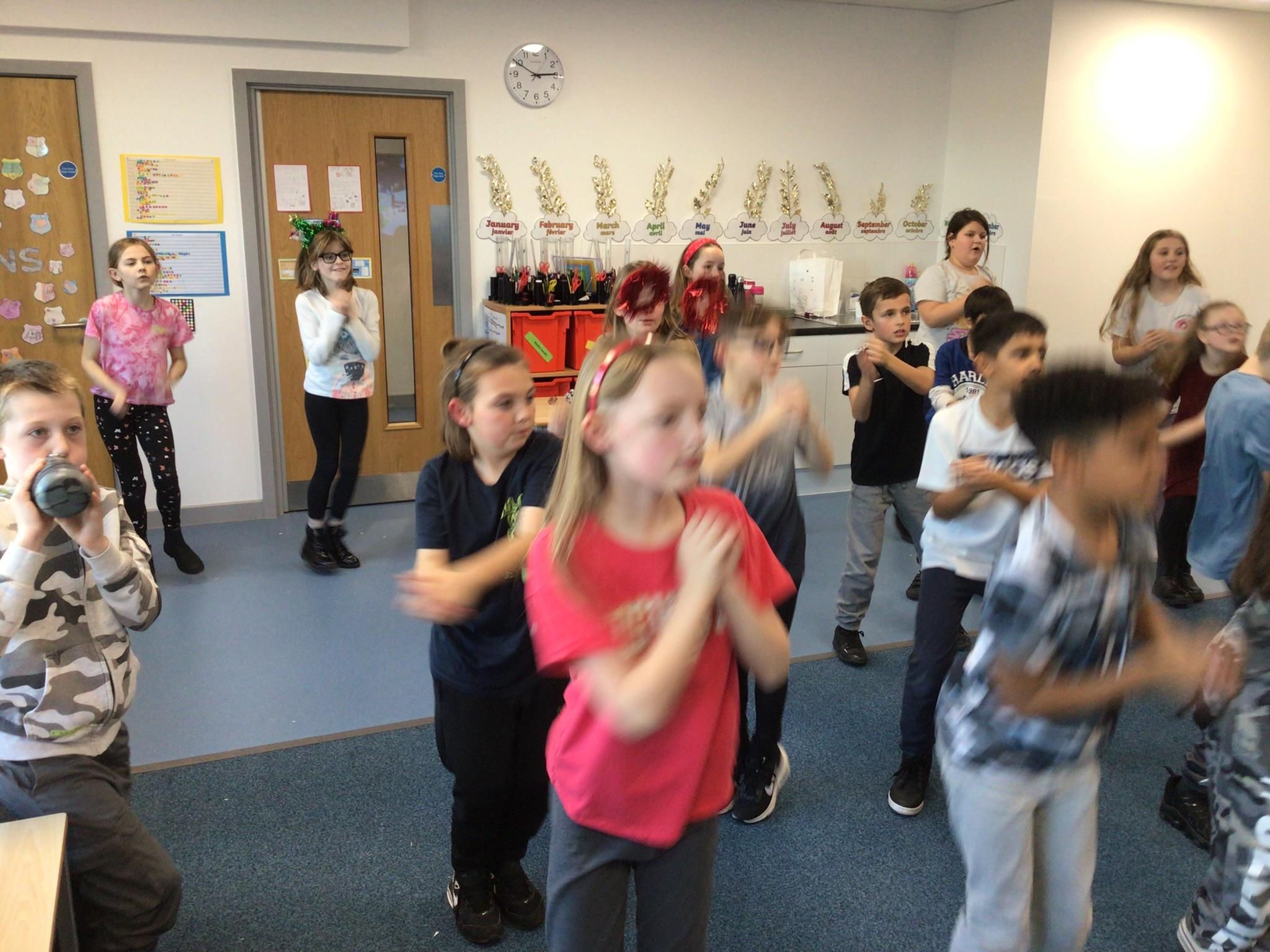To celebrate Christmas, we made Christmas cards, 3D Christmas trees out of yarn and some wooden baubles. To finish off the day, we had a Christmas party complete with dancing, games and a visit from Santa.