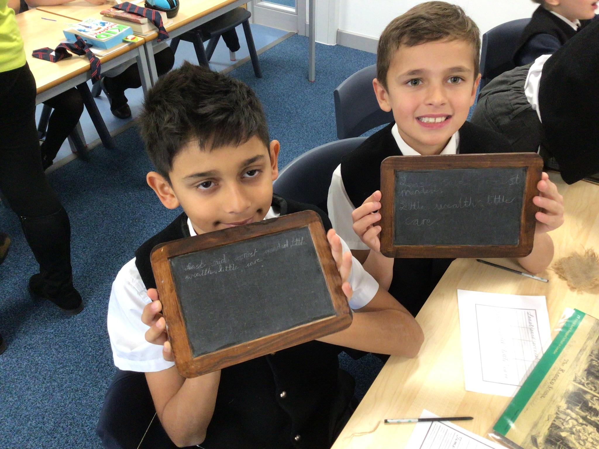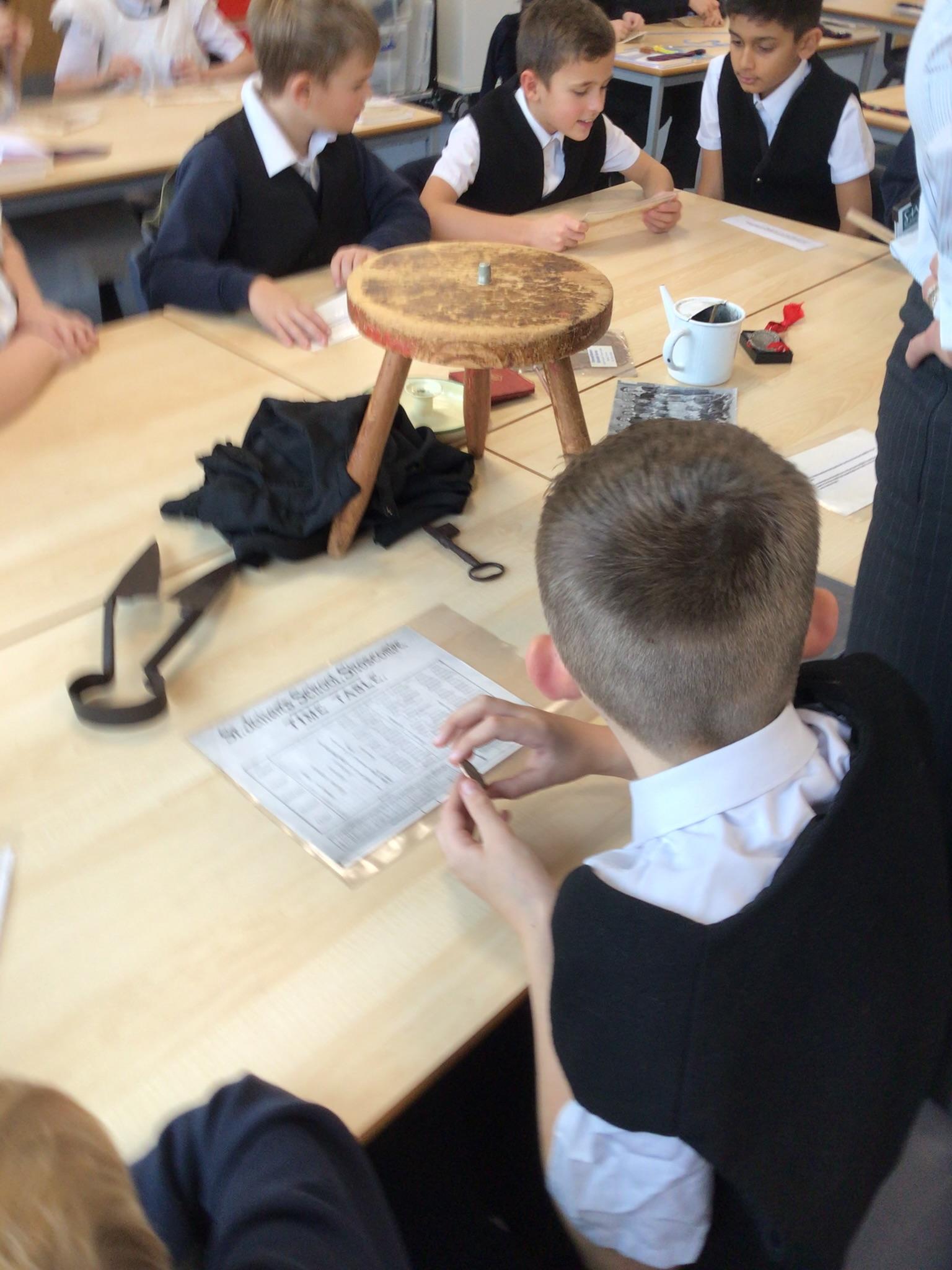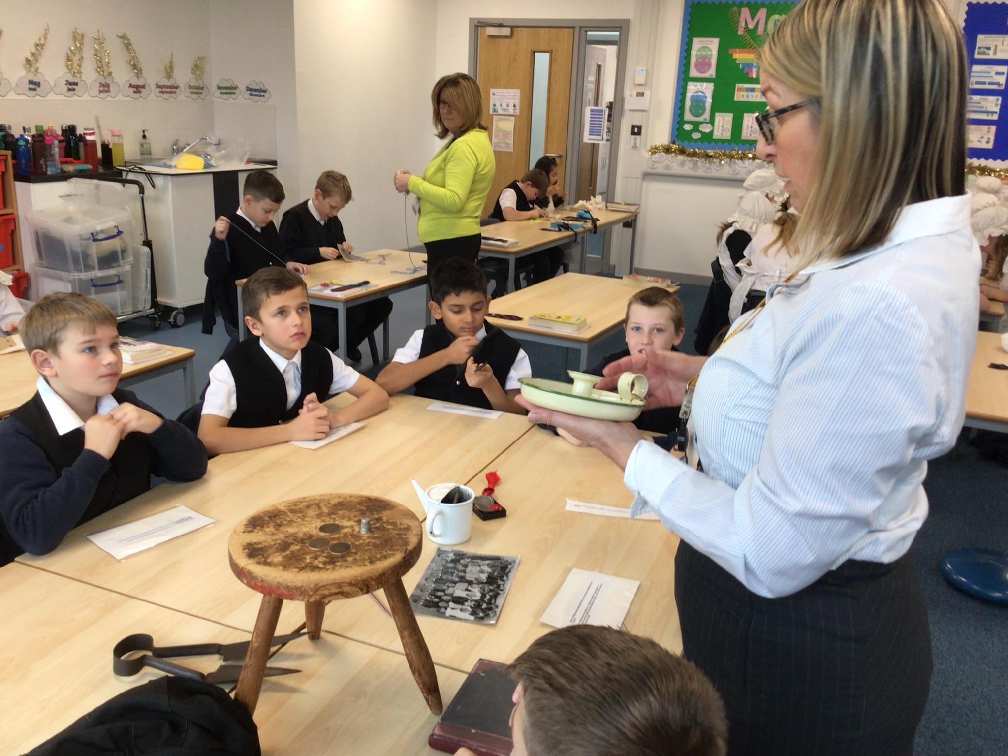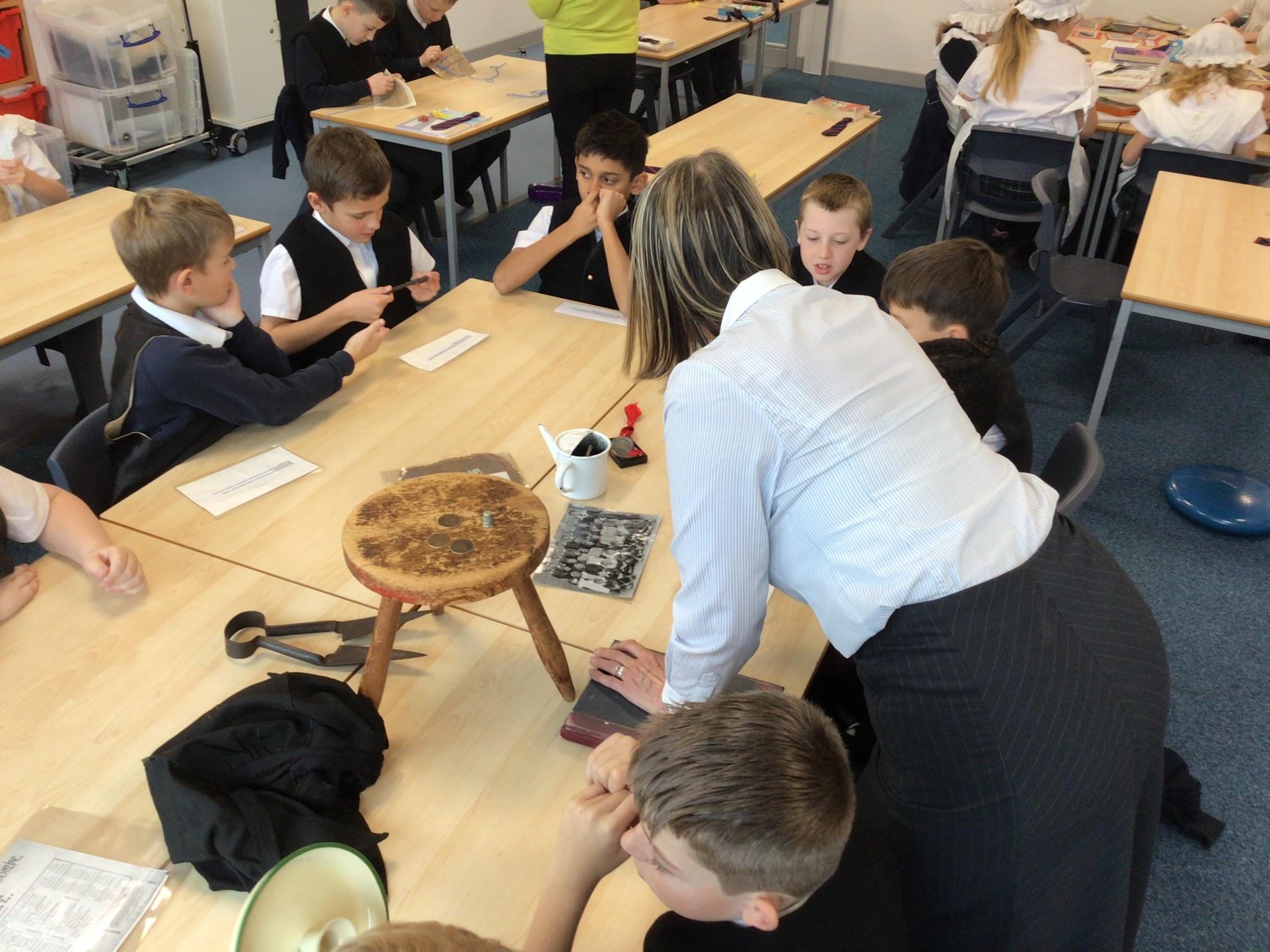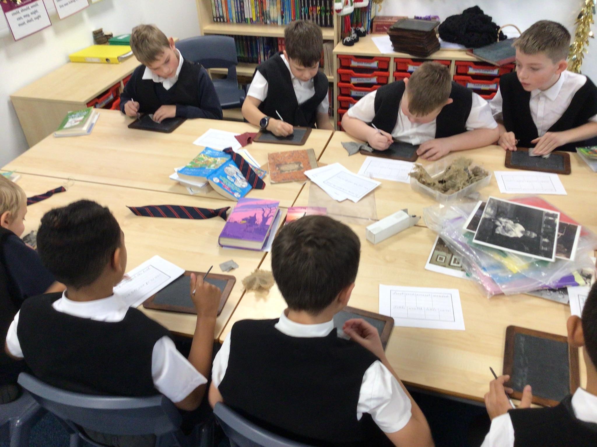 As part of our history work on the Victorians, we had a visit from the South West Heritage Trust. To start our morning, we pretended we were in a Victorian school and the children experienced what this was like. Following this, the children examined some Victorian artefacts and completed some Victorian activities.