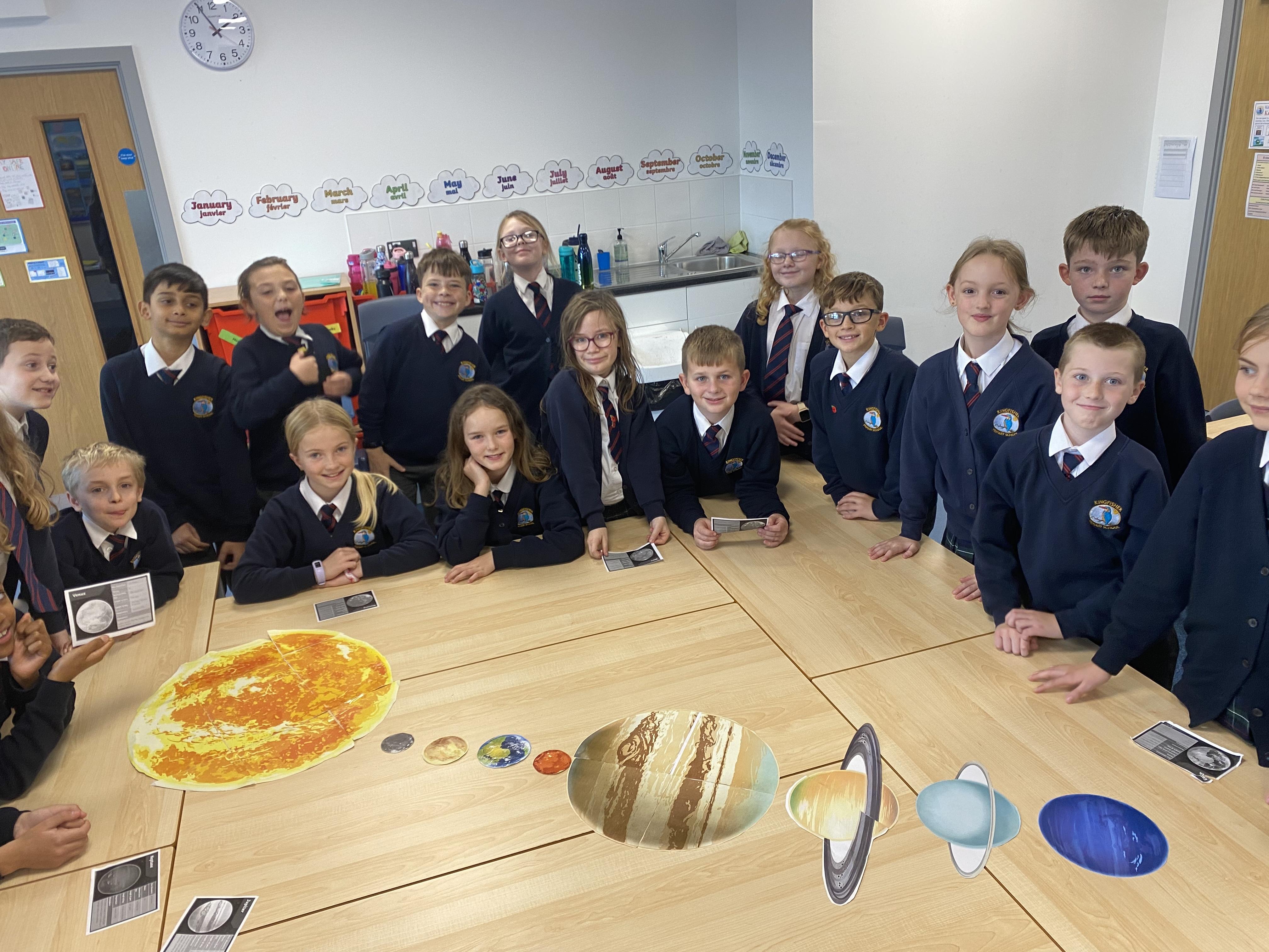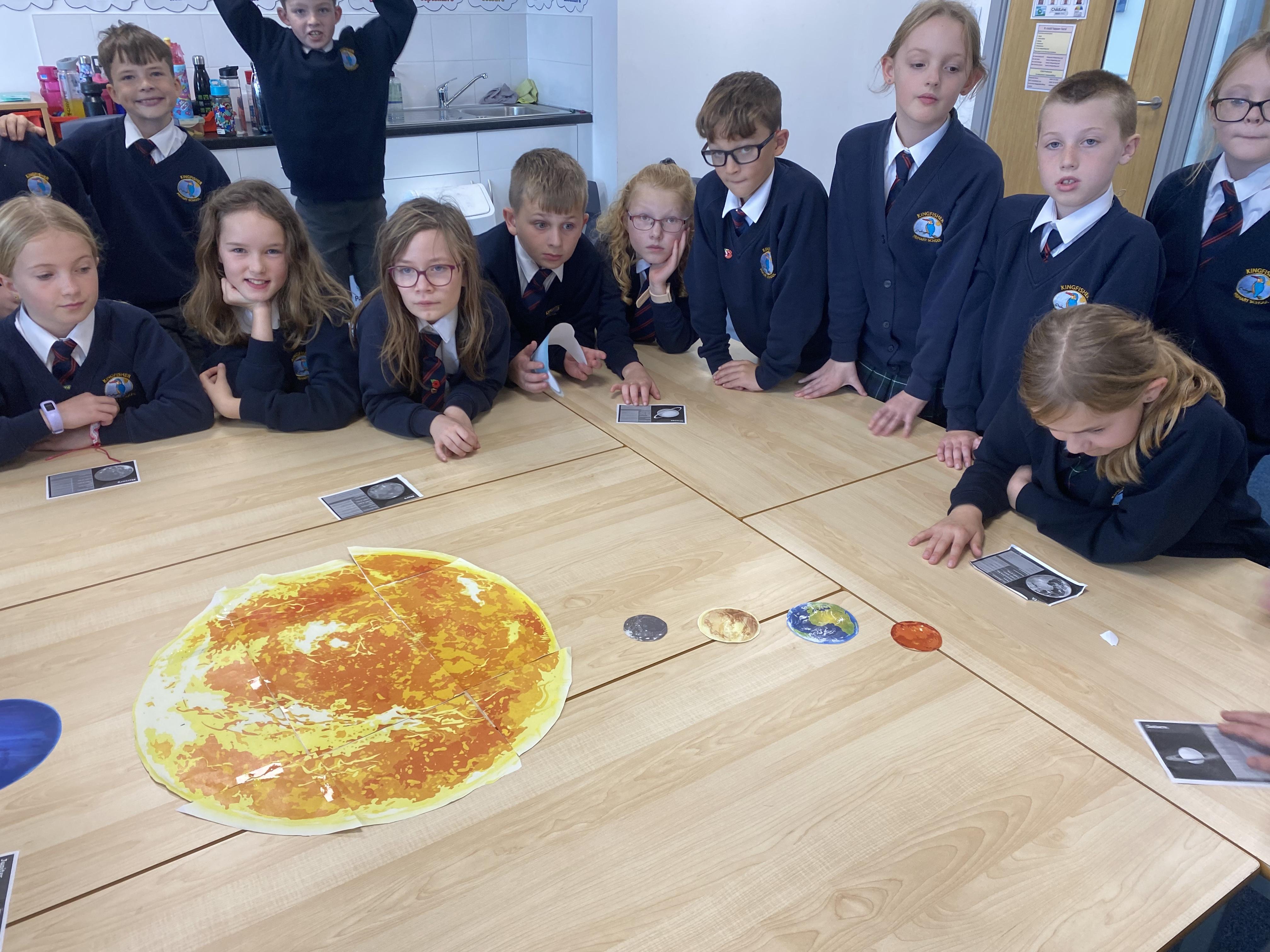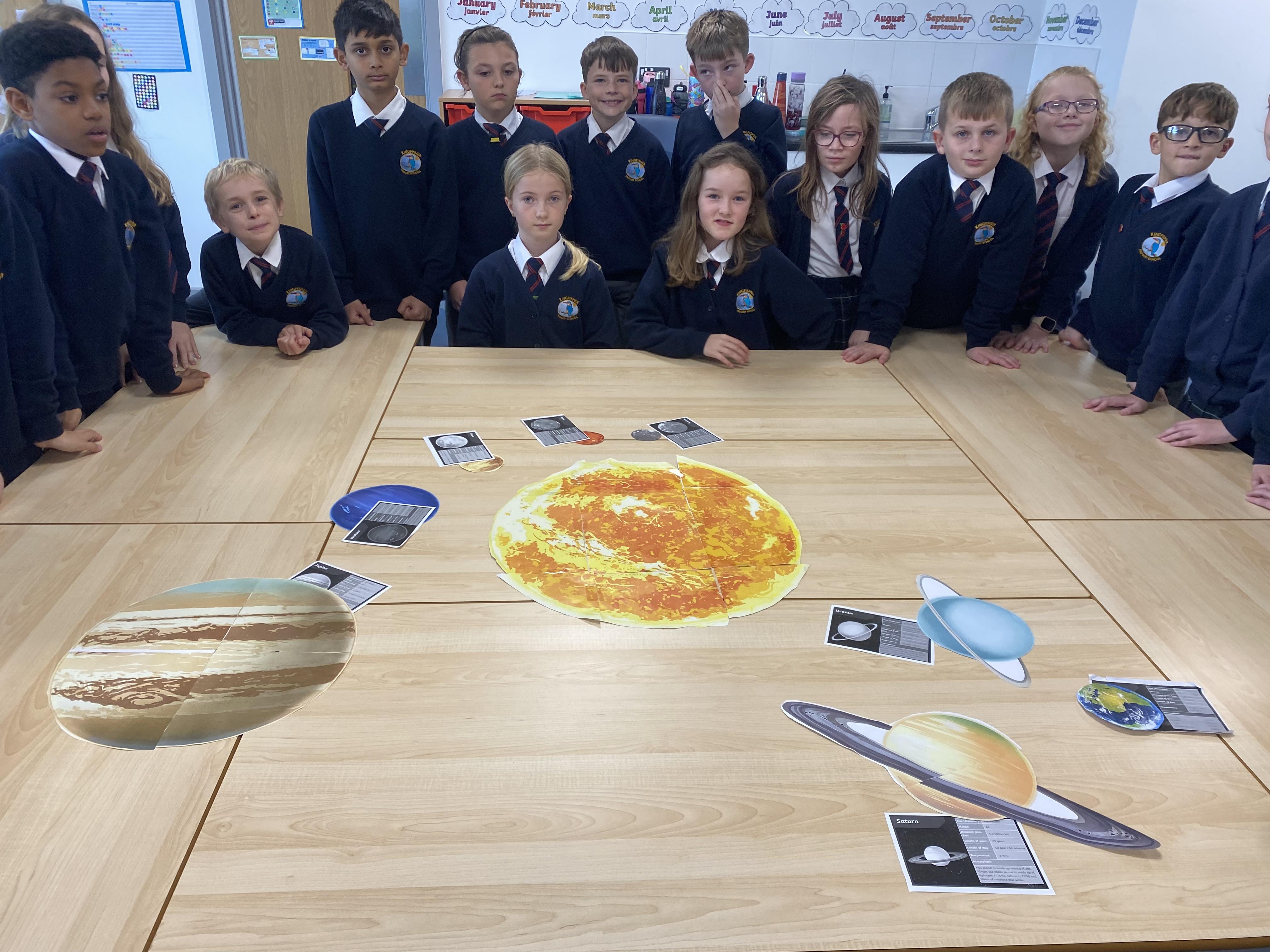 In science this week, we completed an investigation into the solar system and its planets. We reviewed our previous learning of the model of the solar system and discussed the fact that the sun was in the centre. We cut out planets and used fact cards to identify each planet using its size and appearance. After this, we ordered the planets as they appear in the solar system. We discussed how long it took each planet to orbit the sun. To conclude our lesson, we reviewed the key facts of each planet and discussed mnemonics to remember their order.