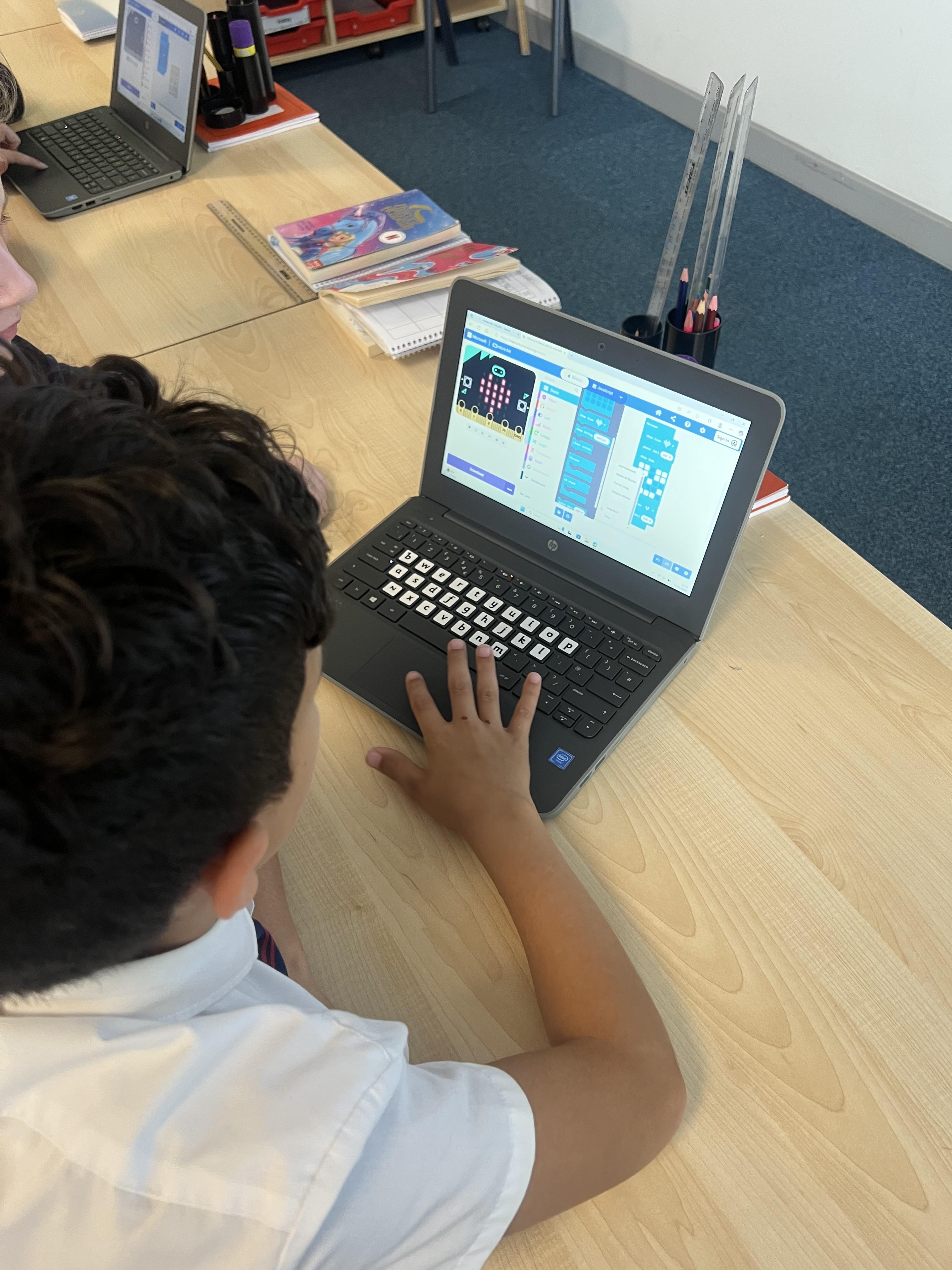We have enhanced our coding skills using microbits this term. By creating algorithms, we have programmed microbits to create a range of games and animations.