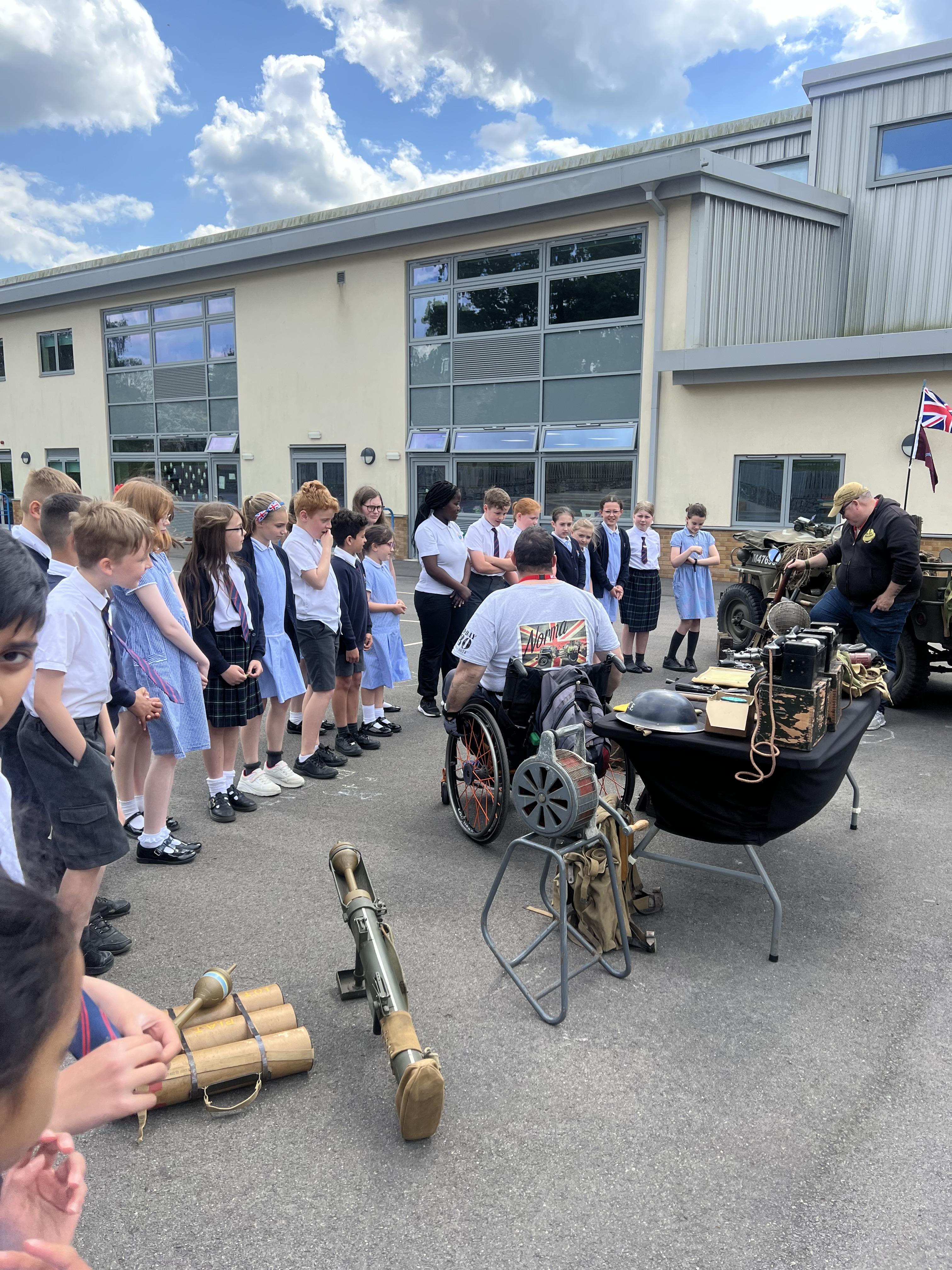 We explored the history of VE Day, focusing on celebrations held around the UK. We wrote a recount from the viewpoint of a child attending a street party, explored the impact of code breaking - creating our own cypher machines to create and decipher code. A special moment was exploring WW2 machinery, equipment and vehicles.