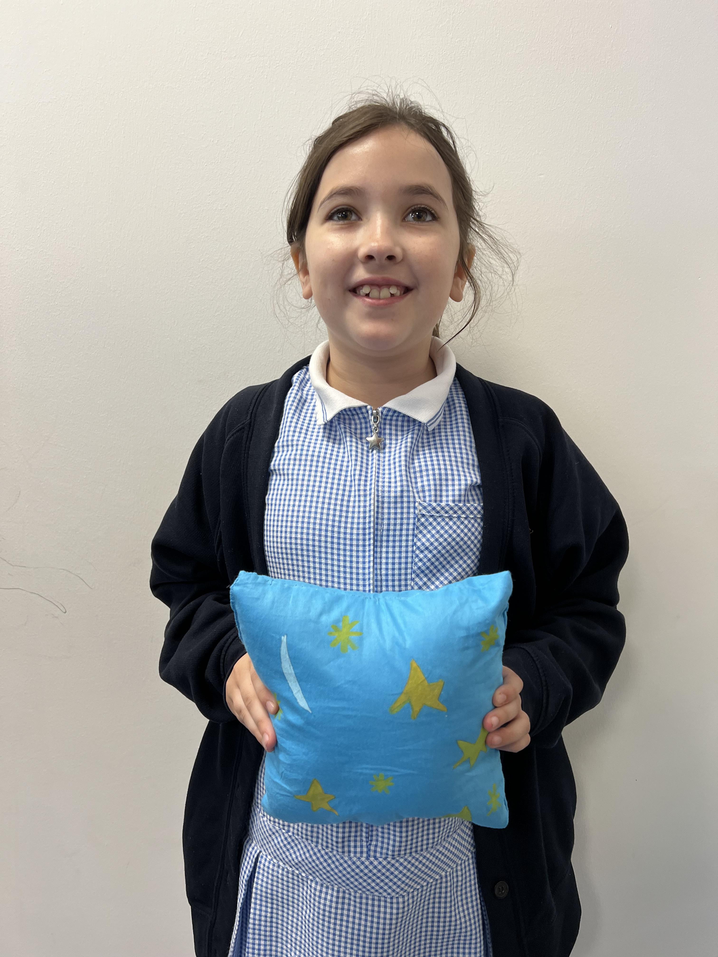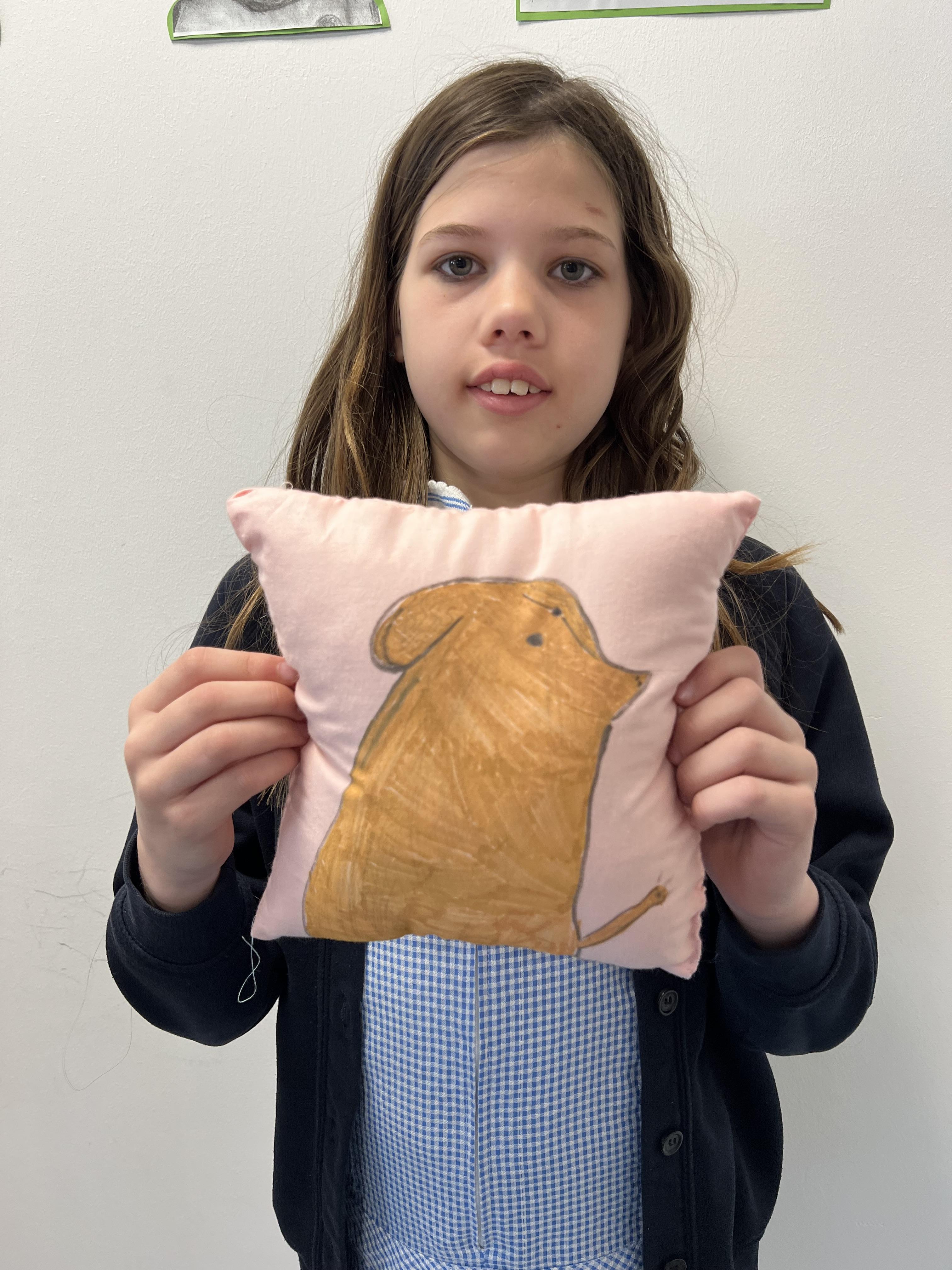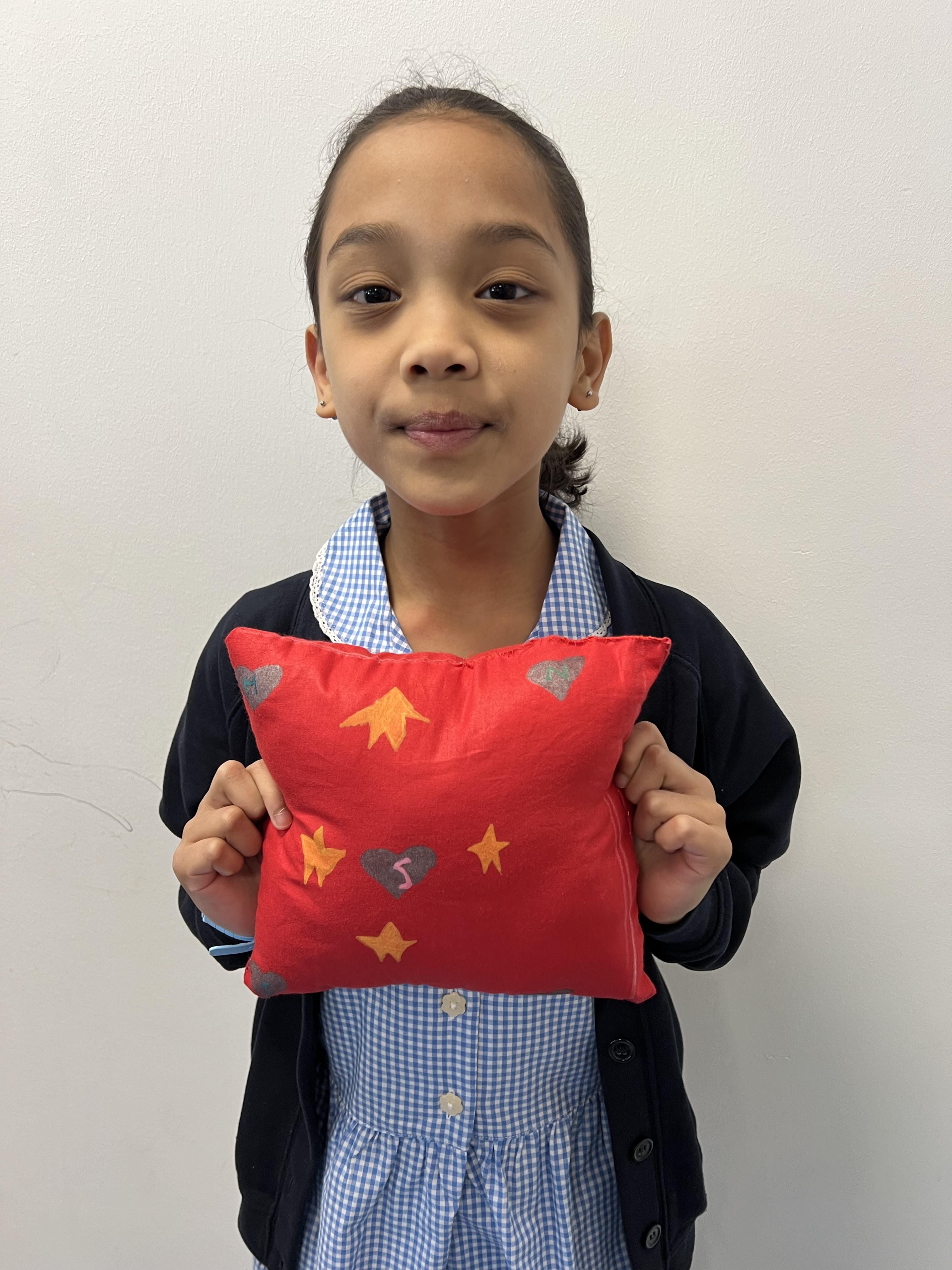 We worked hard to create our very own pillows. After researching previous products and carefully designing our own, we used our sewing skills to make. We created a seam allowance but using a chalk pencil, used a back stitch to ensure the pillows would stay together and an overstitch to sew up our stuffing gap. We showed brilliant resilience and determination!