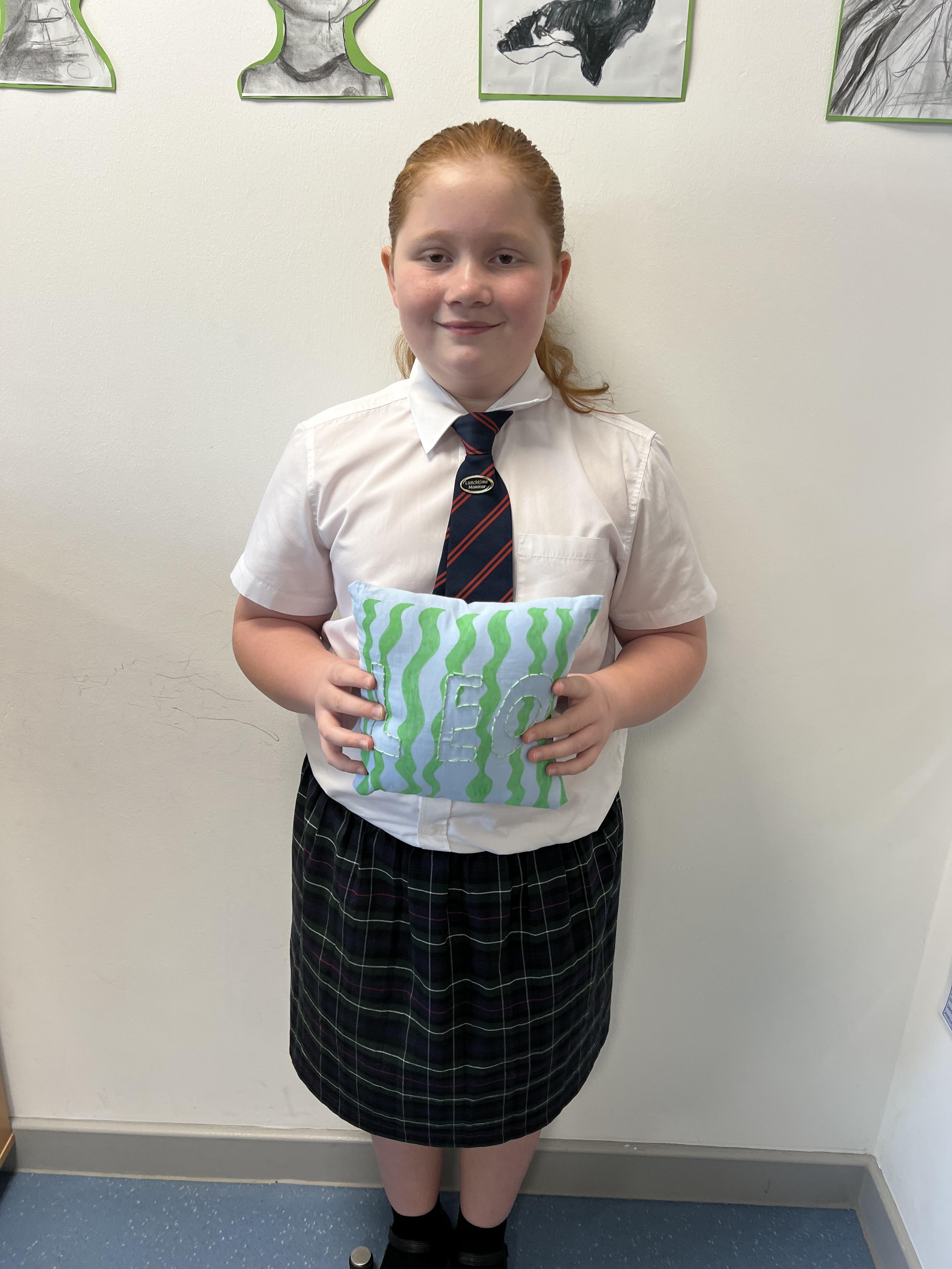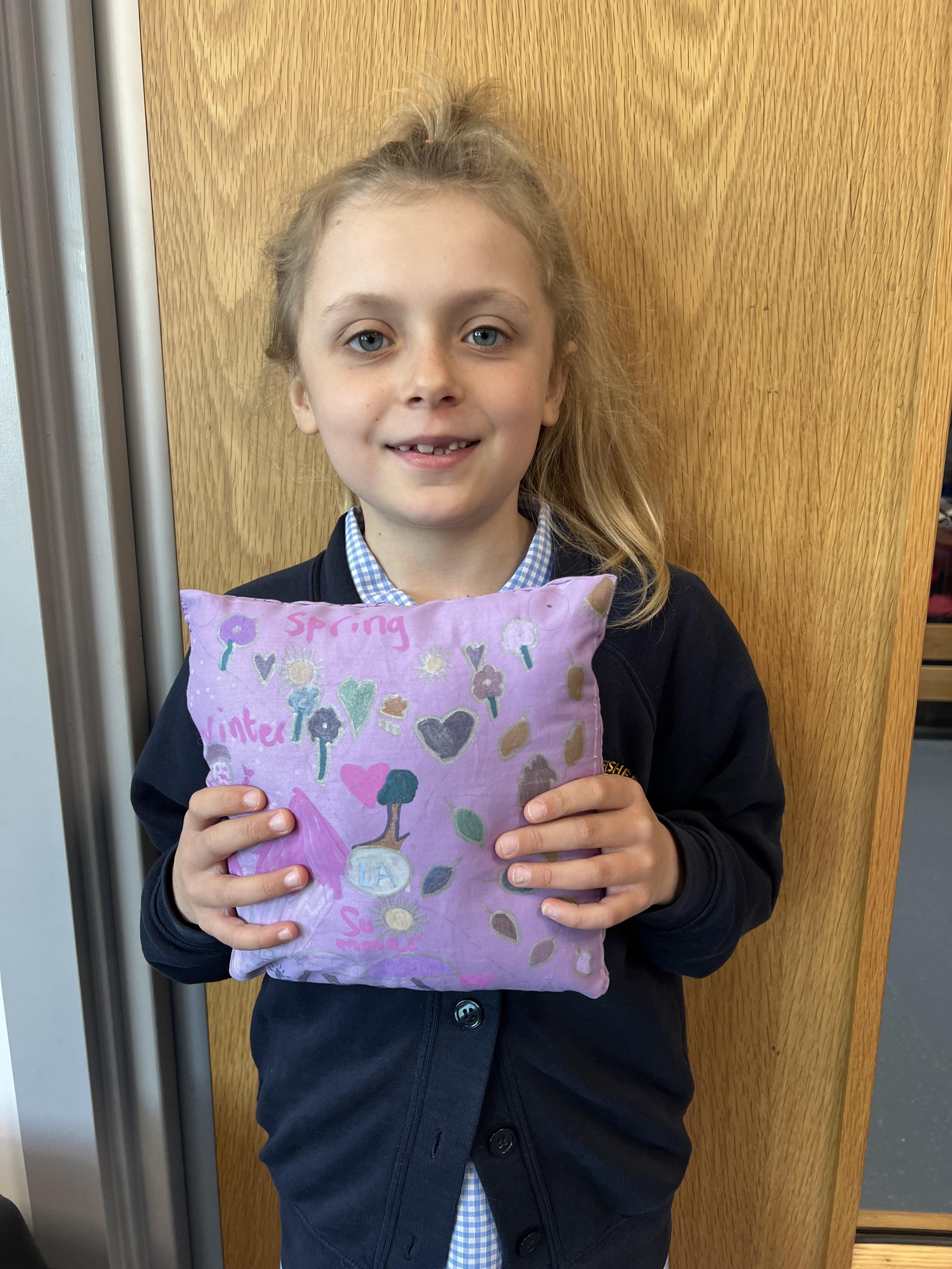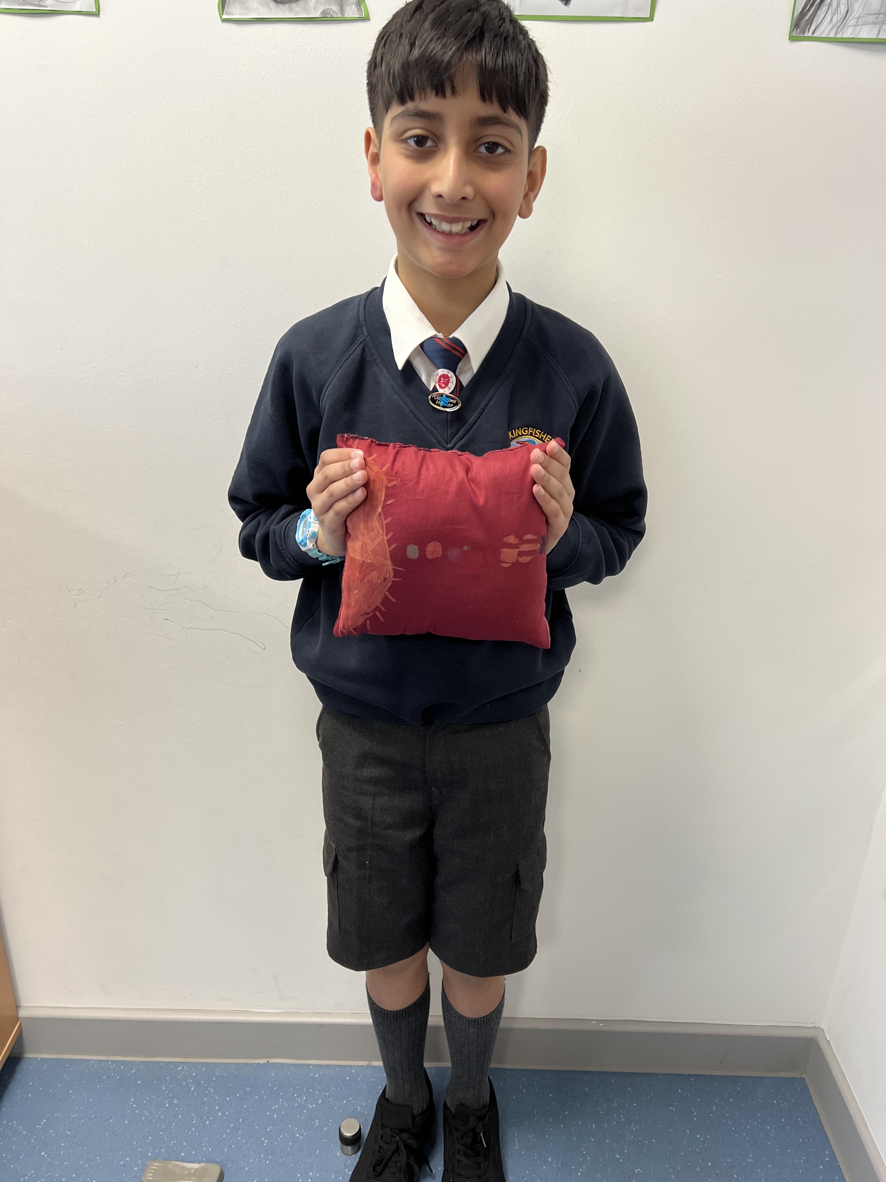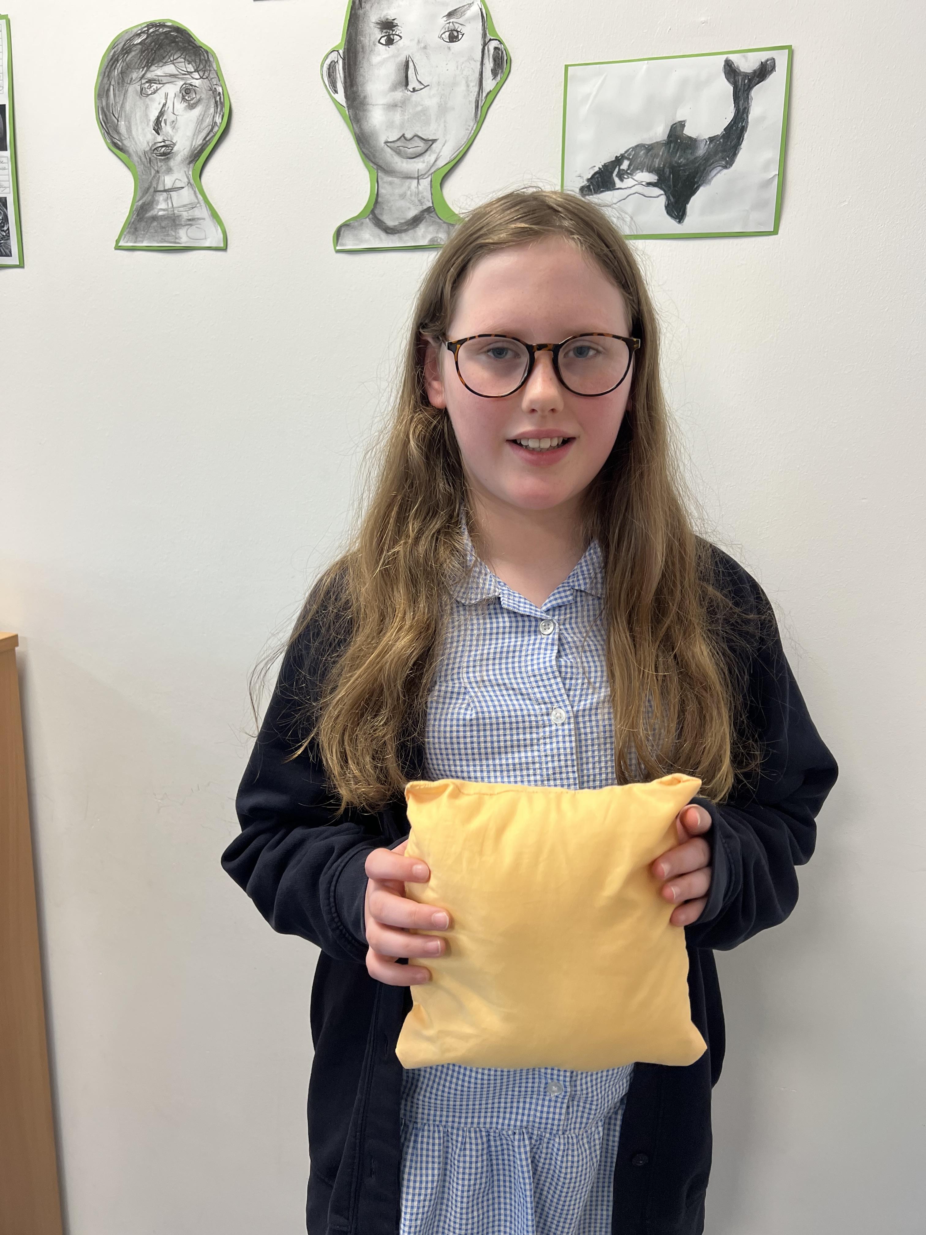 We worked hard to create our very own pillows. After researching previous products and carefully designing our own, we used our sewing skills to make. We created a seam allowance but using a chalk pencil, used a back stitch to ensure the pillows would stay together and an overstitch to sew up our stuffing gap. We showed brilliant resilience and determination!
