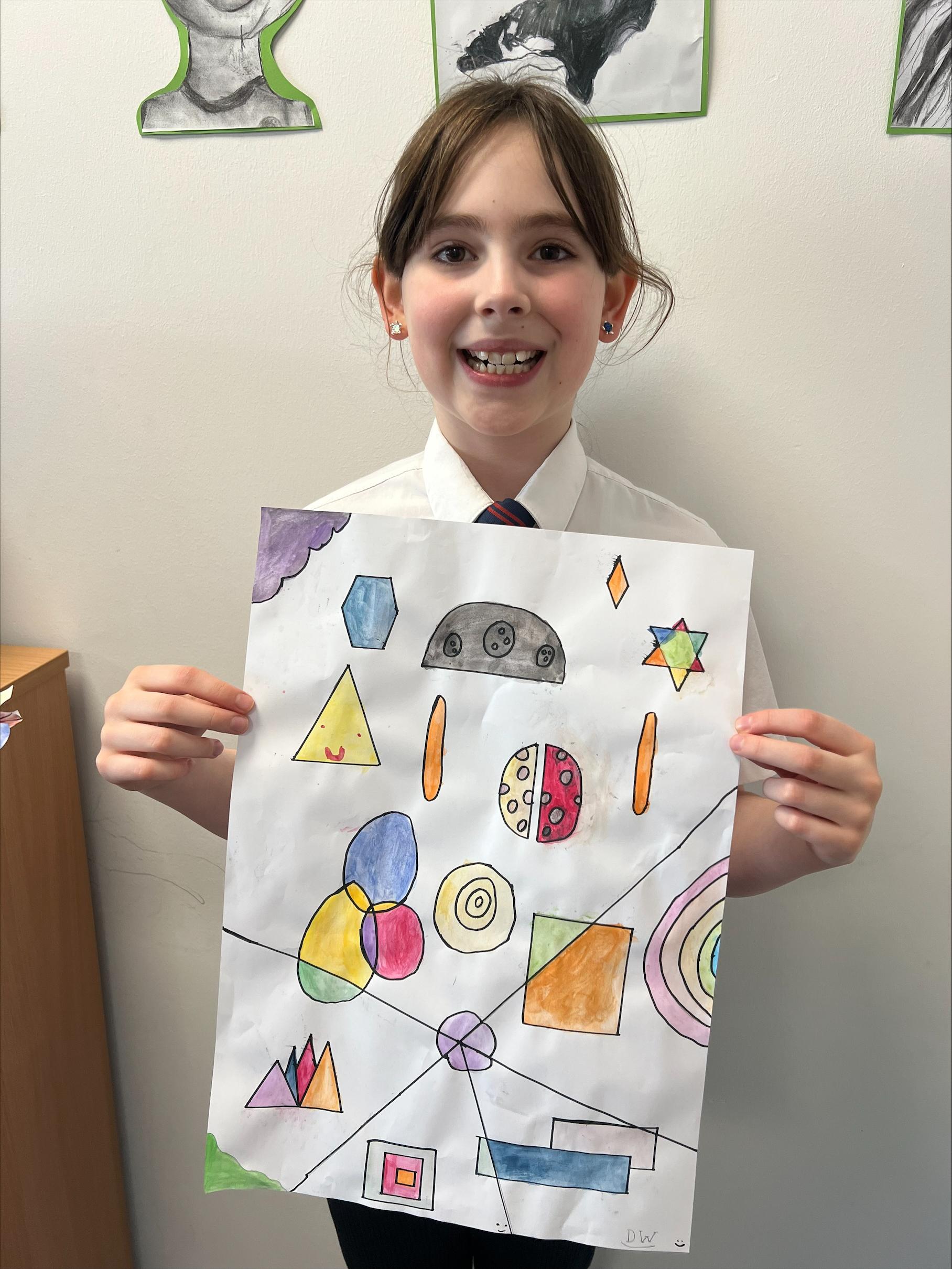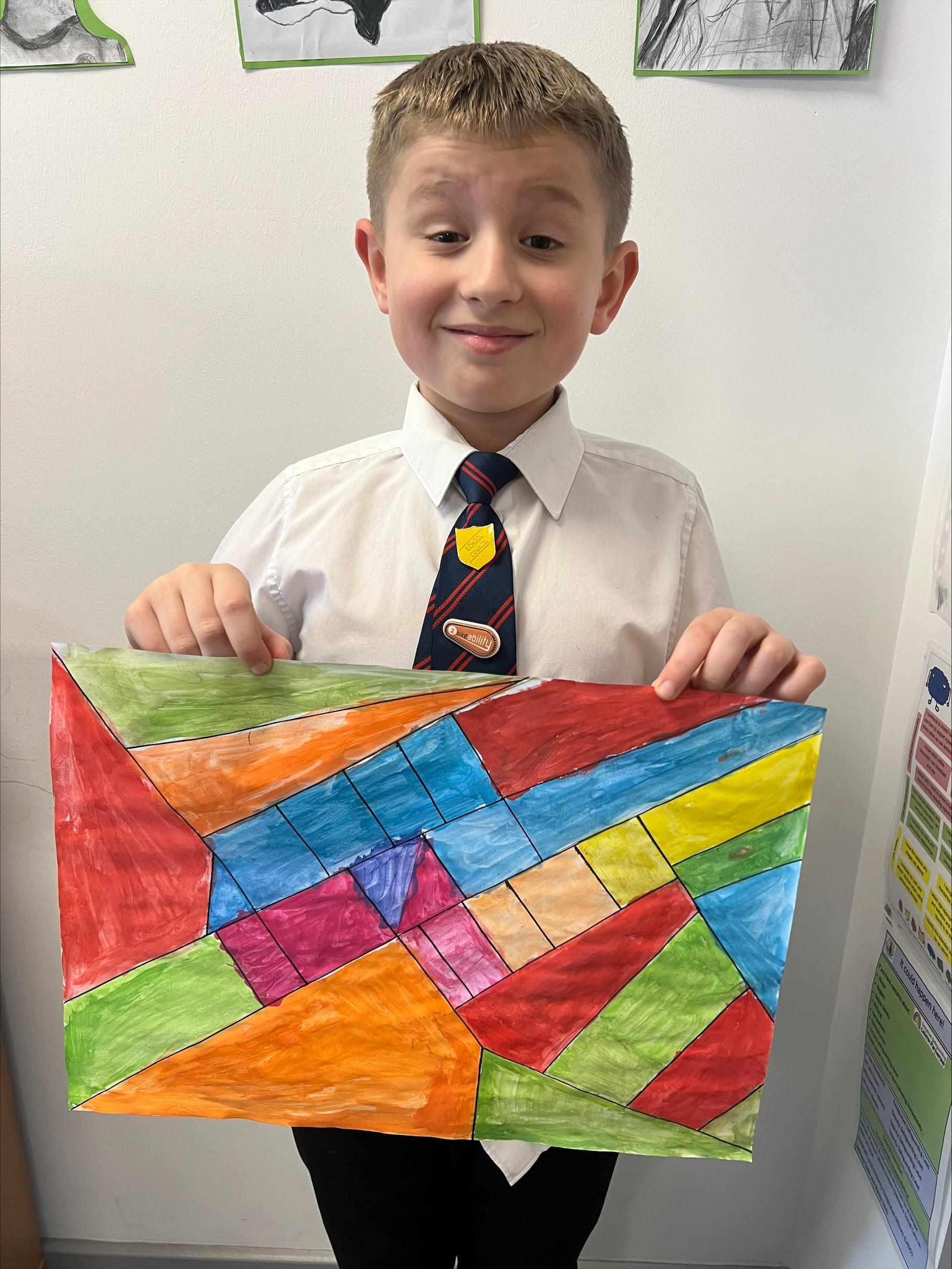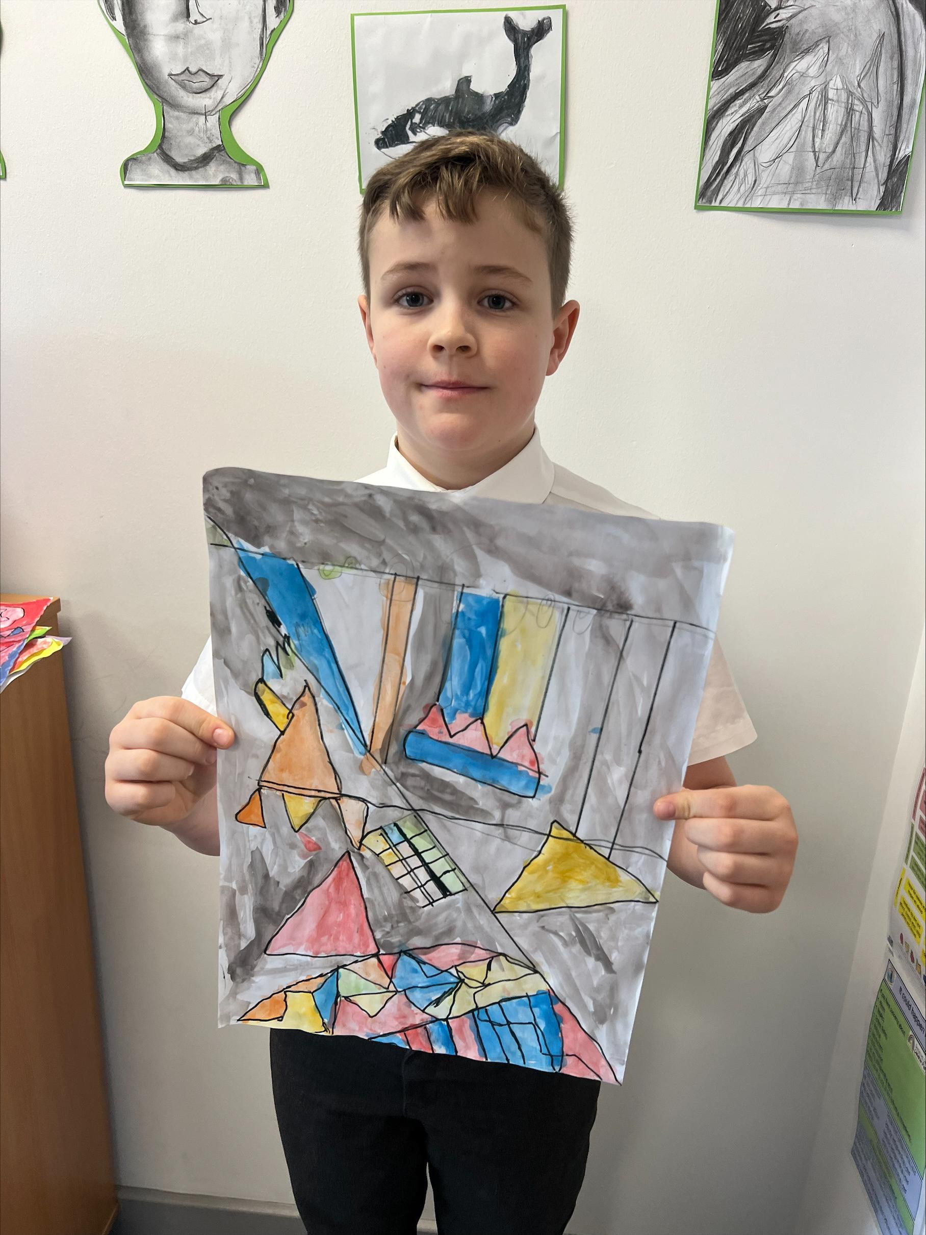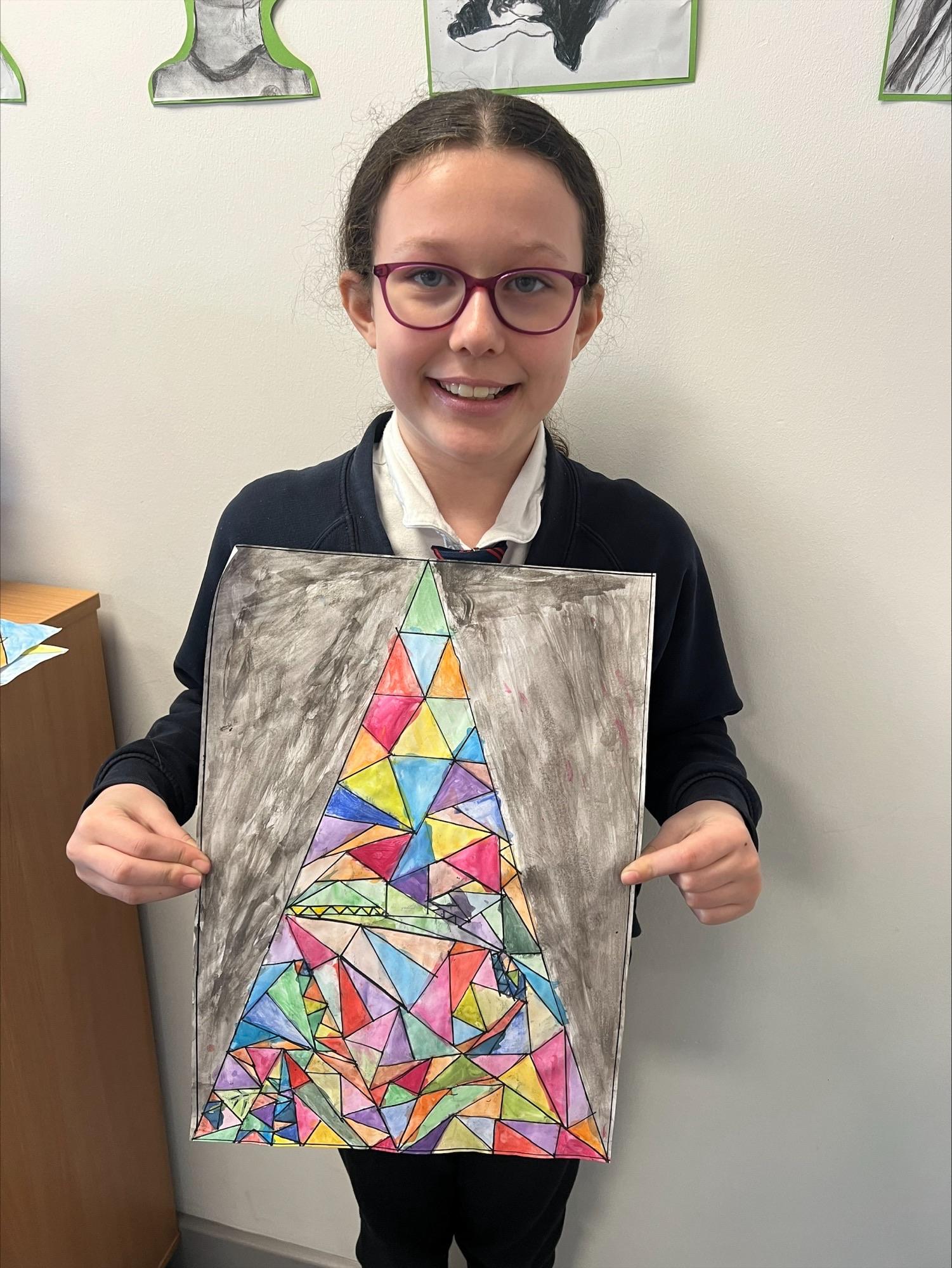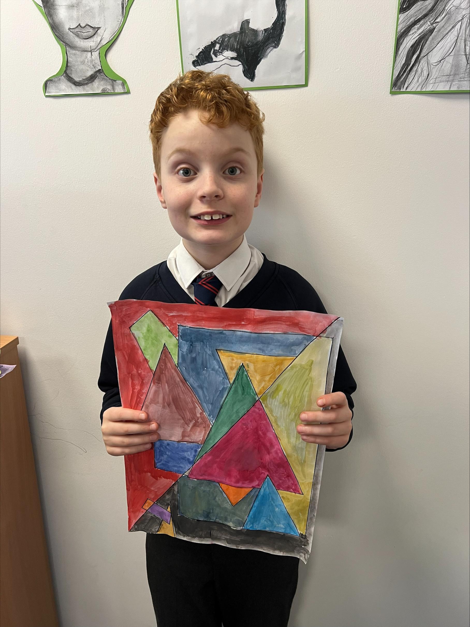 We have worked hard to create abstract art pieces inspired by Sonia Delaunay's style. We researched her Orphism art style and different media types that she used. Using our knowledge of watercolours we adjusted the tint and shade of colours alongside using geometric shapes to create our final pieces.