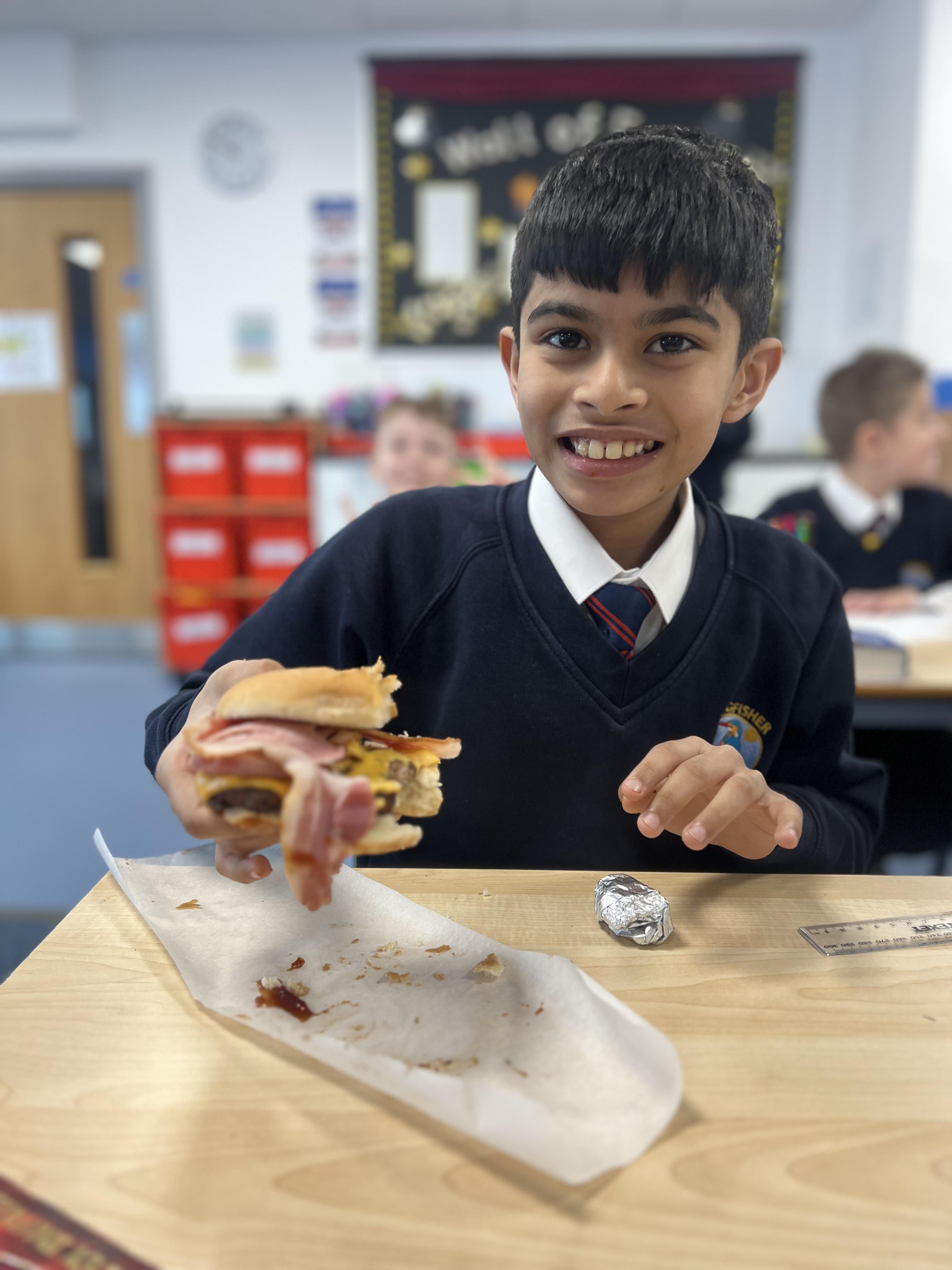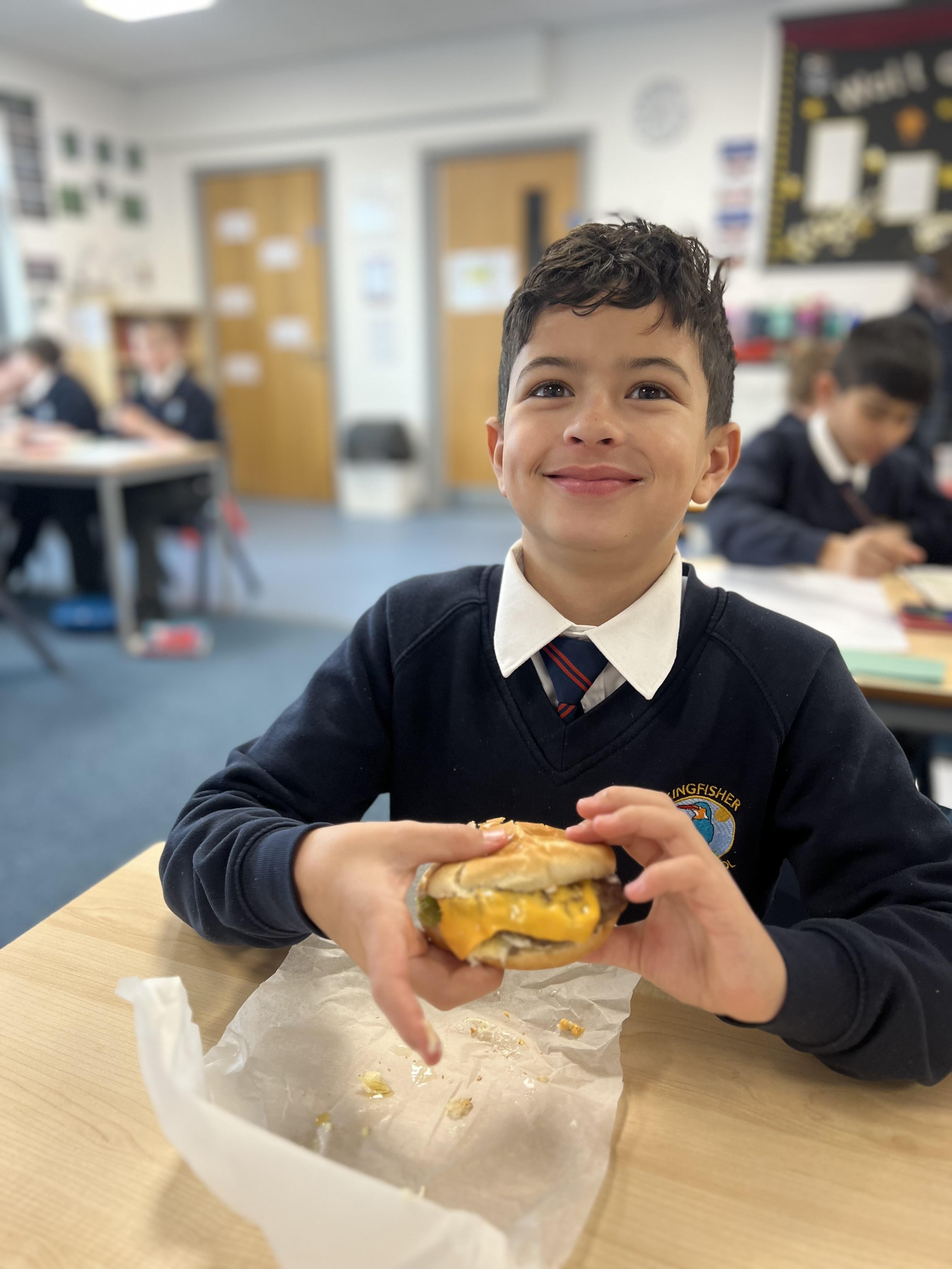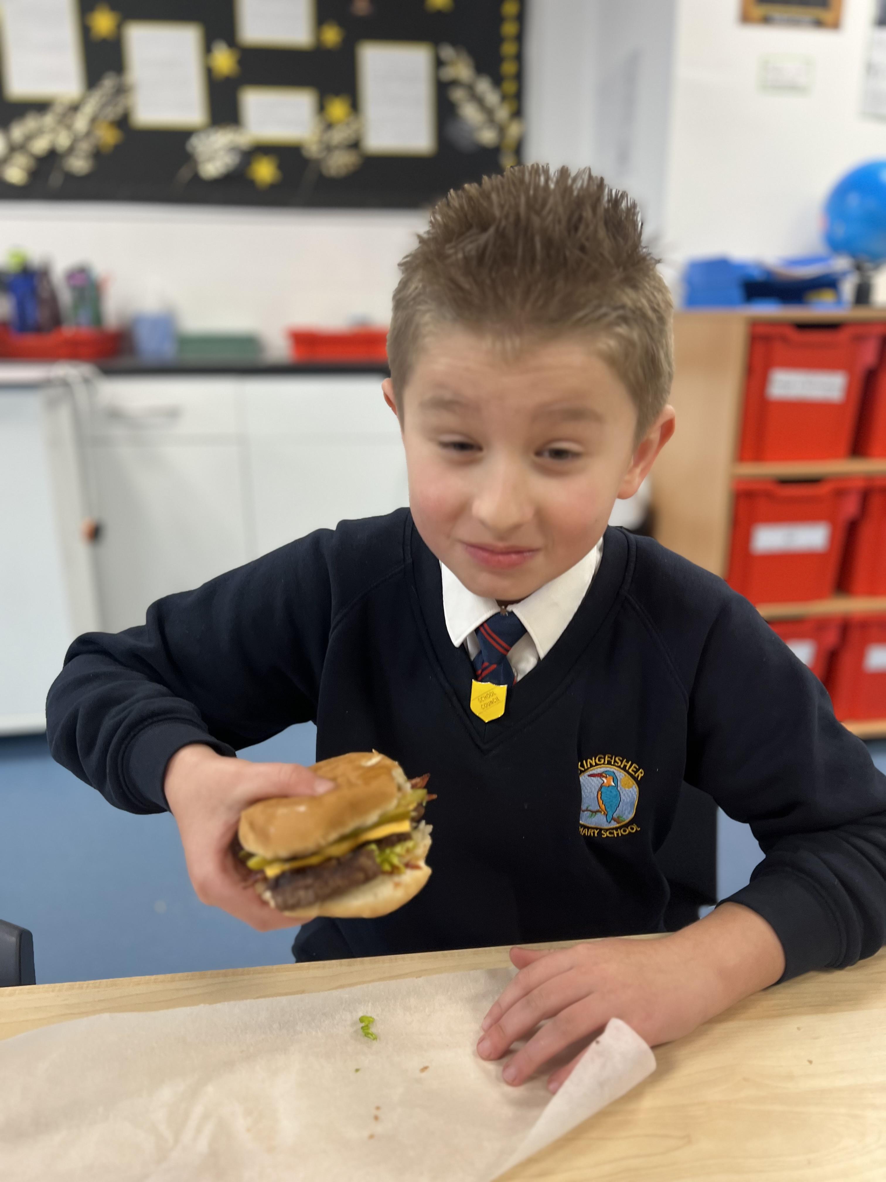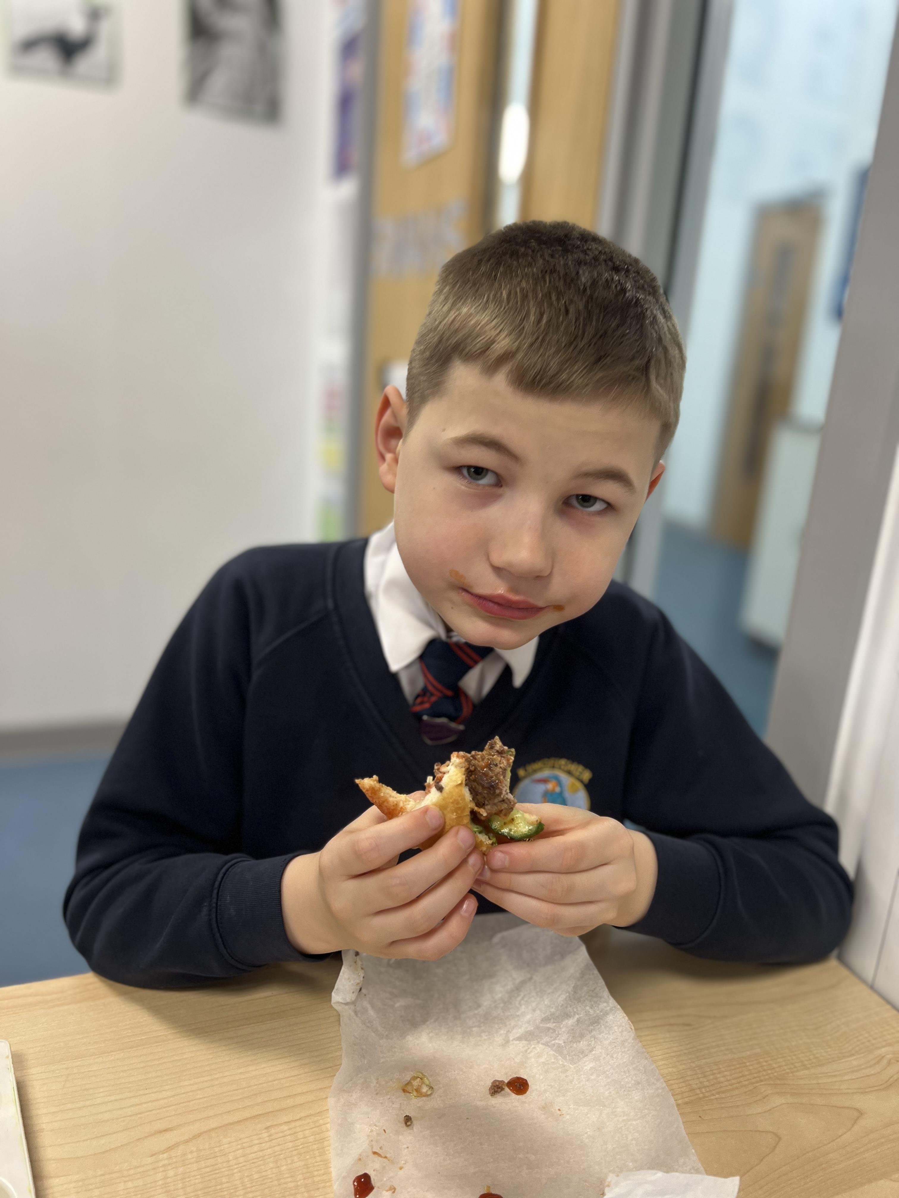 In Design and Technology, we embarked on a delicious project to design and make our own burgers from scratch. This began by researching different types of burgers, exploring ingredients, and understanding the importance of nutrition. Using our knowledge, we carefully designed our ideal burgers, considering both taste and healthy options. We then put their plans into action, making and cooking the burger patties and constructing everything together. We enjoyed tasting the results of our hard work and creativity!