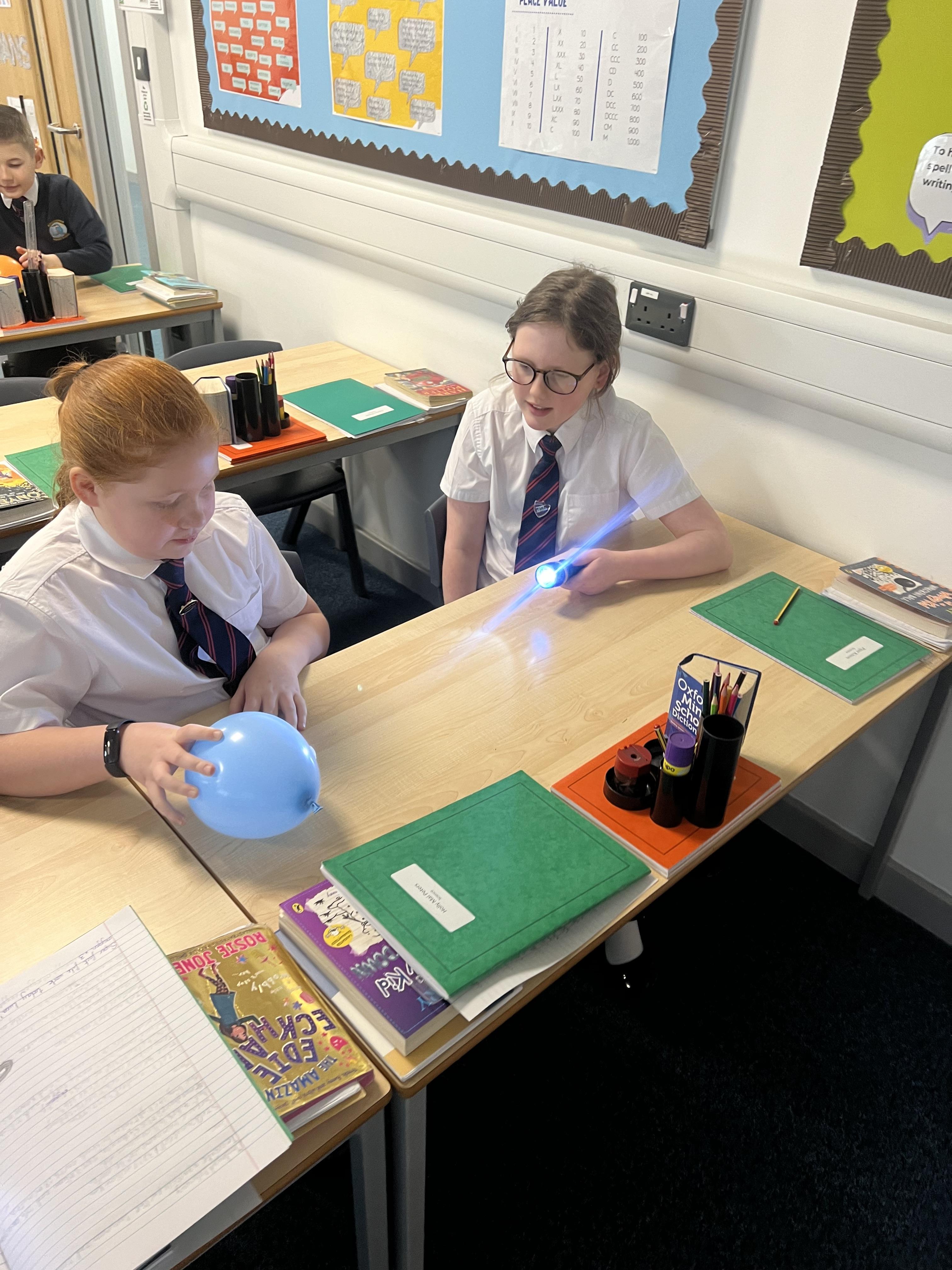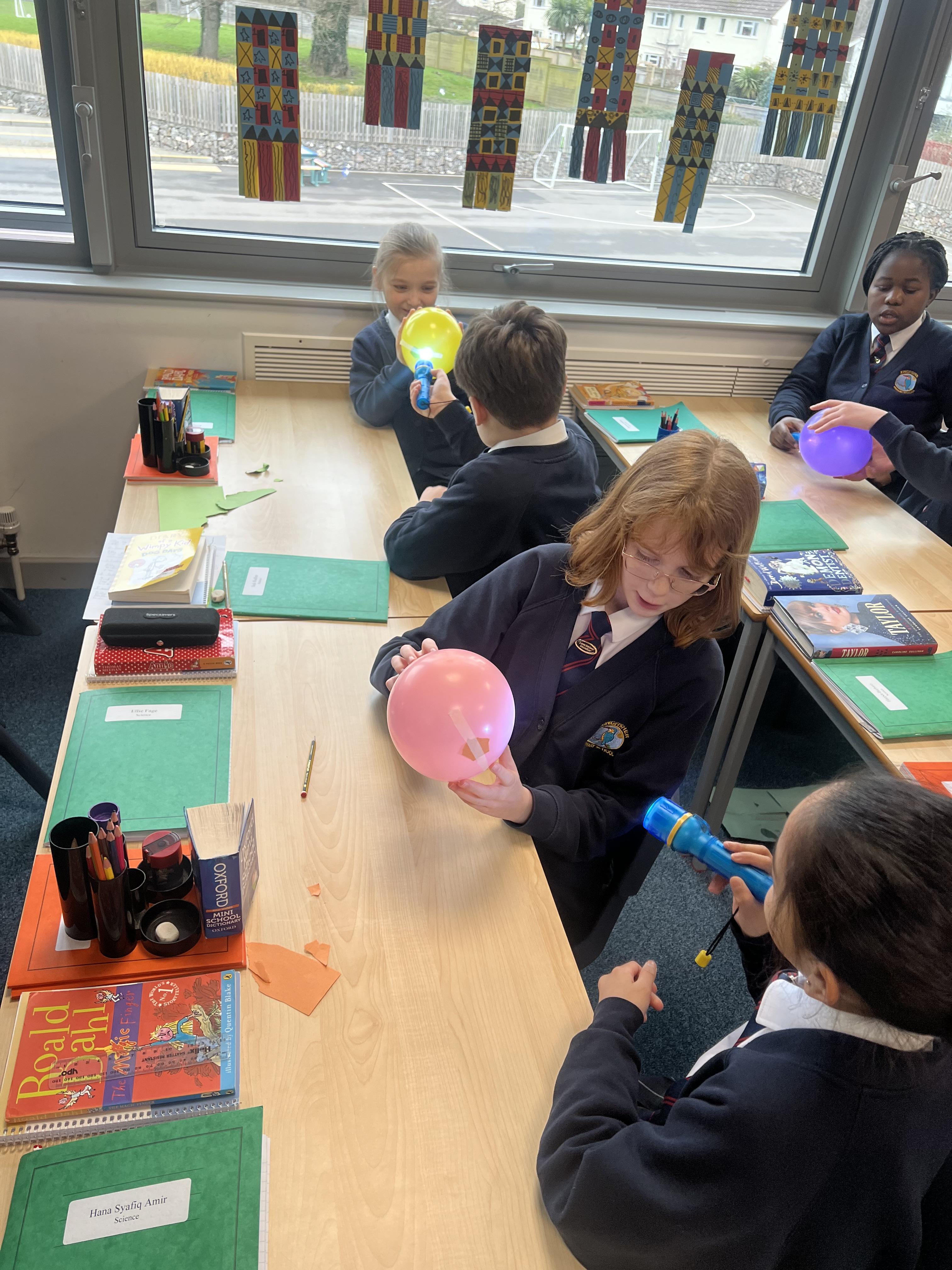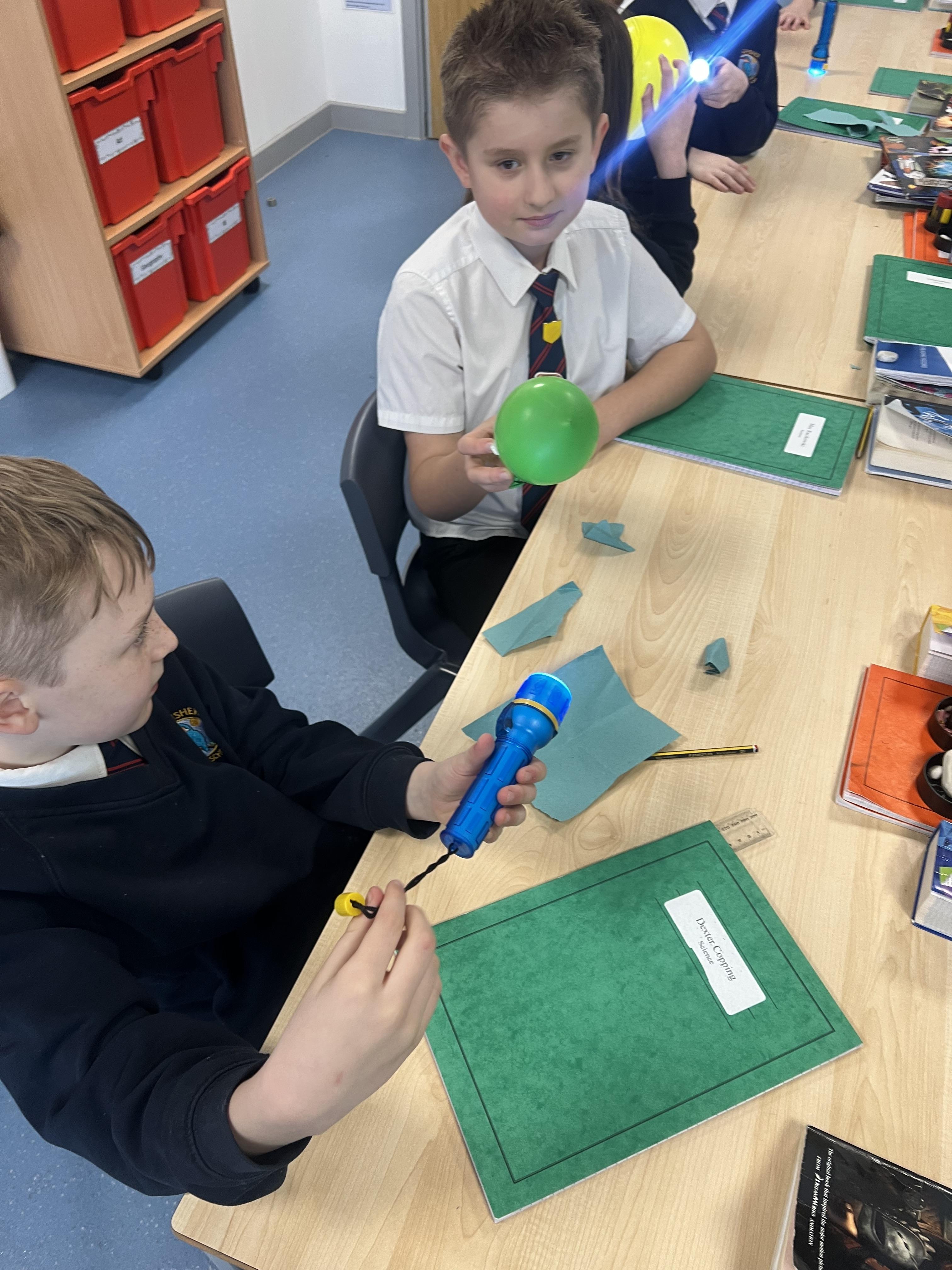 In our recent science practical, the children demonstrated their understanding of how day and night are formed by exploring the relationship between the Earth and the Sun. Using a balloon to represent the Earth and a torch to symbolise the Sun, the children illustrated how the Earth's rotation causes day and night. They took turns rotating the balloon to show how different parts of the Earth experience daylight and darkness, reinforcing their knowledge of this key concept in Earth's movement.
