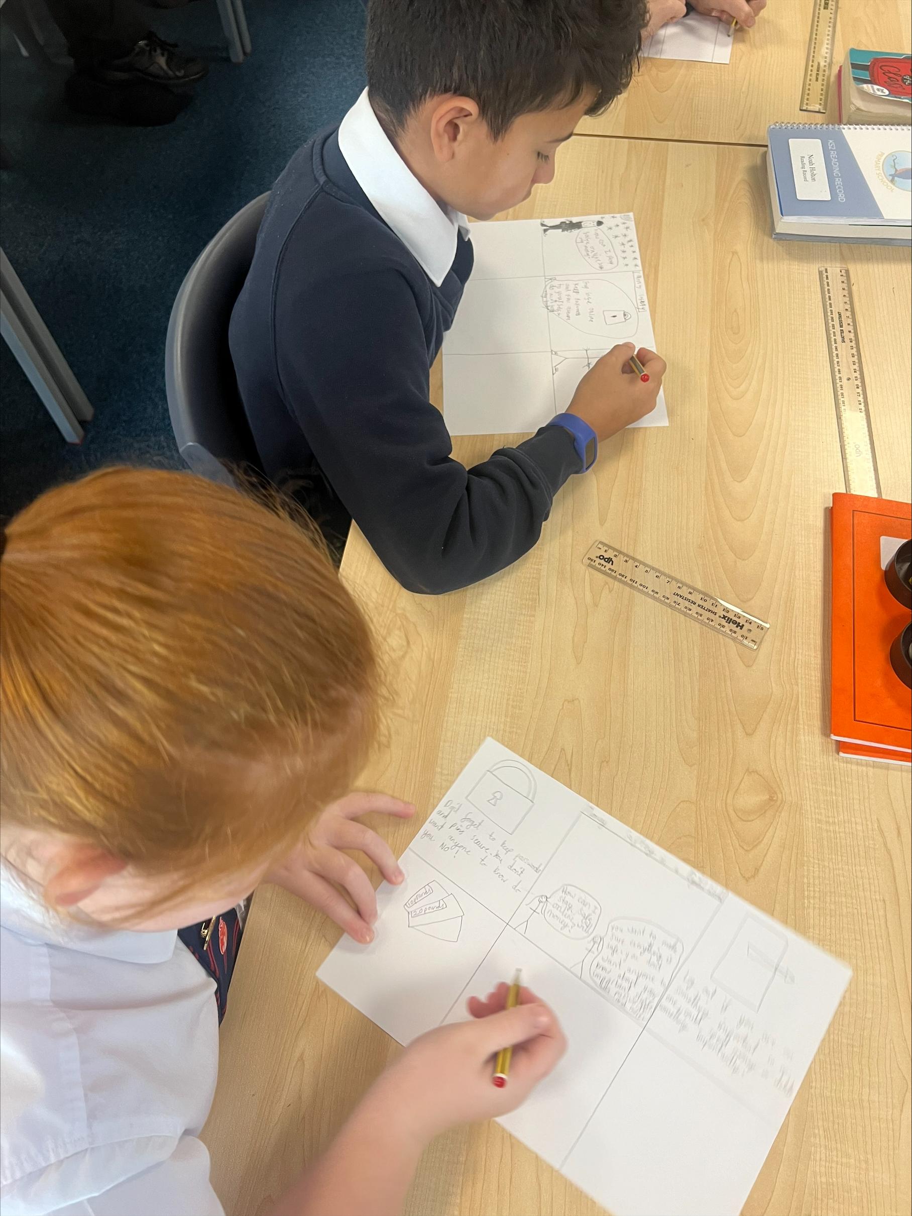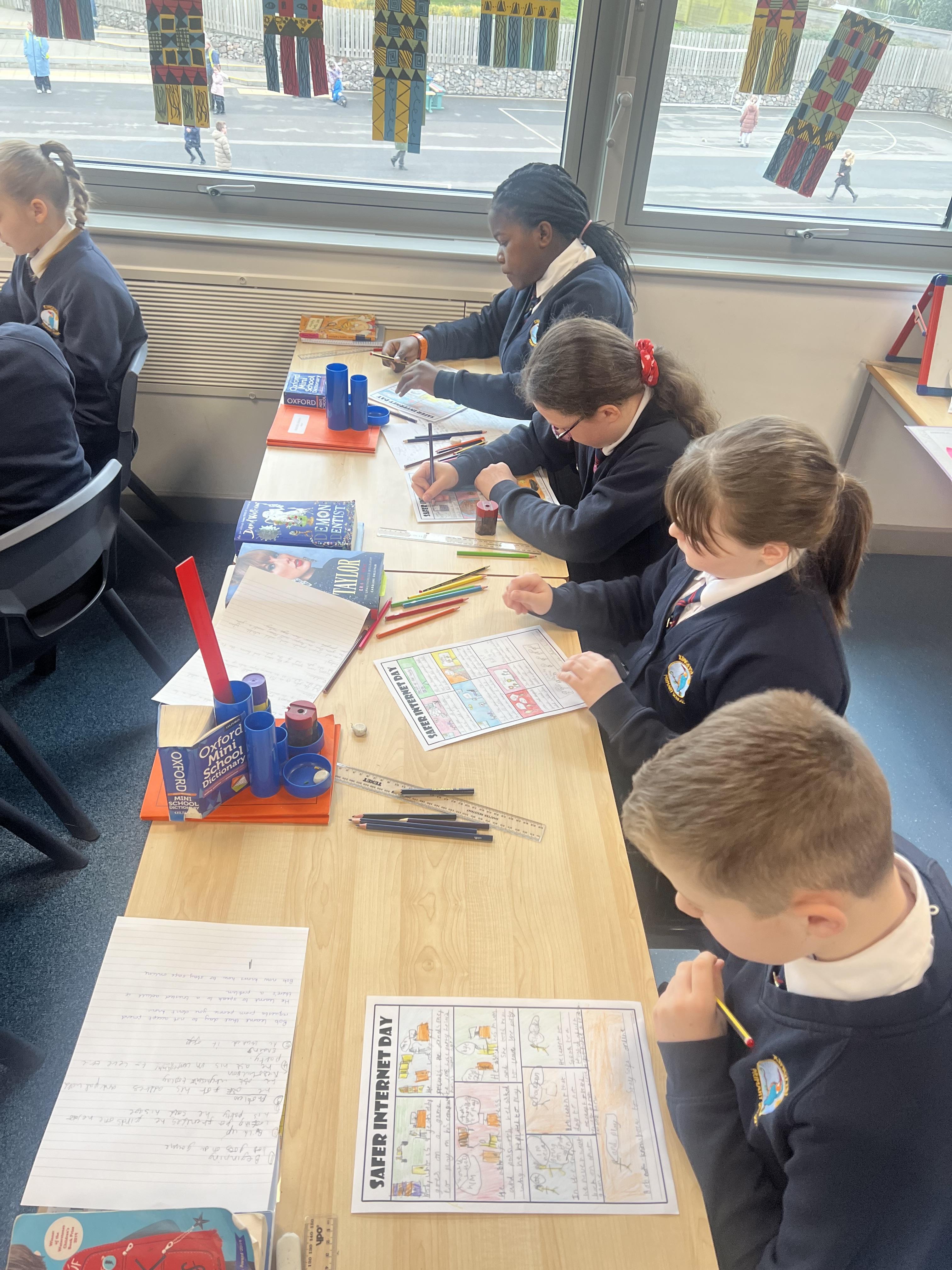We celebrated Safer Internet Day by learning important tips on how to stay safe online. The children engaged in thoughtful discussions about internet safety, then chose a category to focus on, such as cyberbullying, privacy, or online friendships. Using their creativity, they designed comic strips to illustrate key safety messages, showcasing their understanding of how to navigate the digital world responsibly.