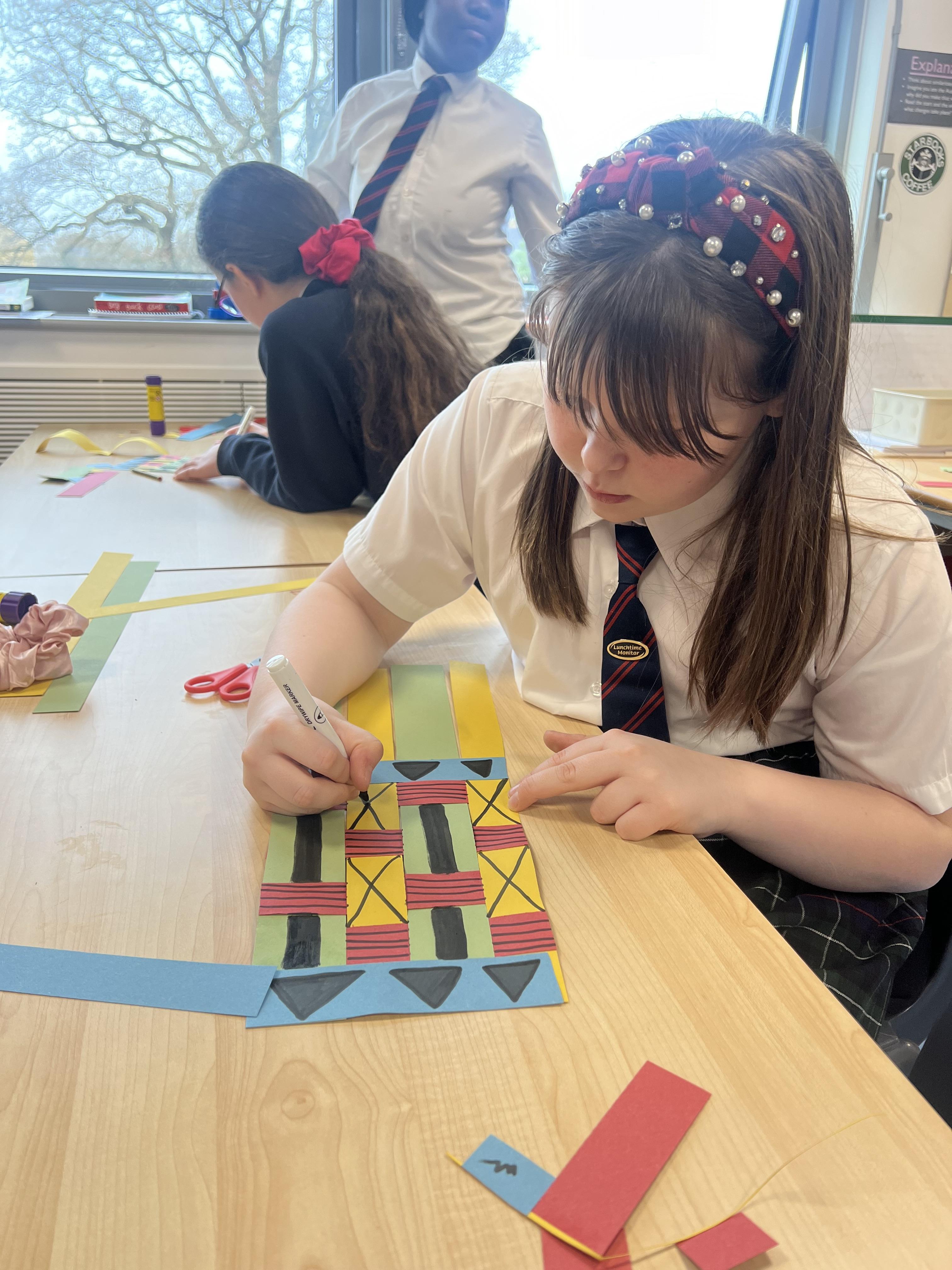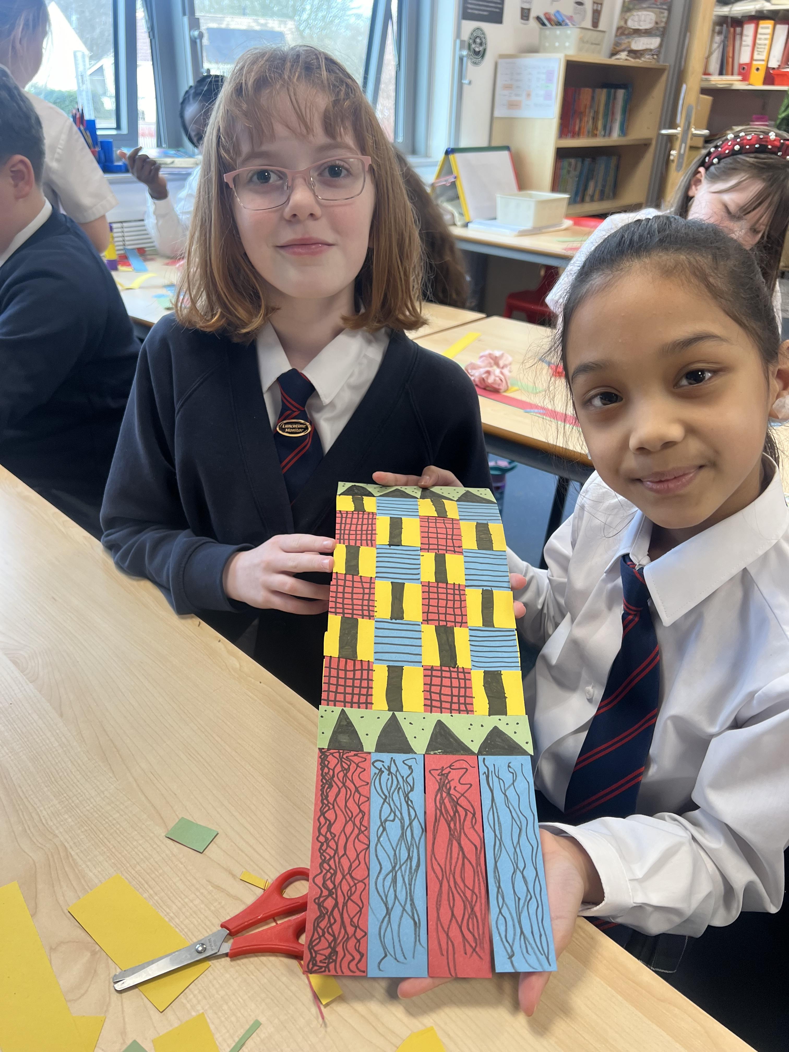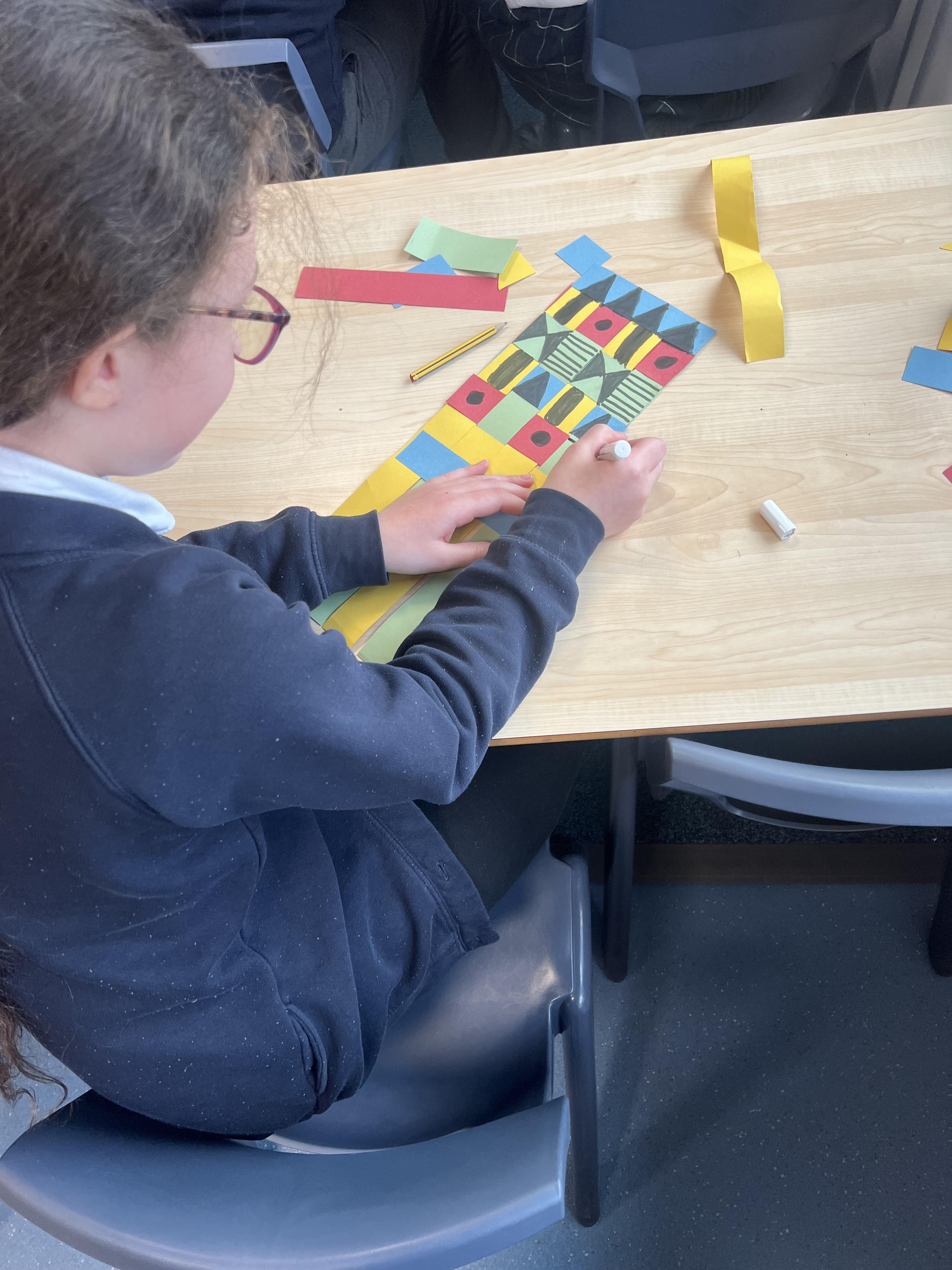 We then turned our attention to Ghanaian culture, where children discovered the beauty of Kente cloth. They worked together to create their own paper Kente cloth patterns, weaving and decorating them with vibrant designs inspired by traditional cloth.
