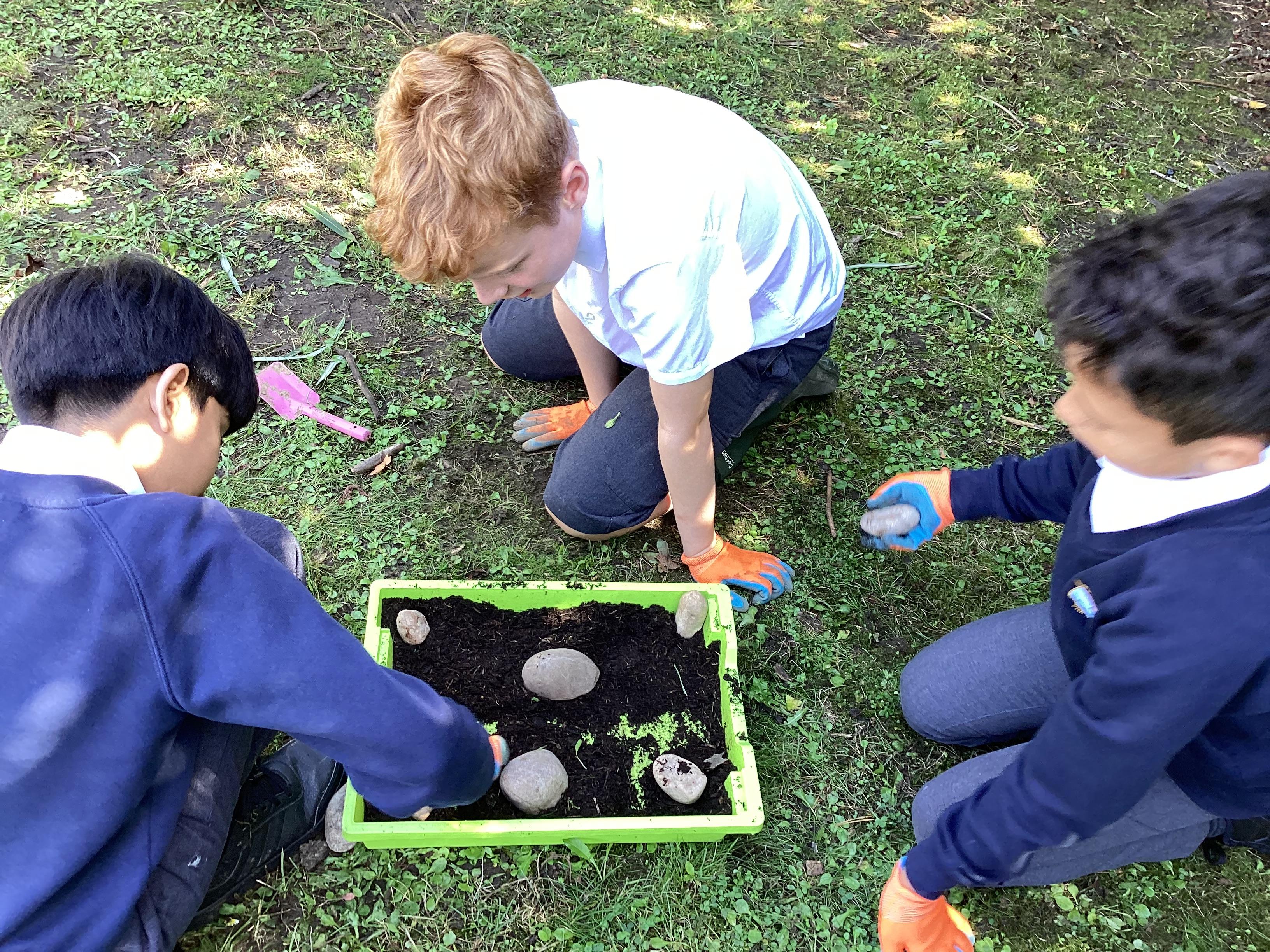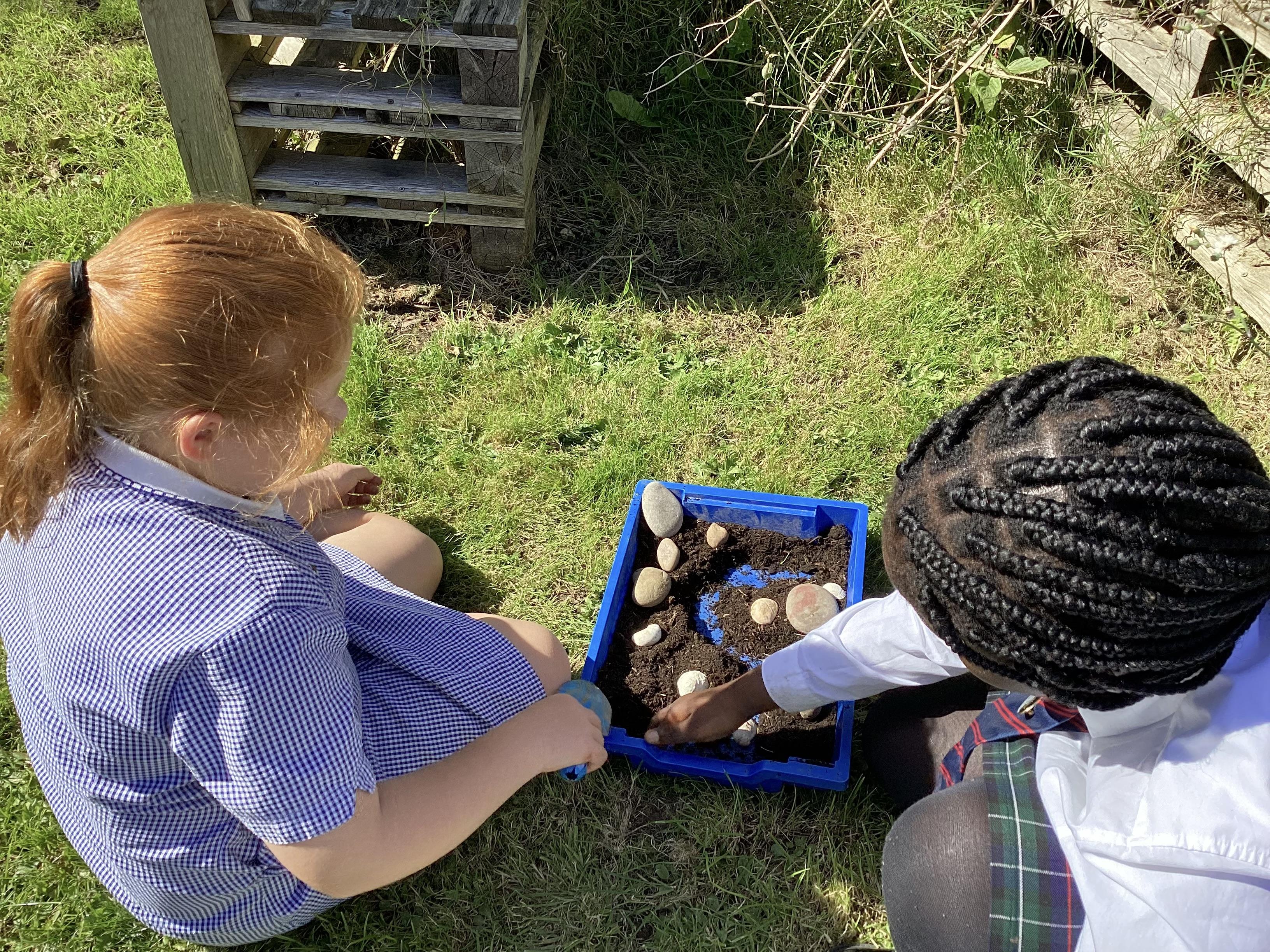 We have been using our outdoor learning lessons to console our Geography learning. Using our knowledge of river features, we created miniature rivers using soil, rocks and tinfoil.
