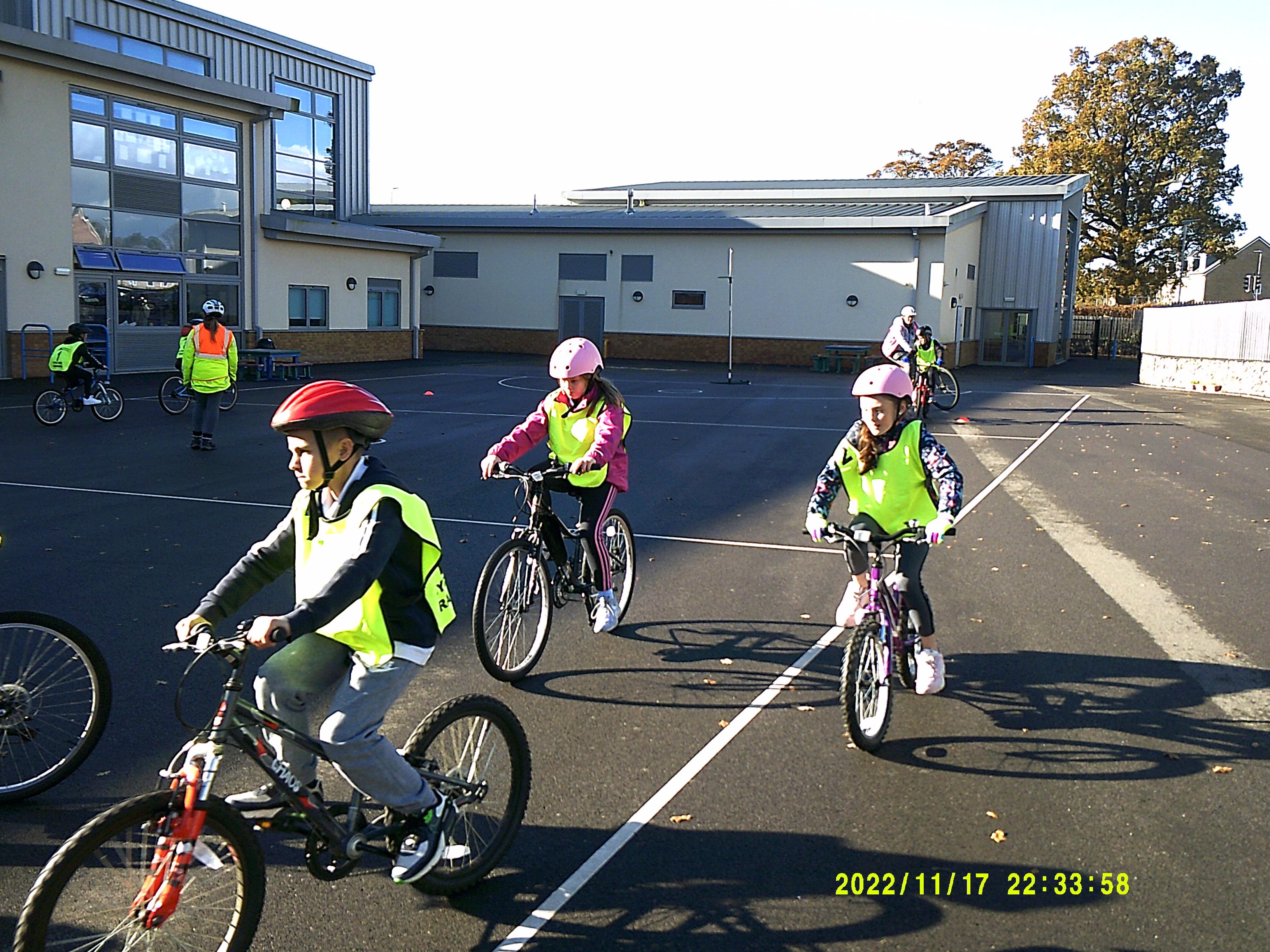 A group of mixed year 5 and 6s took part in the two-day bike handling and road safety course. The children showed excellent improvements in their bike handling and their knowledge of road safety. It was brilliant to see how well the children did on this course.