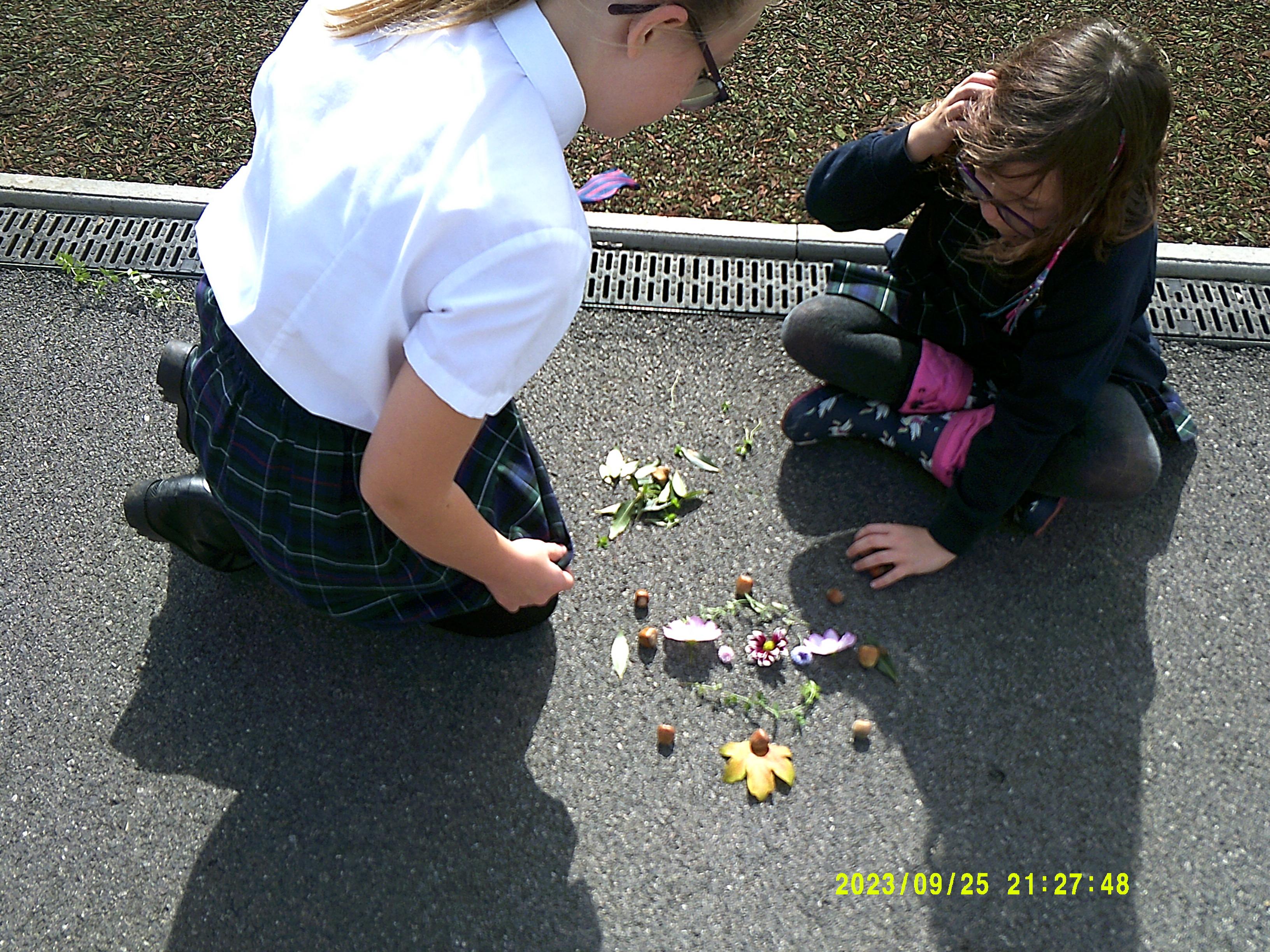 This week the children have created Rangoli patterns using natural resources. While collecting the items, the children were able to learn about what the leaves, berries and trees are.