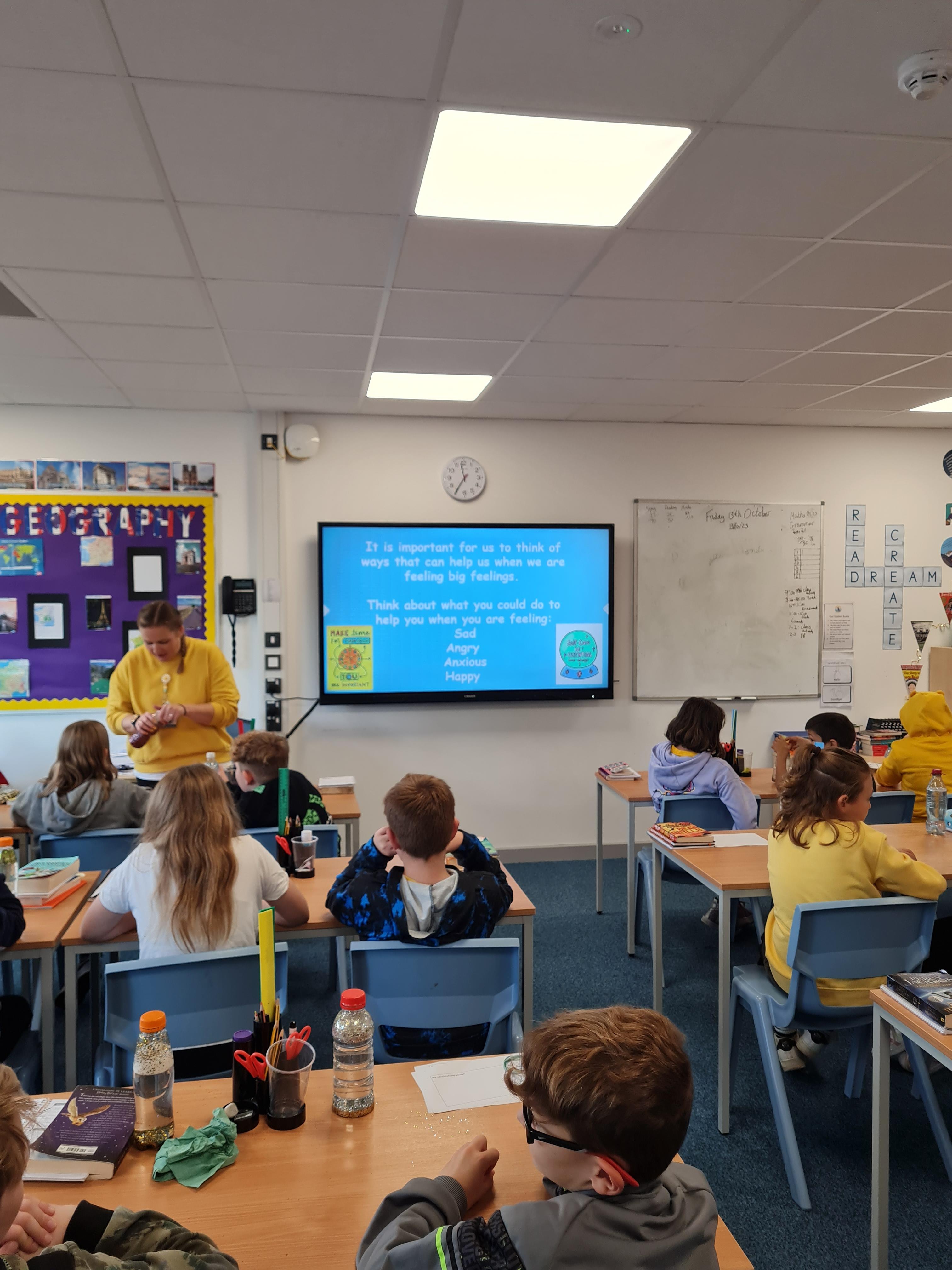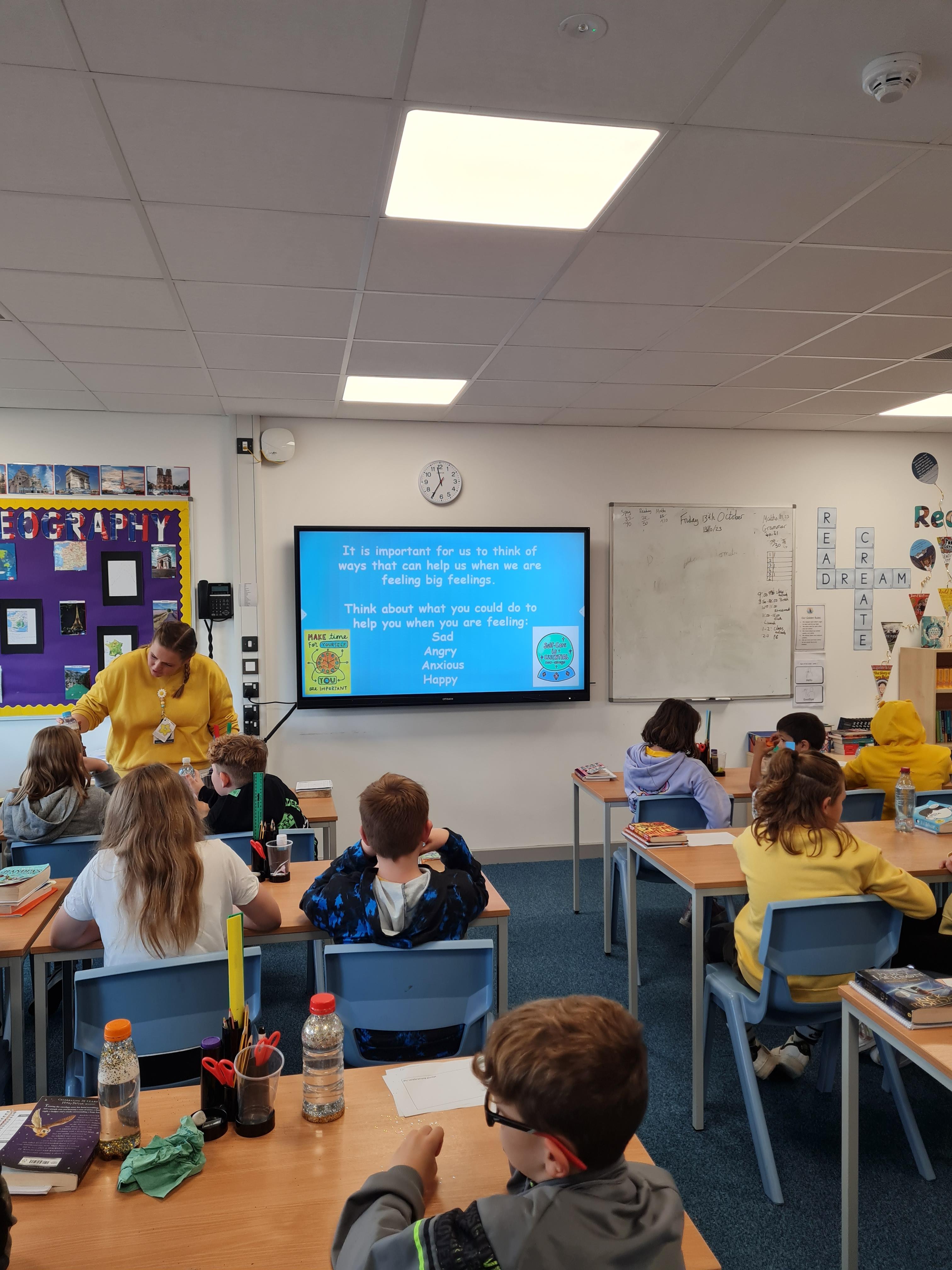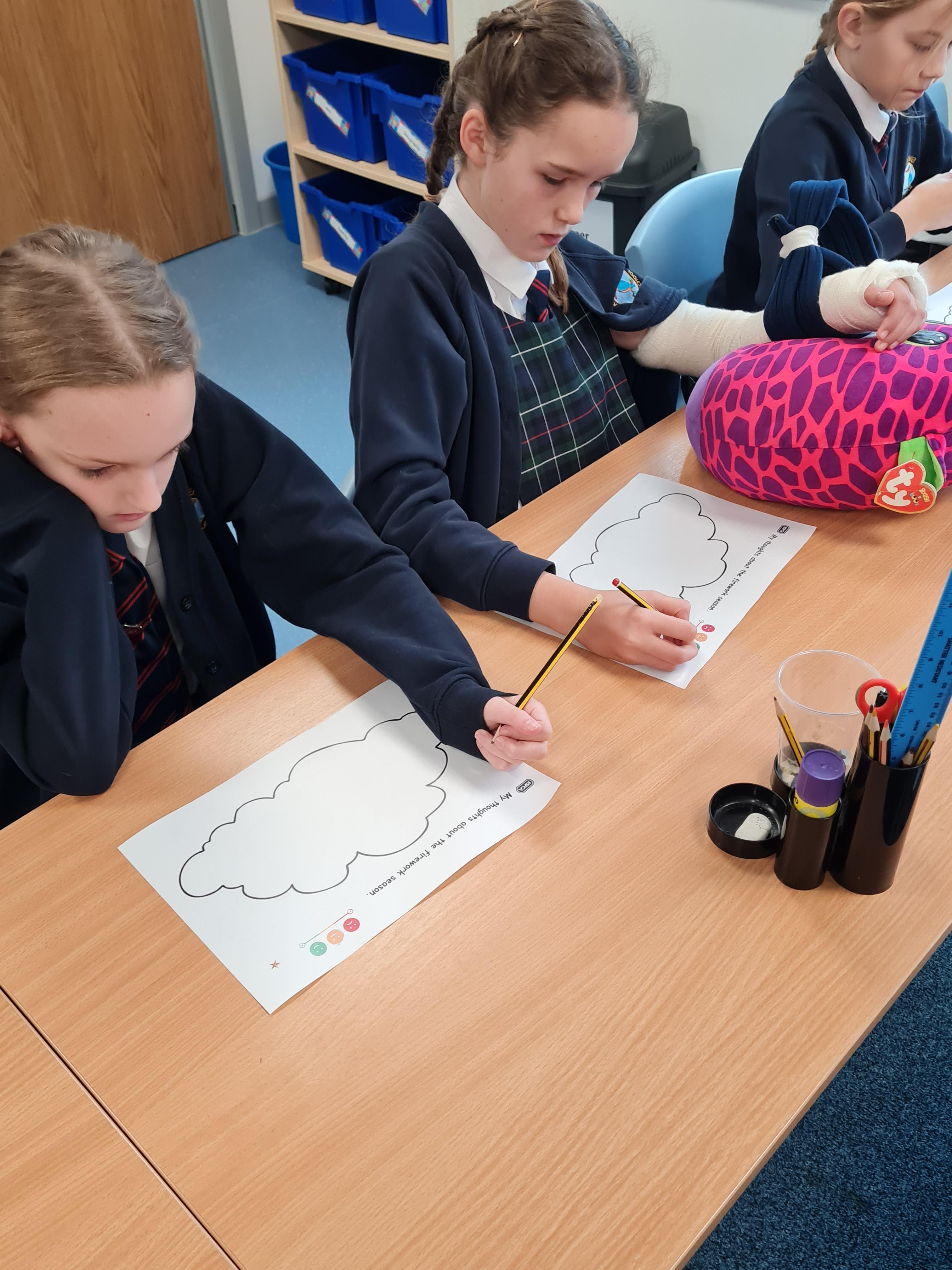 This year for world mental health day, year 6 took part in a range of activities. Local group Razzamataz came in to deliver a workshop on performing arts and mental health. Mrs Streetin lead a session on how to process and work with emotions. In this session, all the children created their own calming bottle.