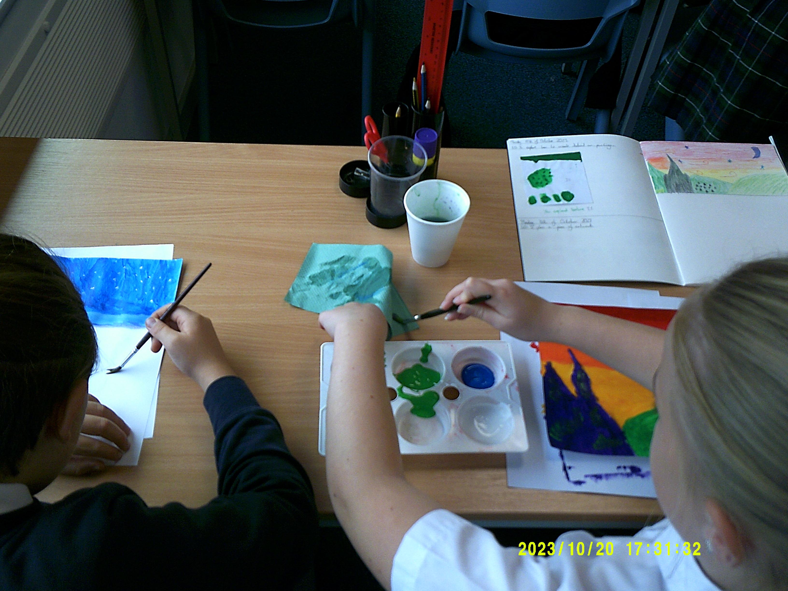 As part of their first art unit studying the work of Vincent Van Gogh, year 6 spent some time exploring how to create the effects in his work using only a brush and paint.