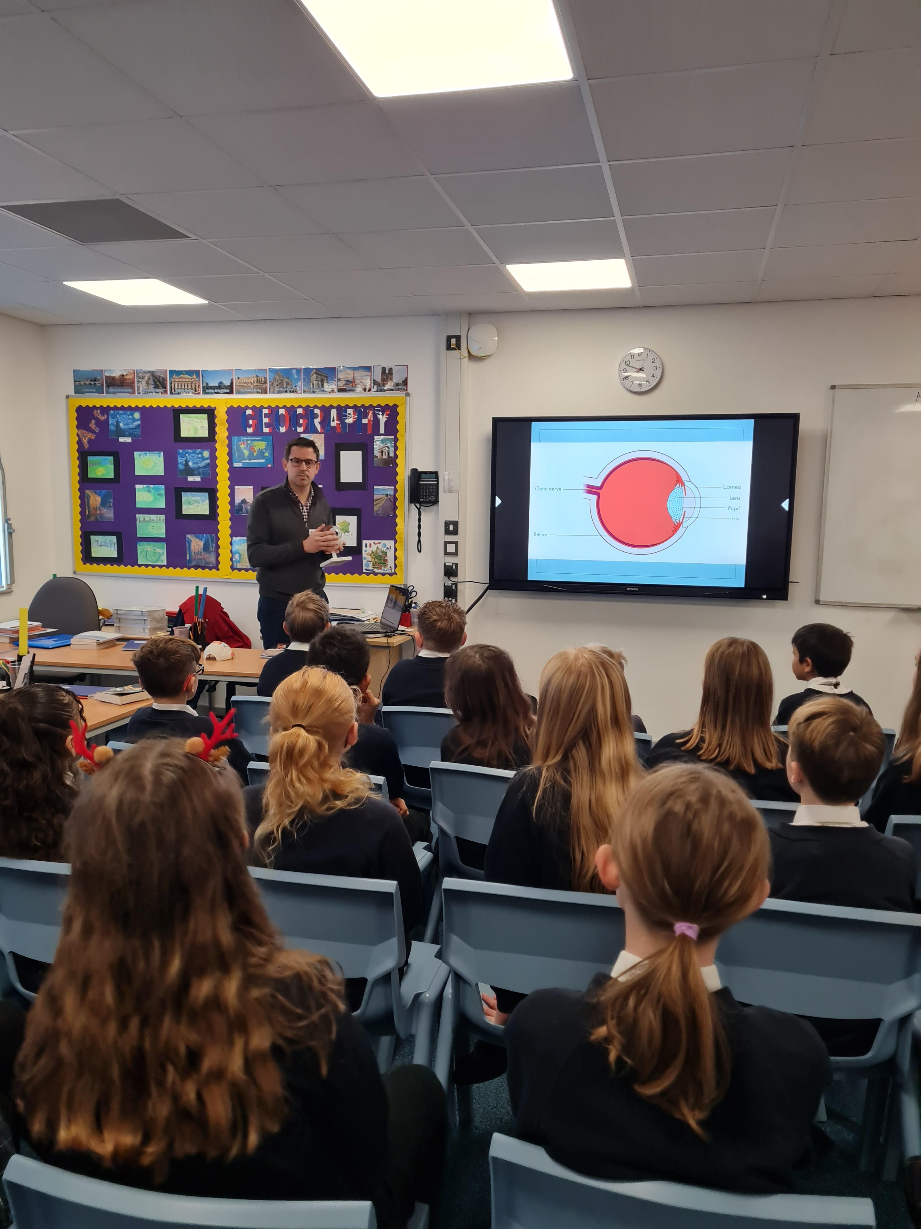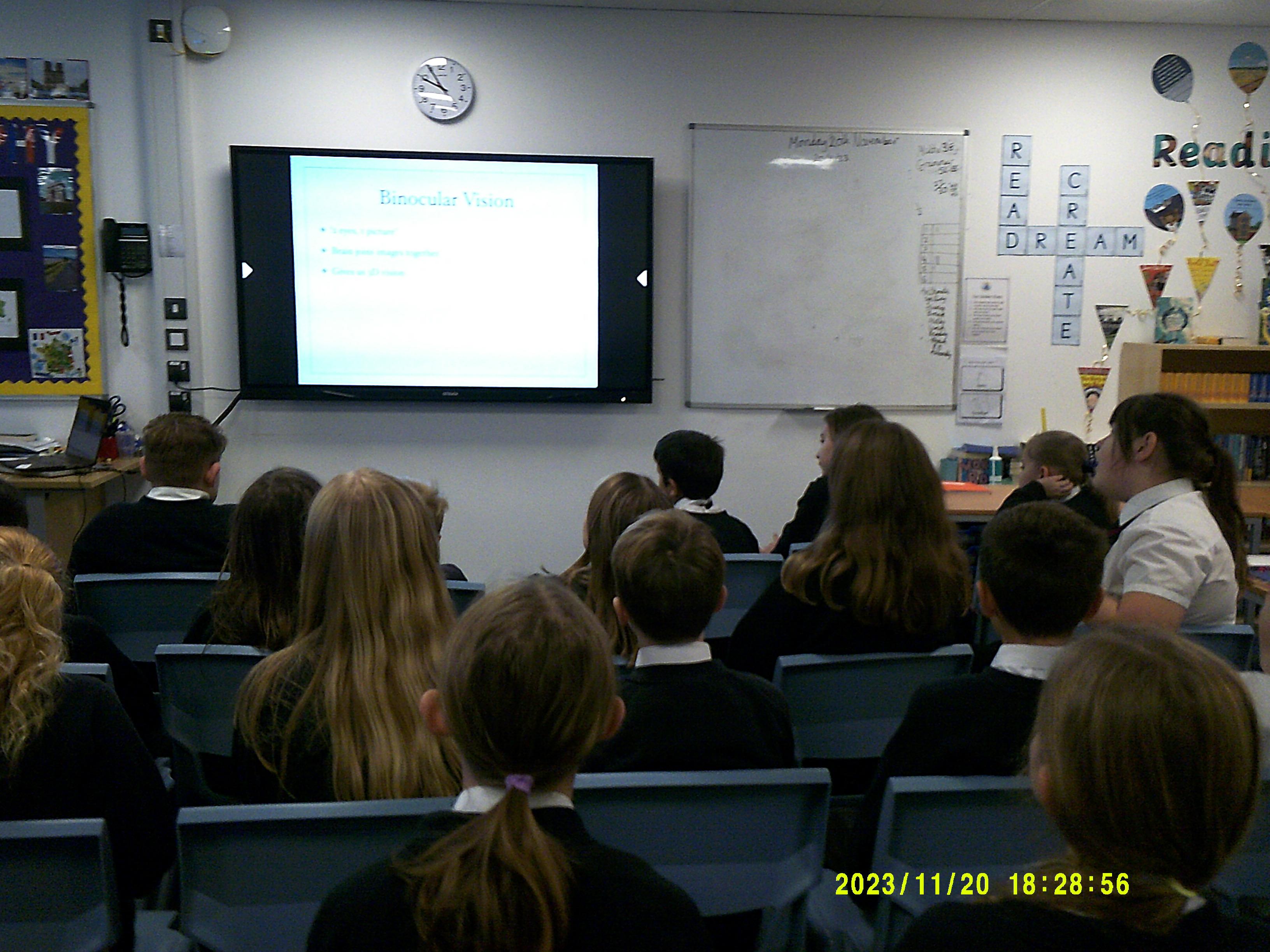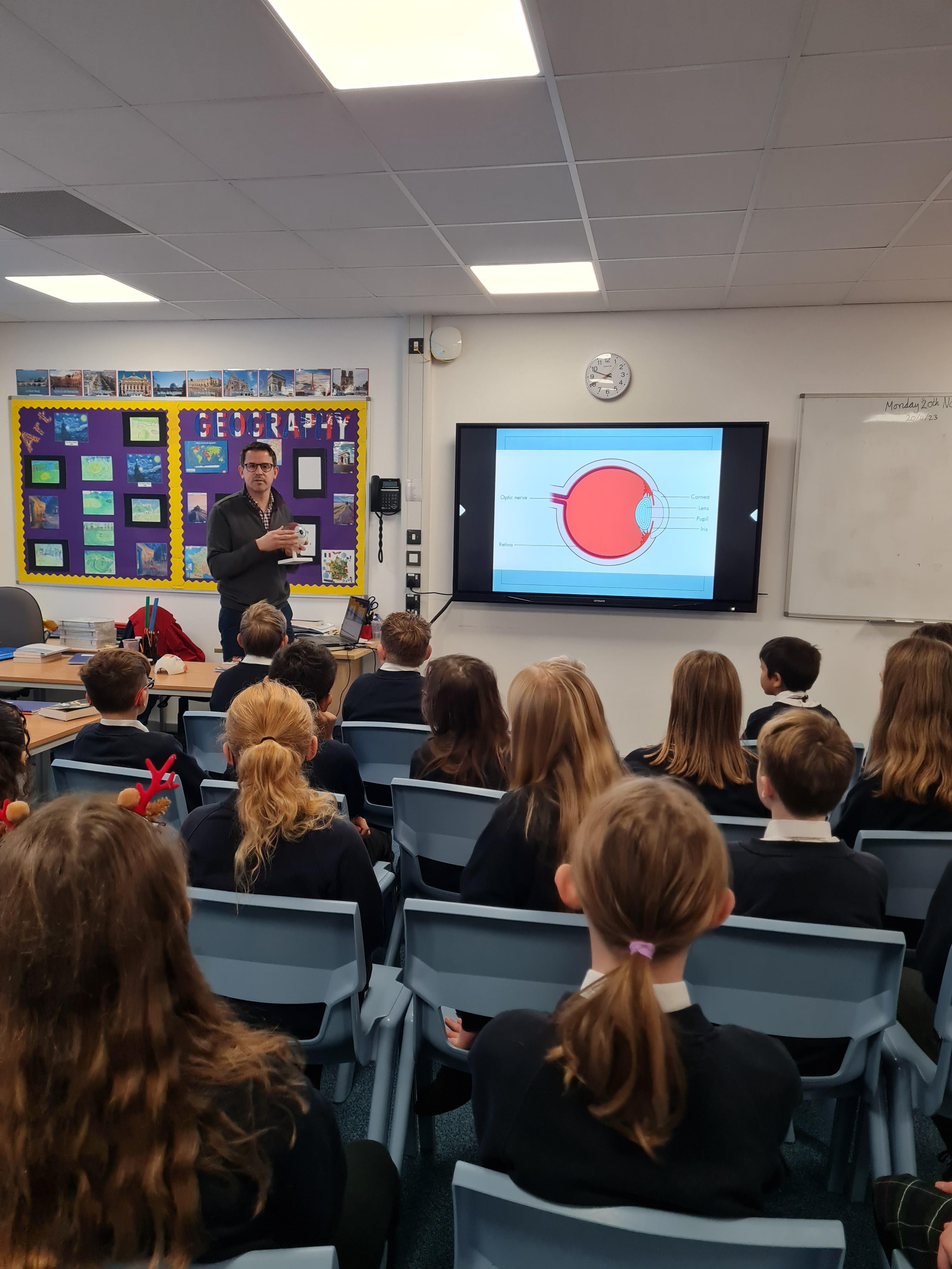 Year 6 were visited by Simon the optician. He was able to talk us through the role of the eye and the differing functions the parts complete. As well as this, Simon told us about common illness and showed how they can affect the eye. Then year 6 were shown various optical illusions and Simon explained how the eye is tricked into seeing objects that aren’t there.