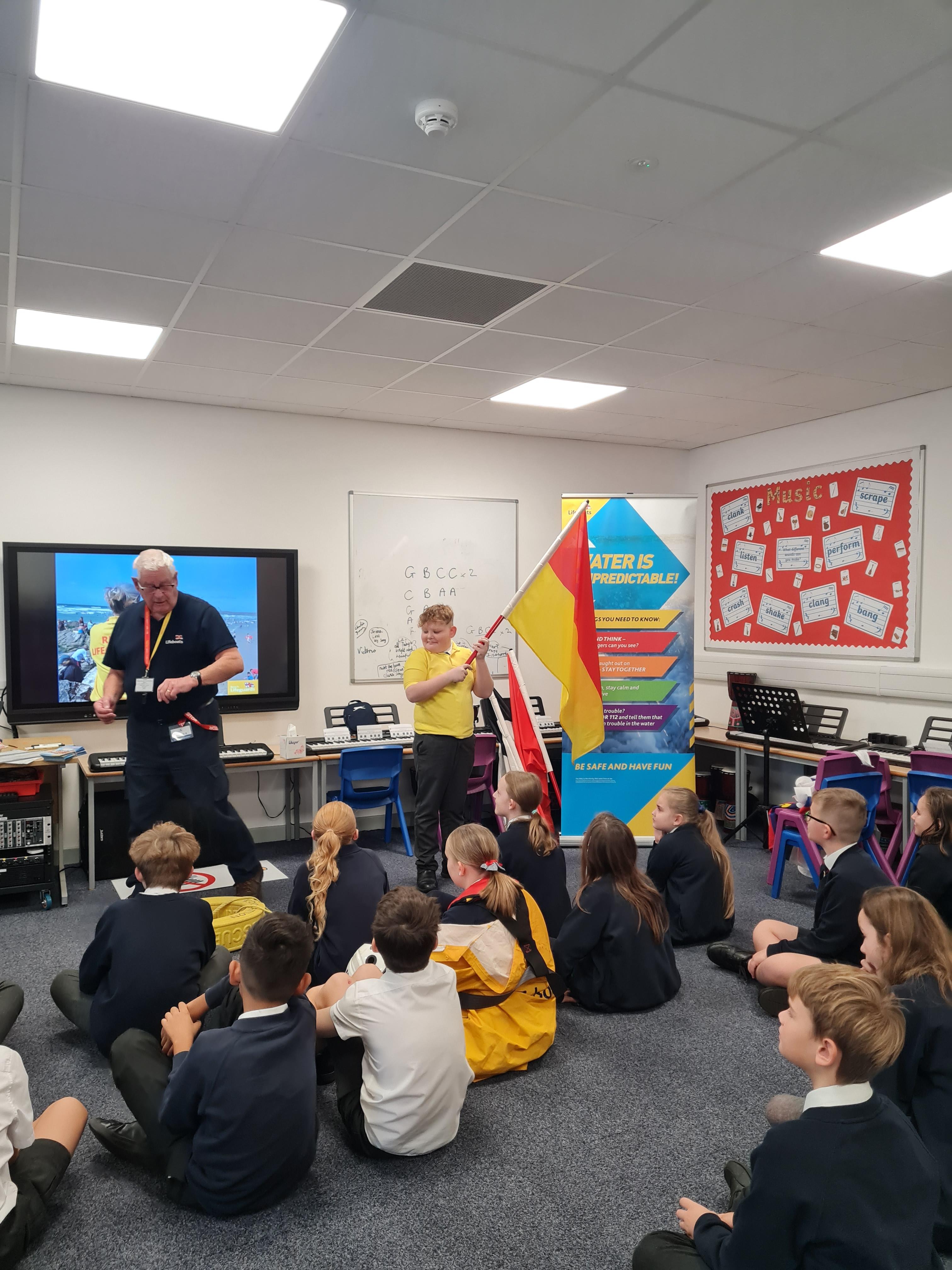 During the visit from Tony from the RLNI, the children were discussing and learning about water safety. Some of the children were able to dress in the uniform of the various RLNI roles. It was great to hear how much the children knew about water safety and to see the extra vital information Tony taught them.