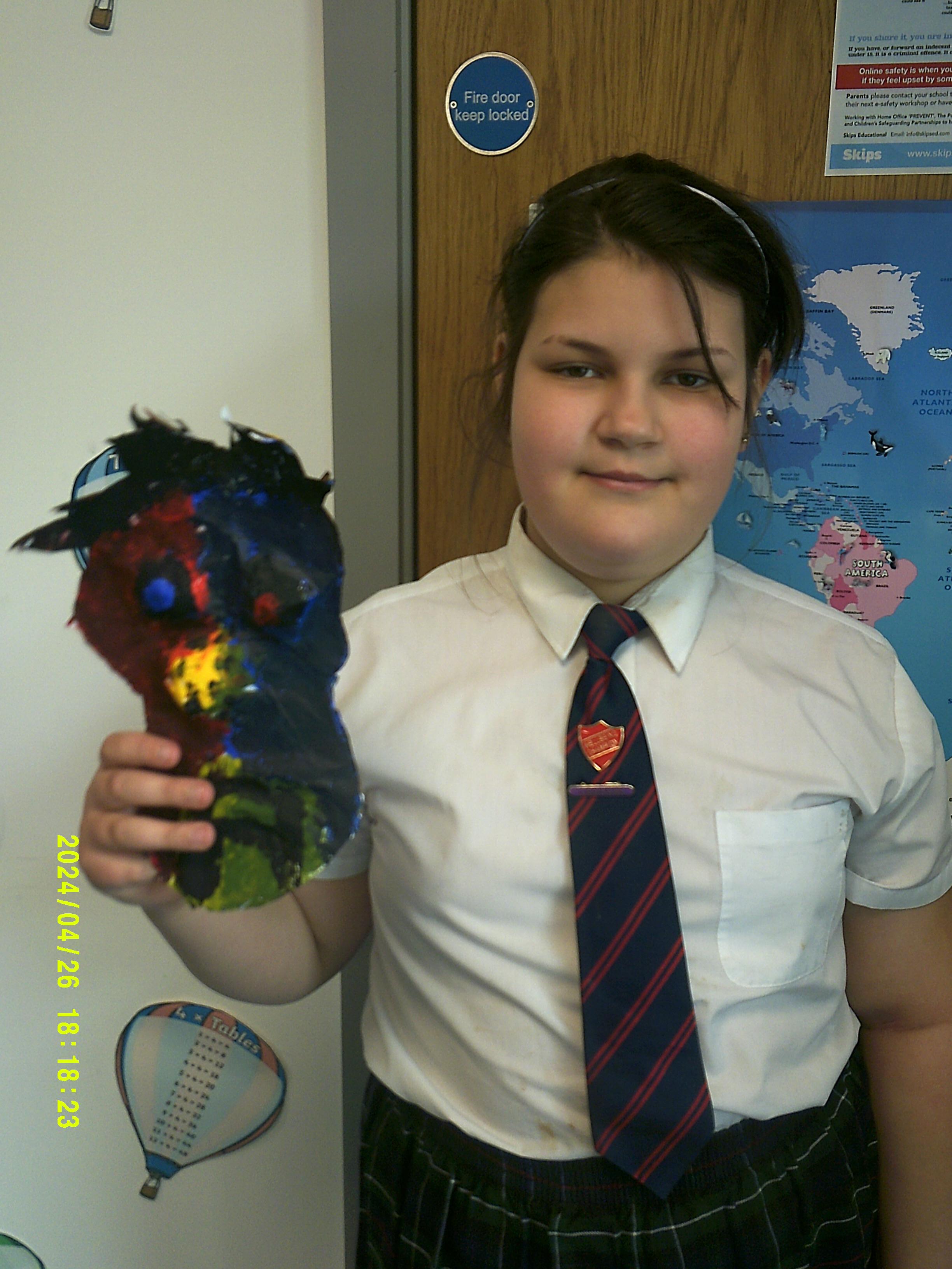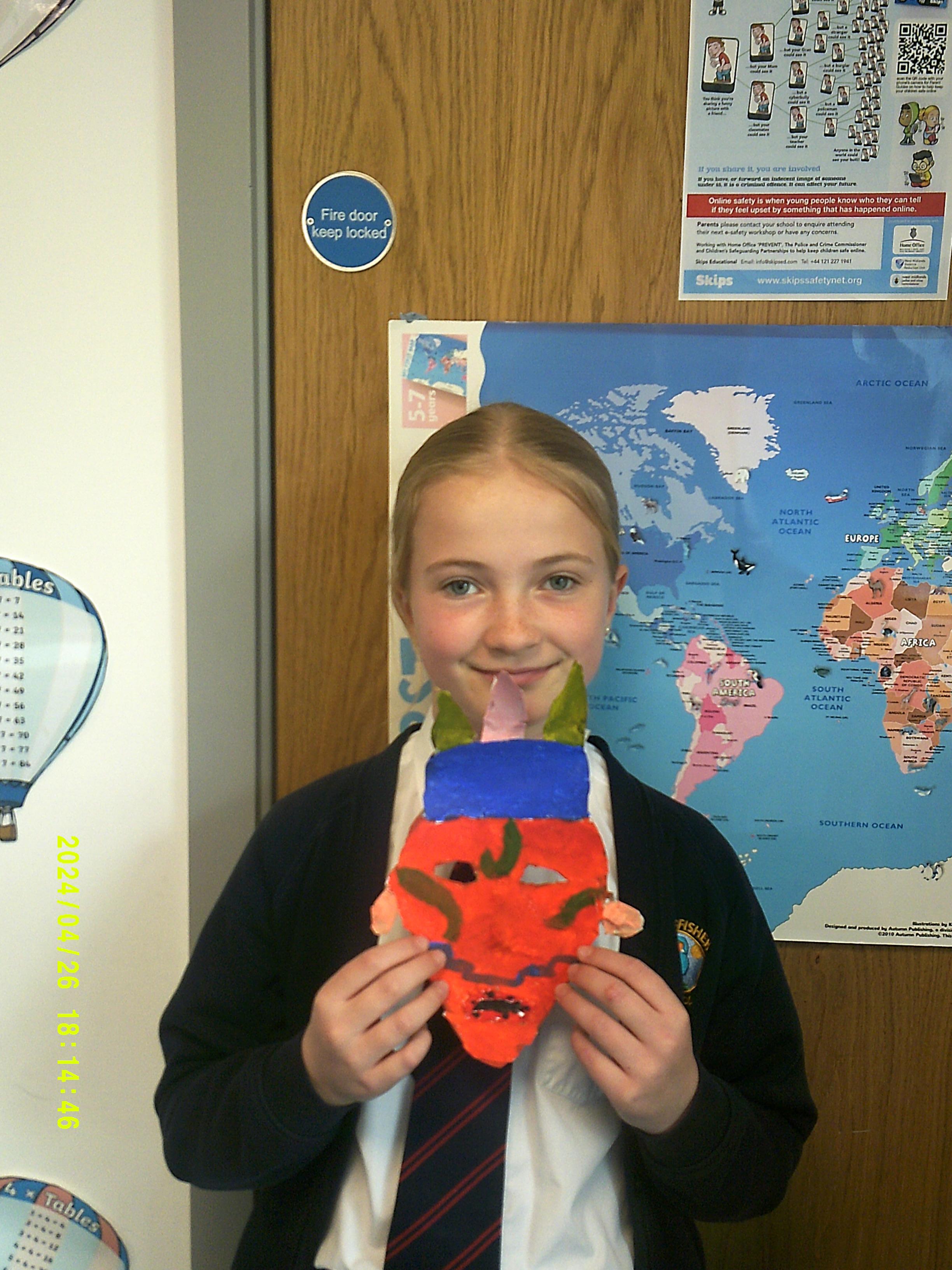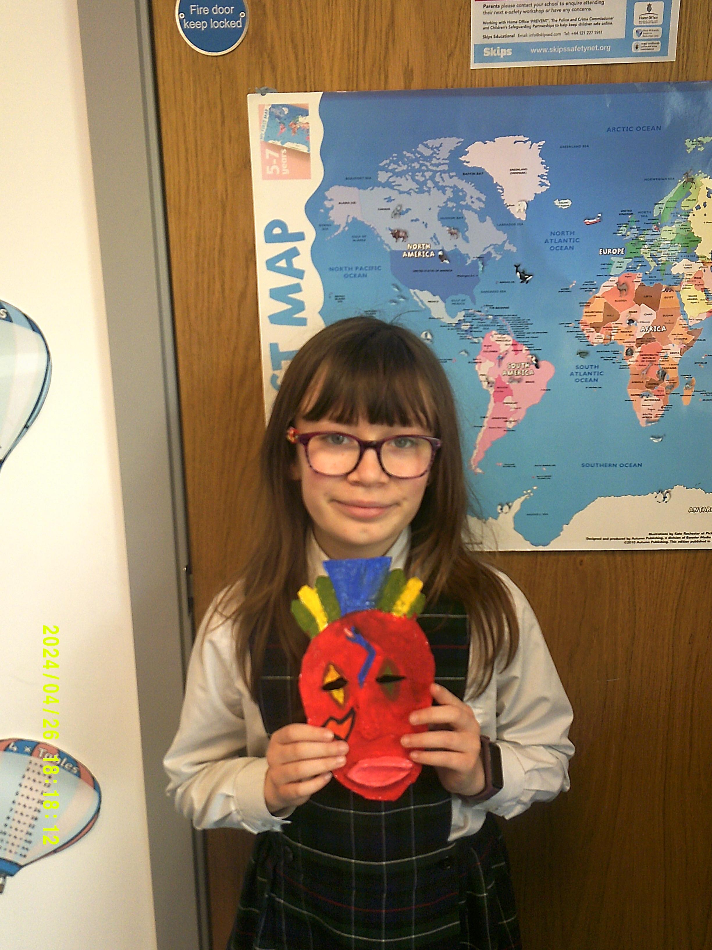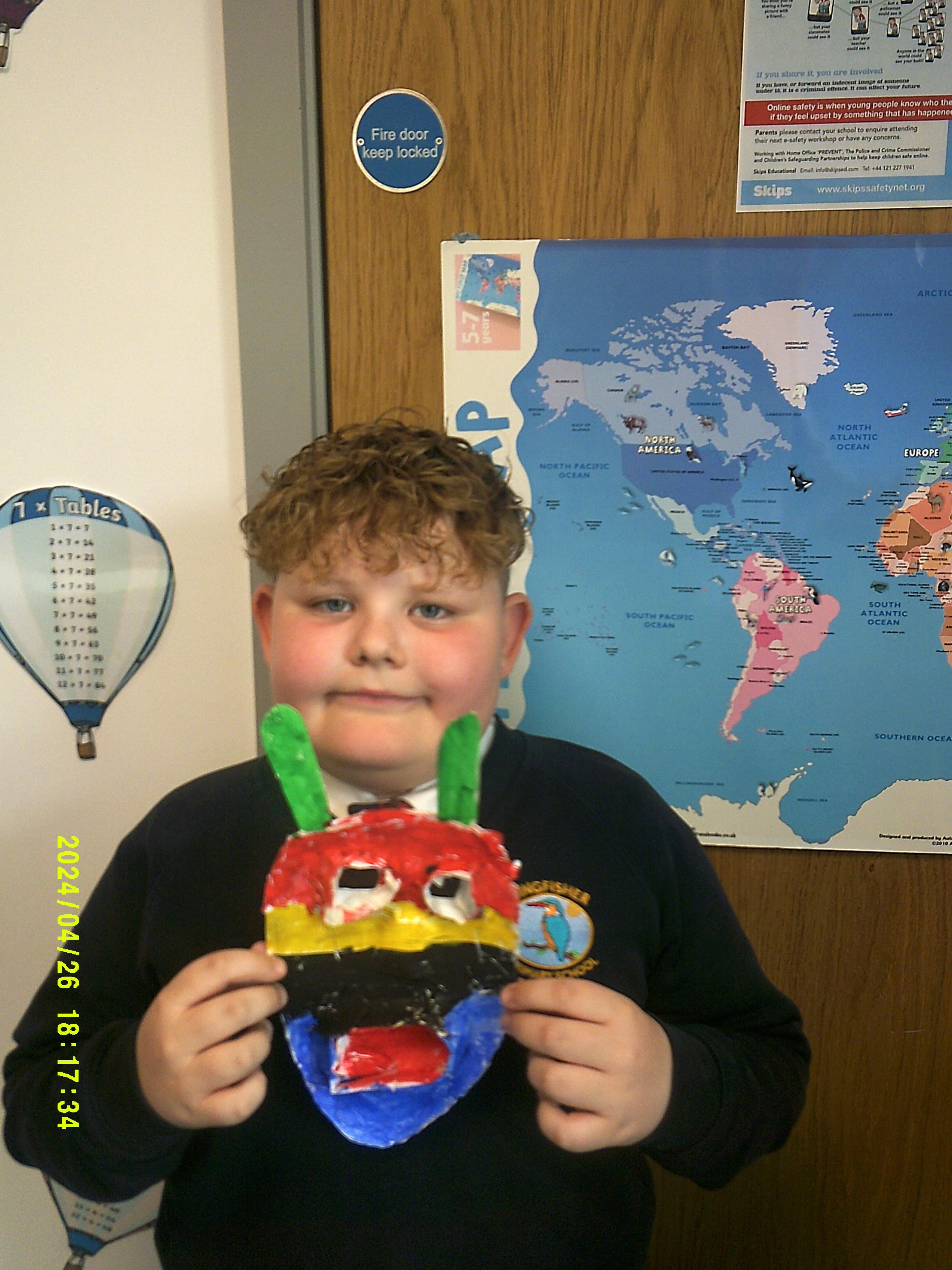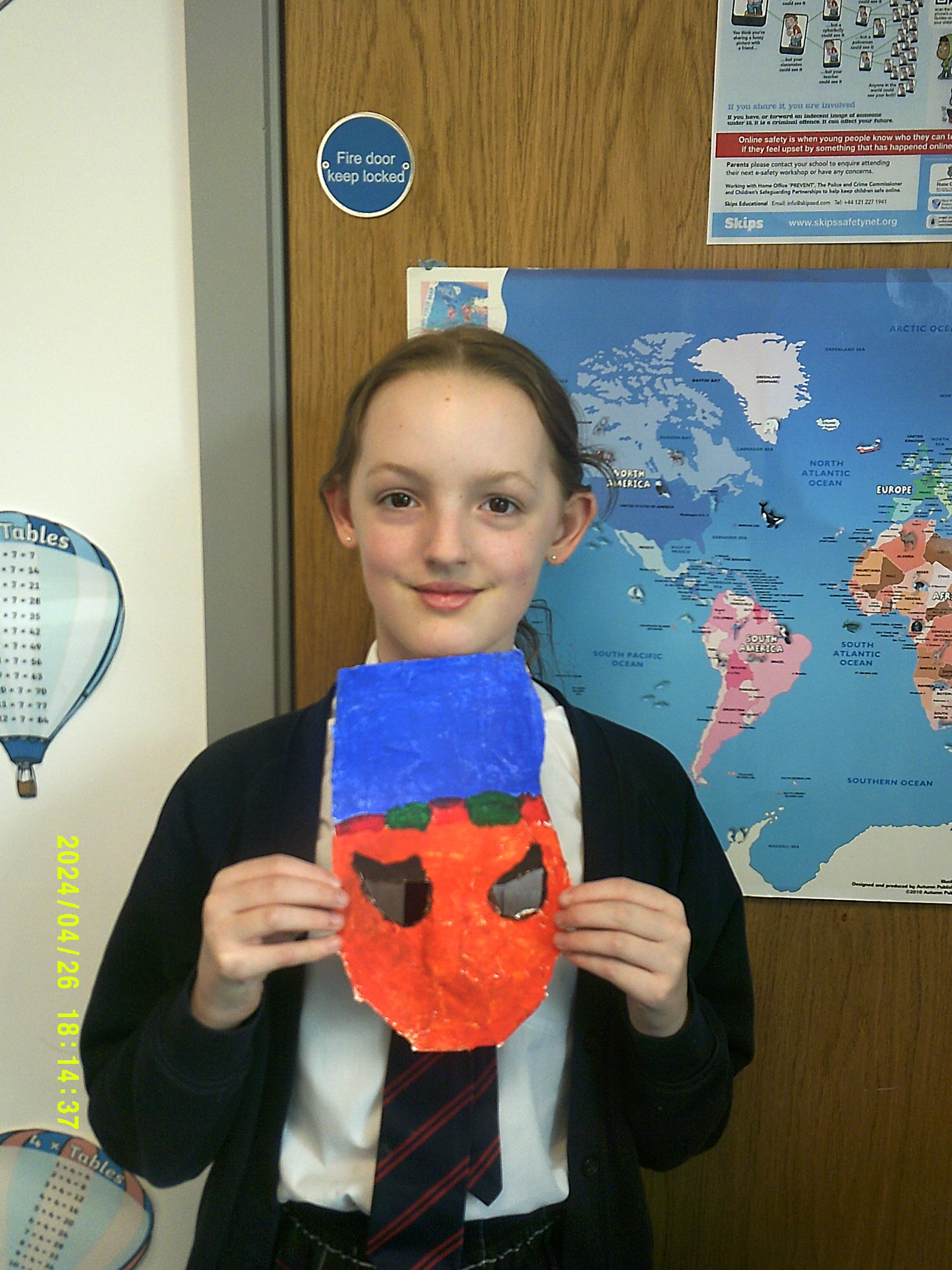 This half term the children have studied paper mache and have created their own versions of Maya mask. The colourful and innovative designs included links to Maya culture and their love of bright colours and animals.