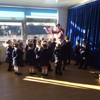 Minnow Class had lots of fun having Pete the Poet in. We got to play lots of different instruments and made up some amazing songs to help us with our rhyming. We enjoyed dressing up and getting into lots of different roles, including being animals with the puppets.