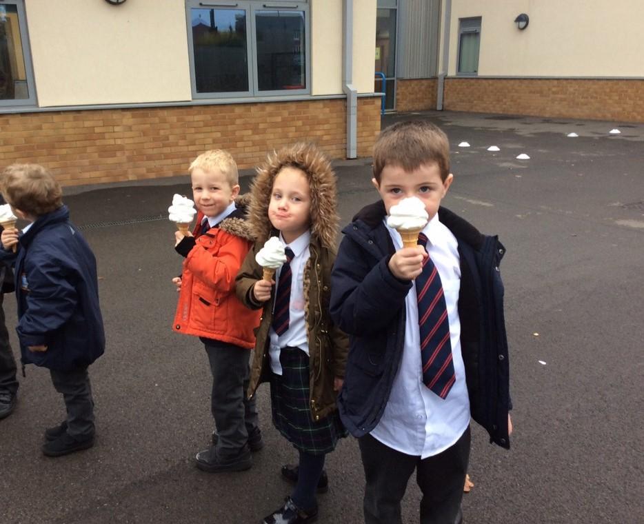 Noodles Ice Cream came and visited school. Minnow Class were wowed by the size of their ice creams, some were bigger than their faces!