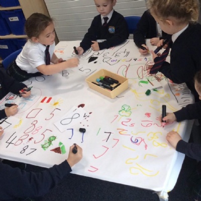 We have been working really hard to form our numbers up to 10. The children use our number rhyme to help them remember the correct way to form them.