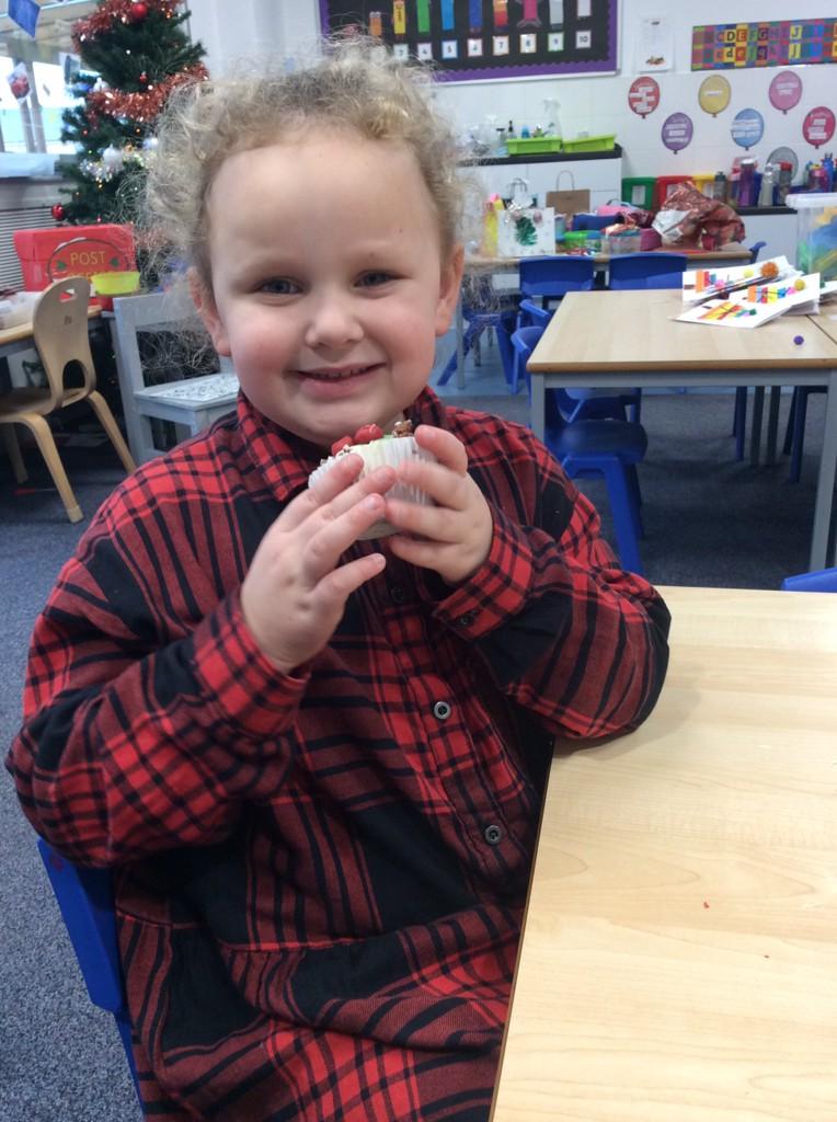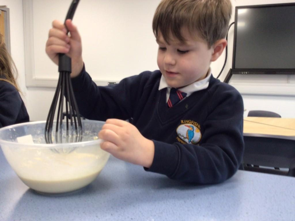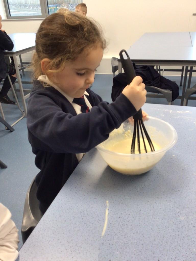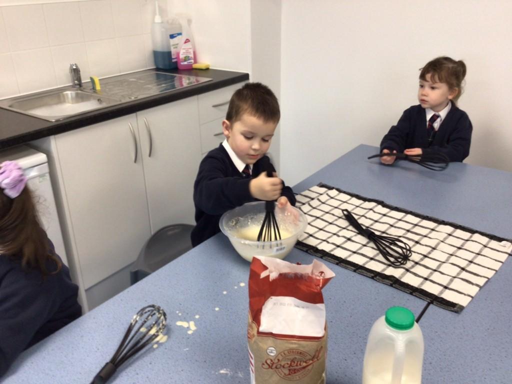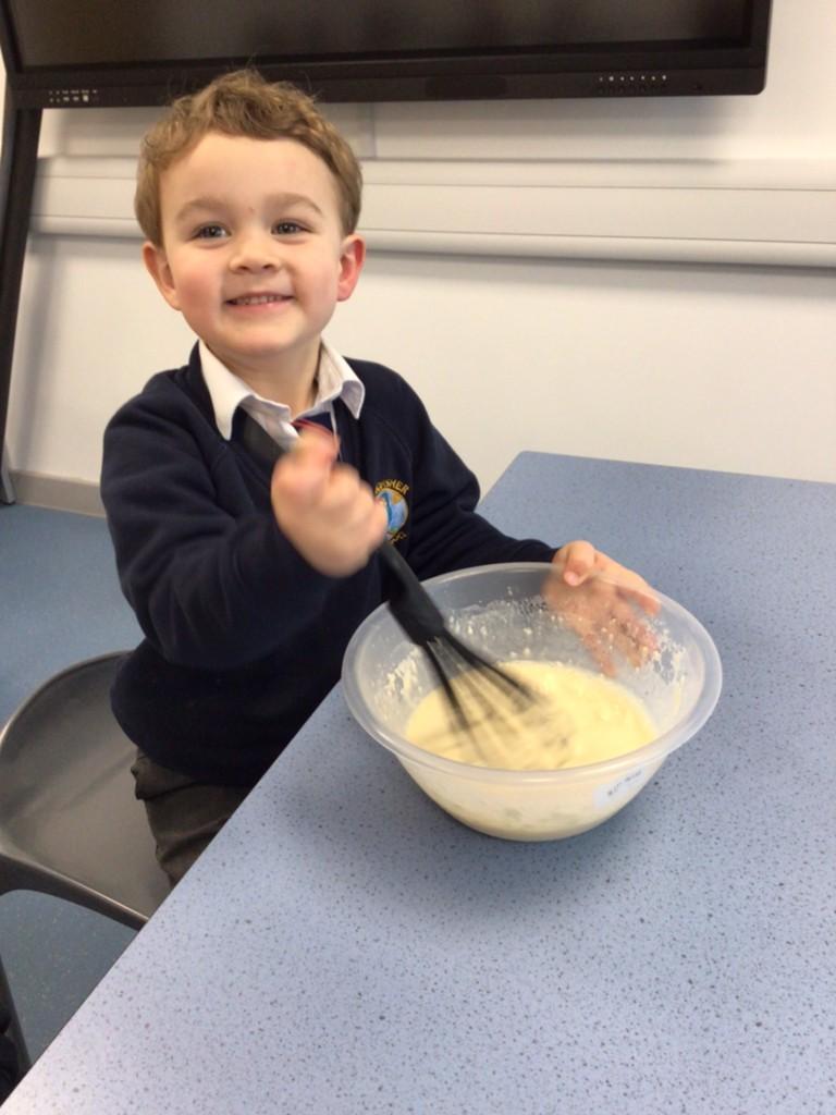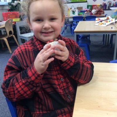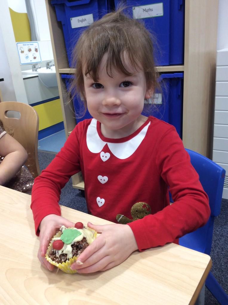 For Christmas, we created some Christmas Puddings using Rice Krispies. The children mixed together the melted marshmallows, chocolate, butter and Rice Krispies. They then shaped them into a sphere (one of our 3D shapes we had learnt about), adding white chocolate on the top and then finishing them off by rolling and shaping icing to make them look like holly and red berries.