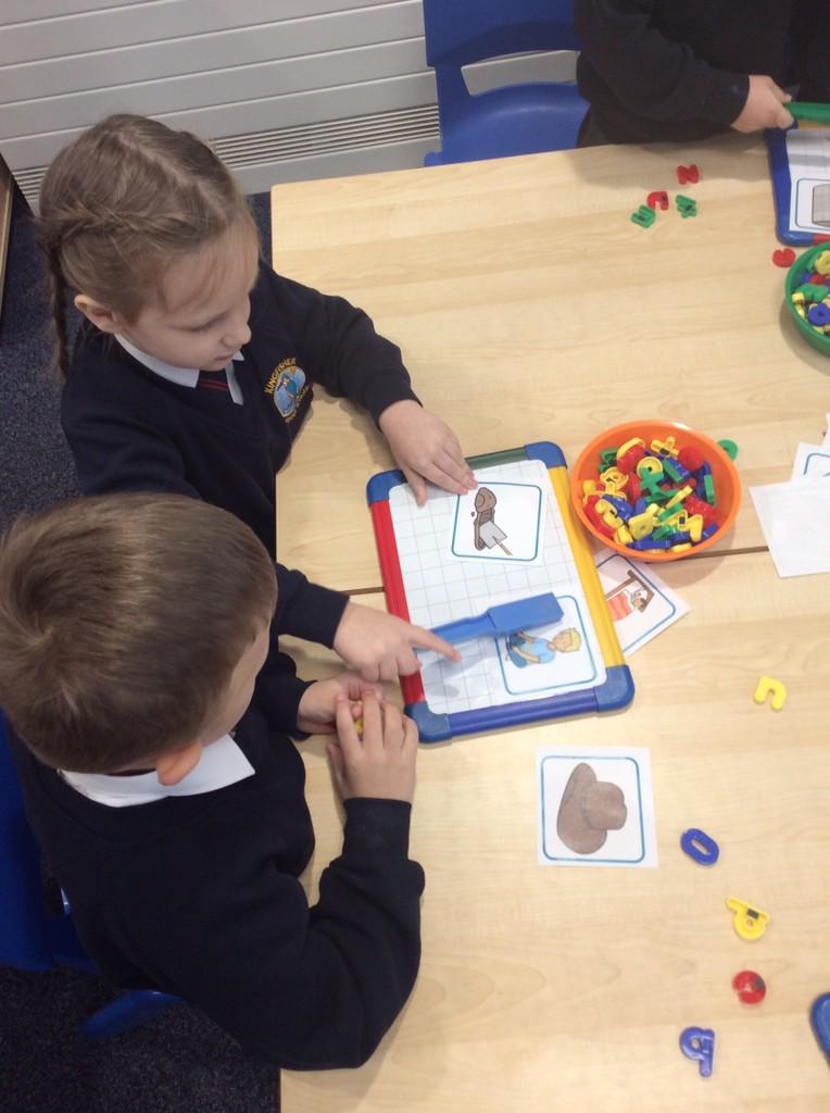 We have been working really hard in Minnow Class to try and create some CVC words. The children have been listening for initial sounds in words and then using their sounds to segment the rest. Some of us have pushed ourselves even further to try and spell some CVCC.