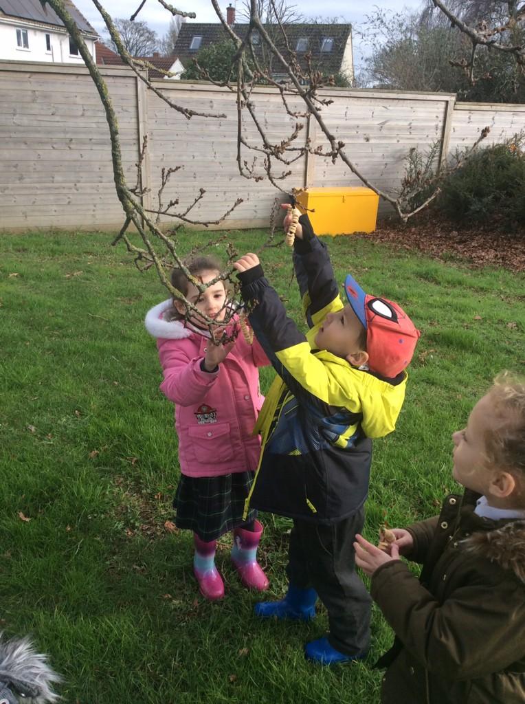 The children enjoyed making feeders, putting them up in our field for the birds and investigating the environment to see if they could spot any species of birds or some of their habitats and food sources.