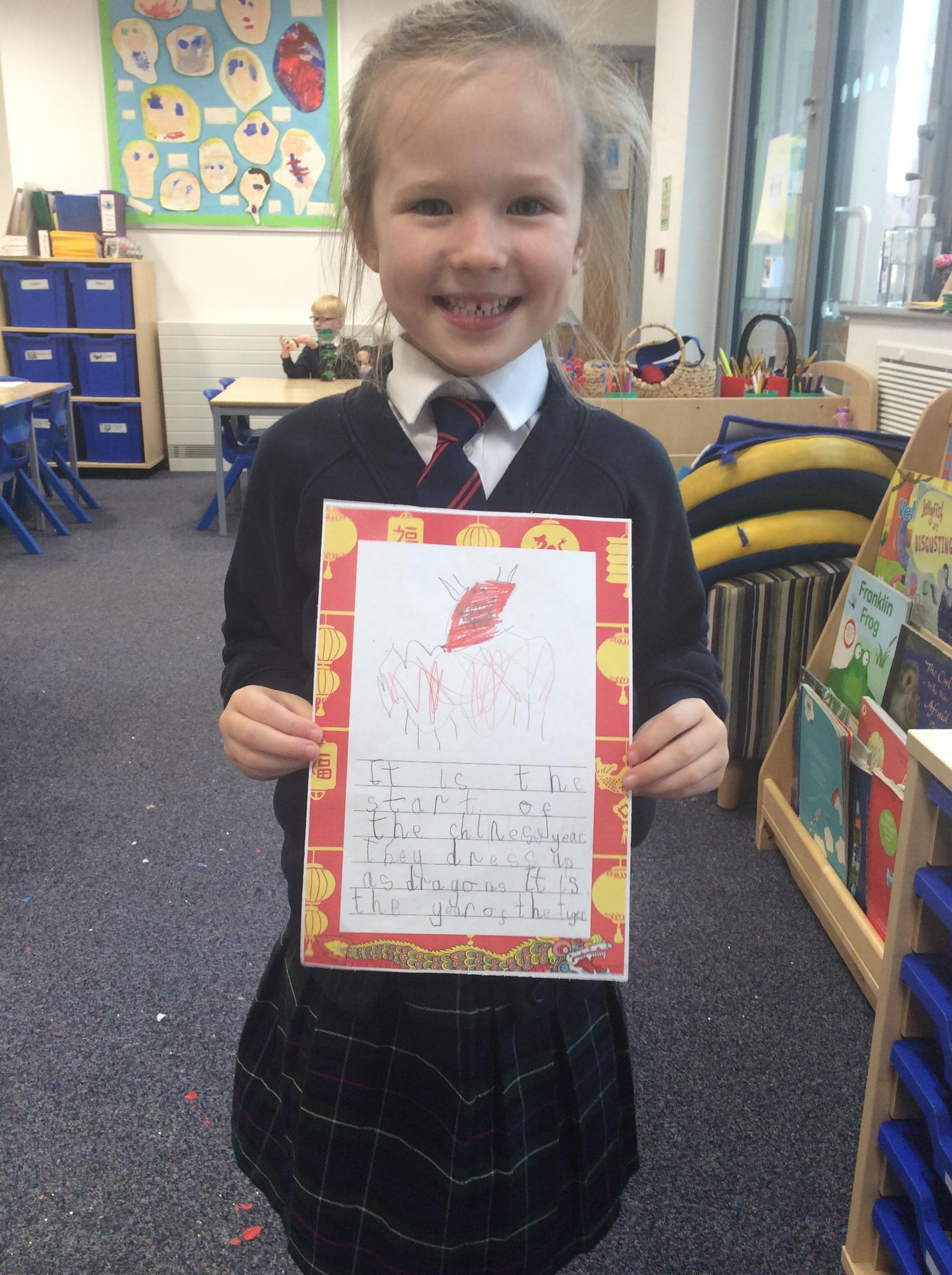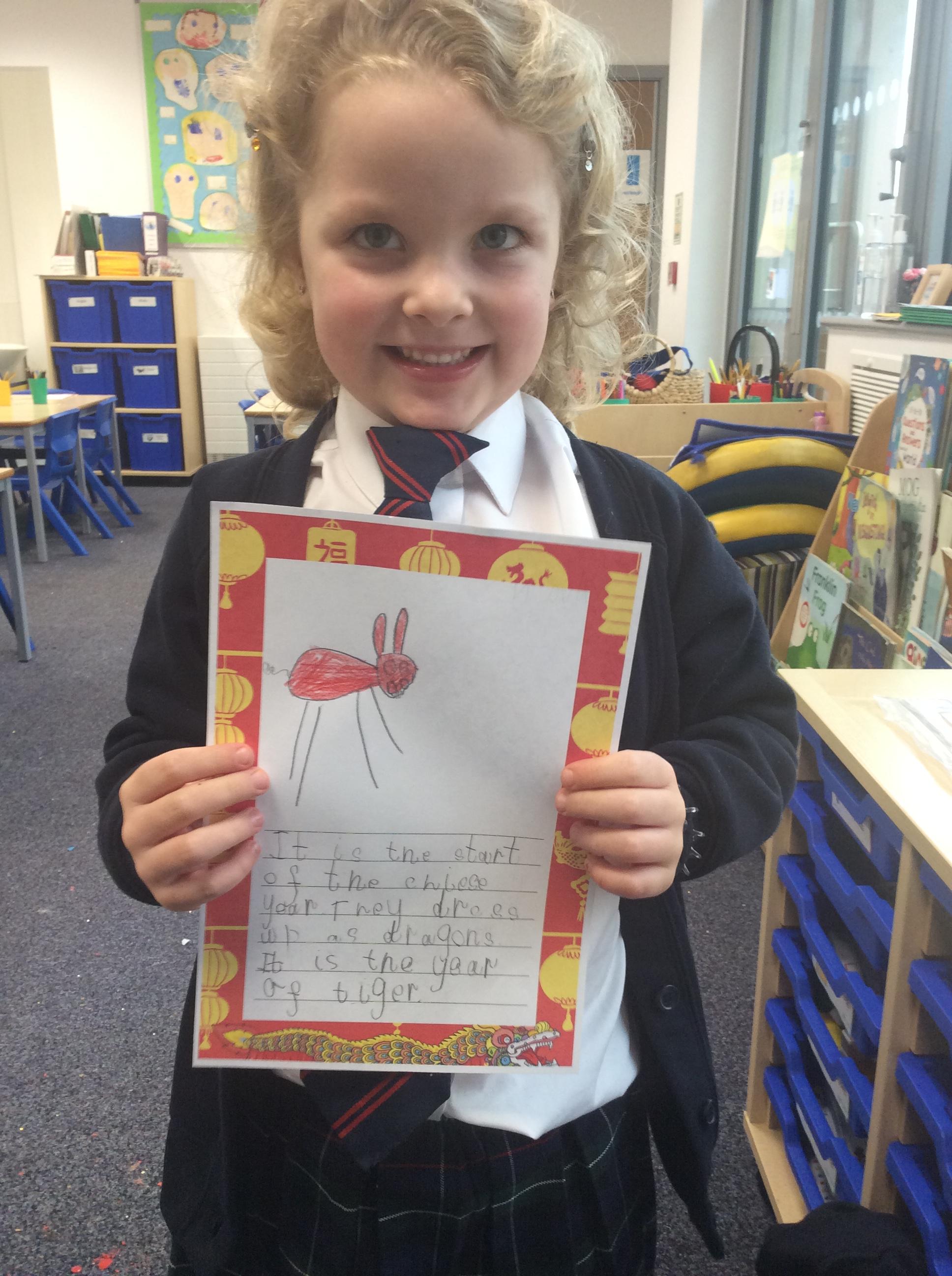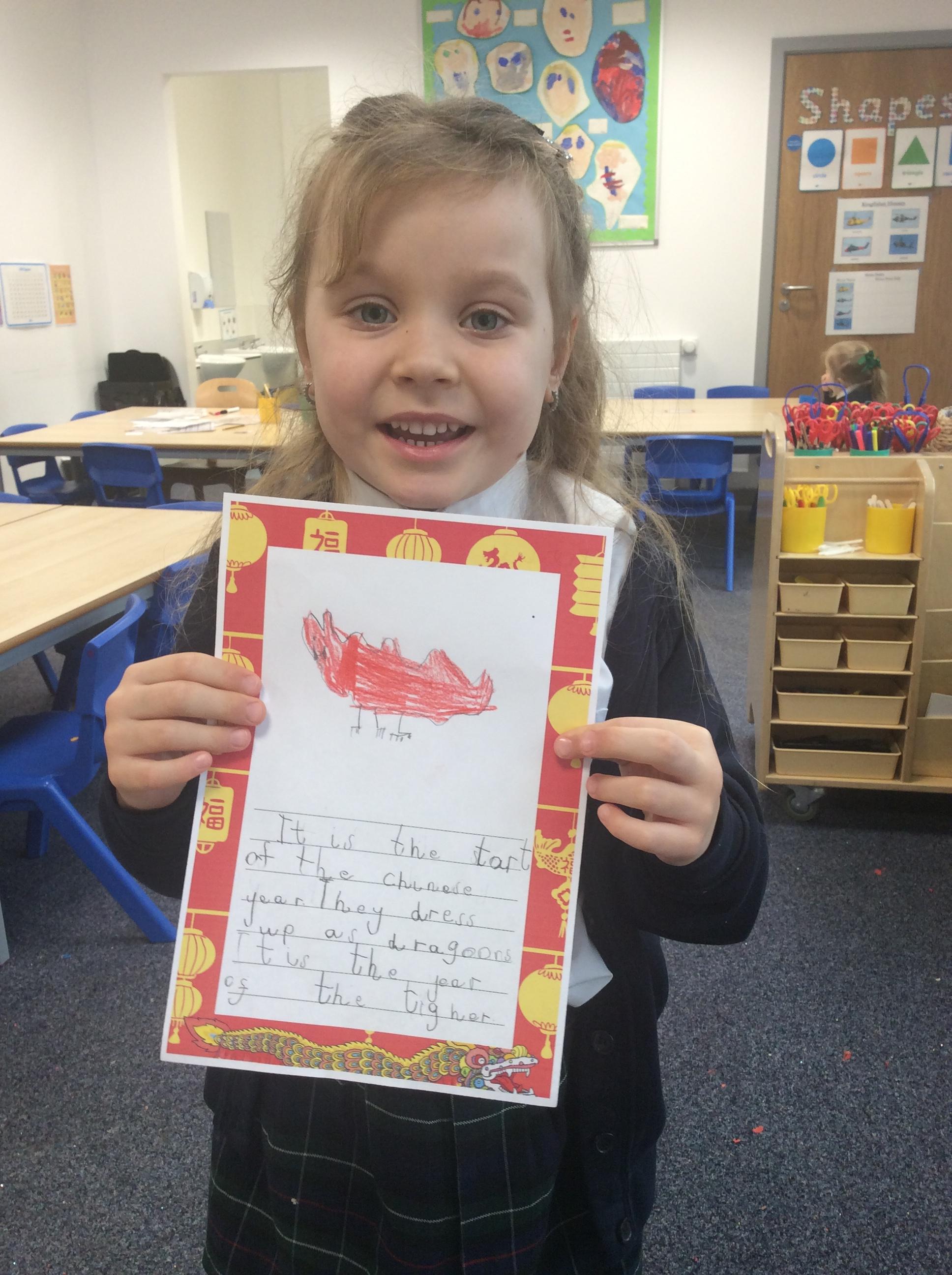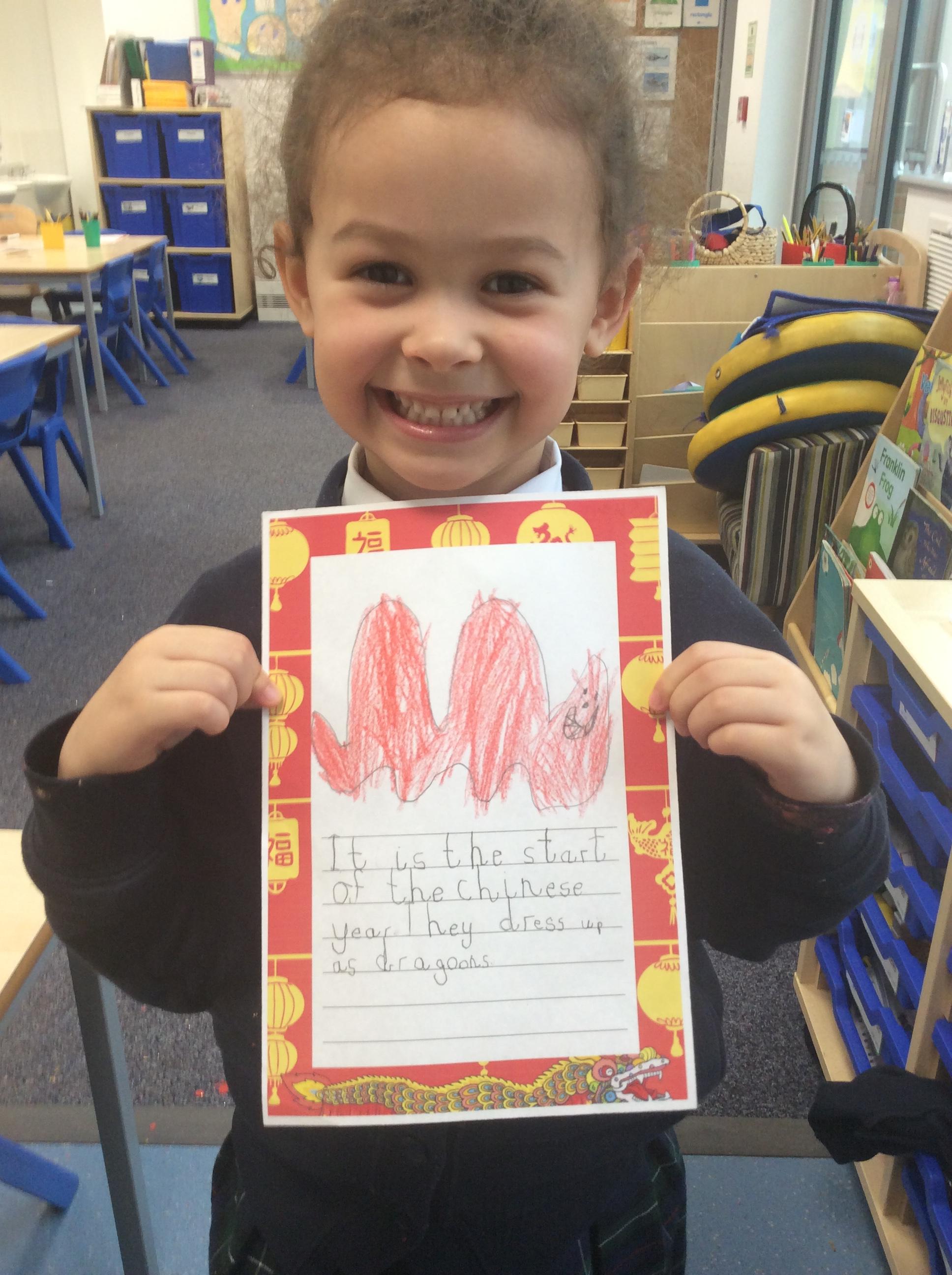We have been celebrating Chinese New Year in Minnow Class. The children have loved learning about a different culture. We have spoke about it being the year of the tiger and have worked out that the children in our class were born in the year of monkeys or roosters.The children created some beautiful pictures of dragons and got to take part in writing numbers in a different language.