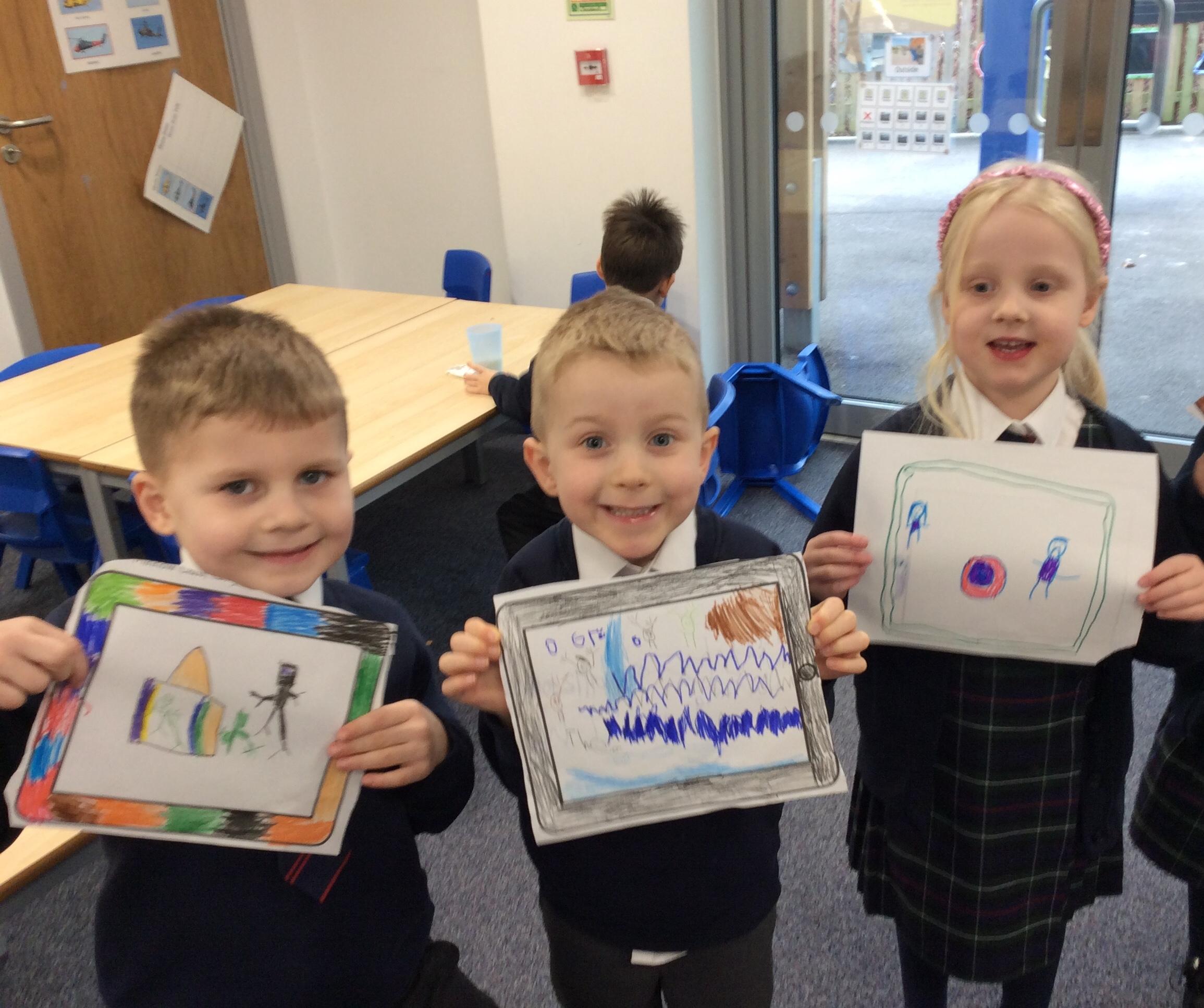We have also discussed what we would do if we saw a message pop up on any of our devices and came up with stop, think and tell. The children wrote this down alongside some pictures to help them remember it.