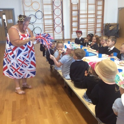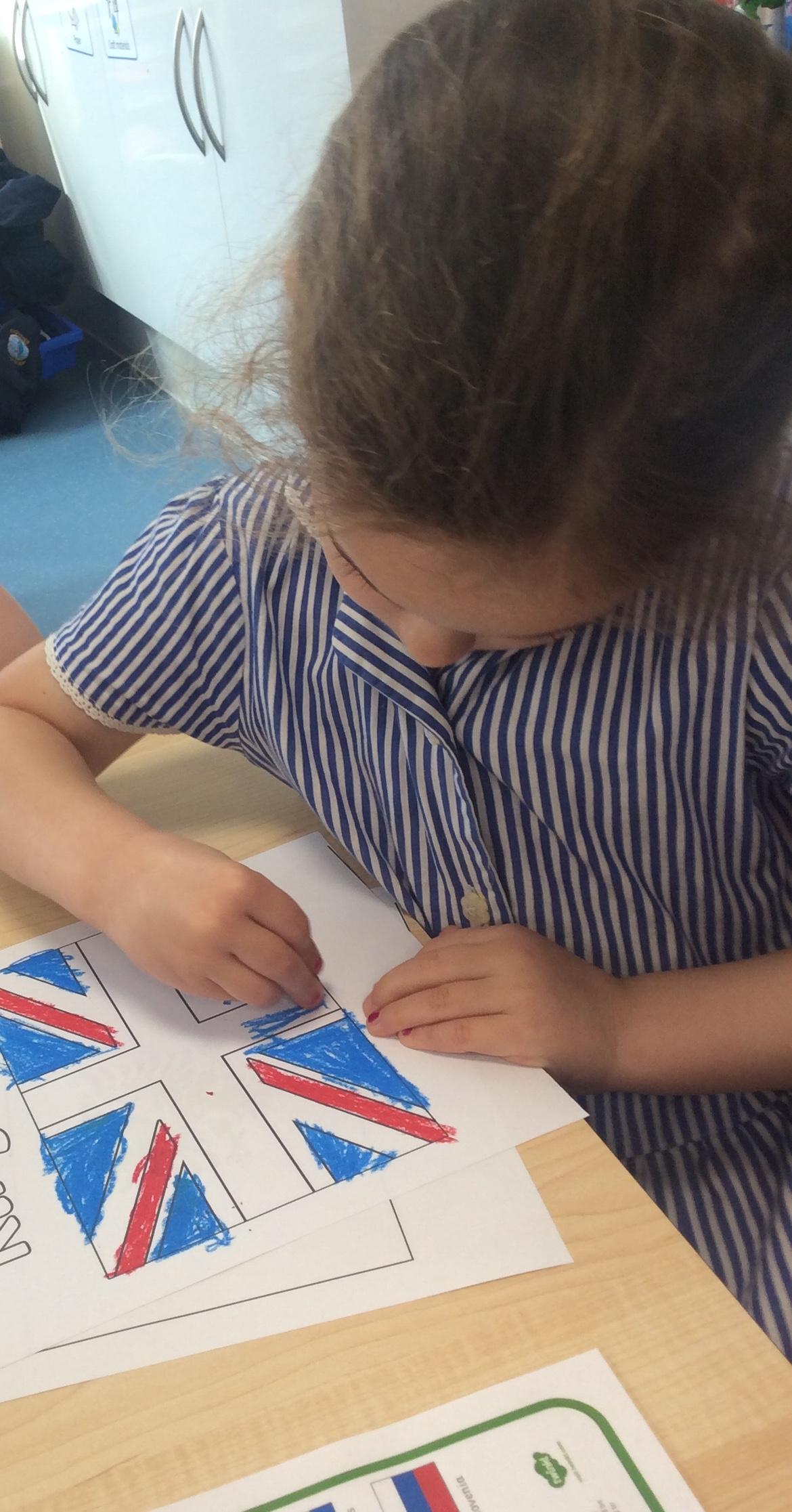 Today we have been getting arty with some beautiful personalised Queen themed crafts. The children made a suncatchers using Union Jack colours, we had lots of amazing different designs.