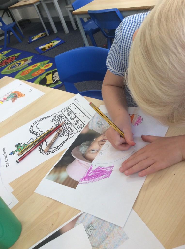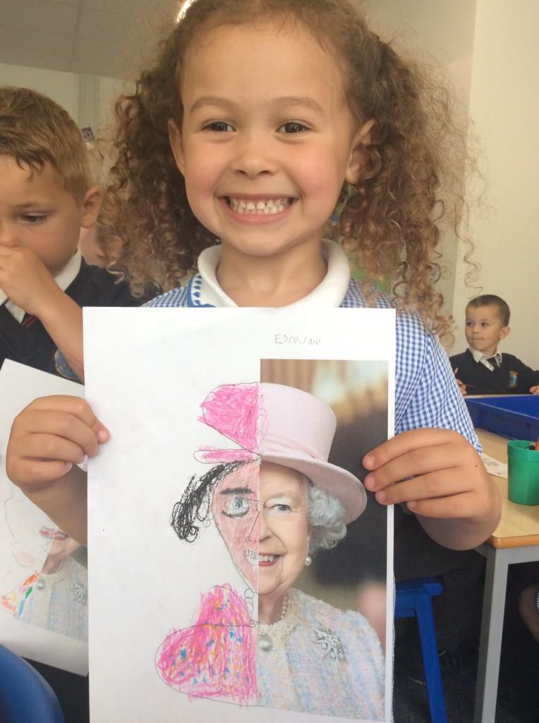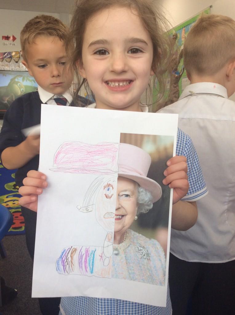 Today we have been seeing if we can draw the rest of the Queen’s portrait. Lots of the children were very careful and took their time looking at her. We had some great representations.