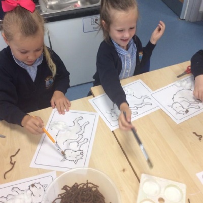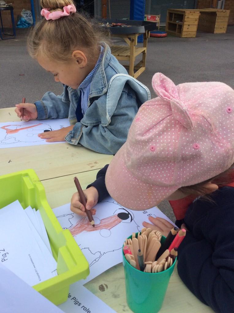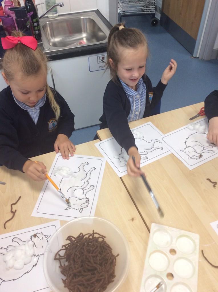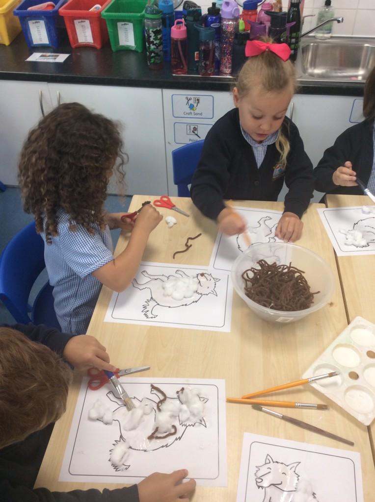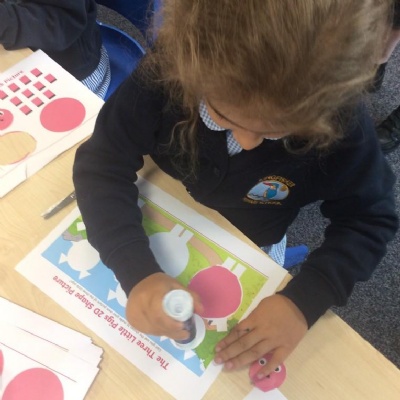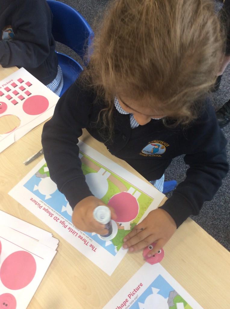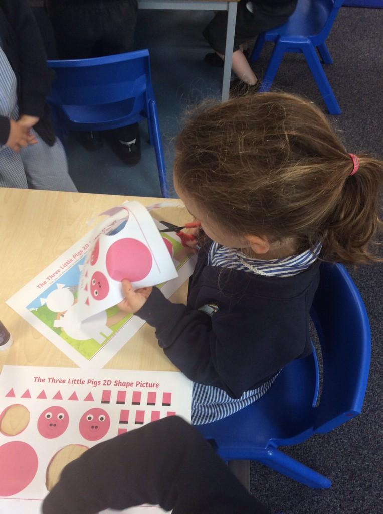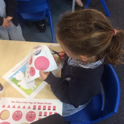 We have also made some art of the wolf and used our knowledge of 2D shapes to create the pigs from the story.