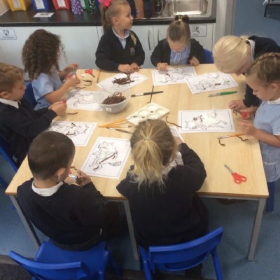 The children went on a walk around school. We looked for signs of Autumn and found lots of yellow, red and orange leaves. We collected lots of sticks to make Hedgehogs and to help us remember all the facts we learnt about them.