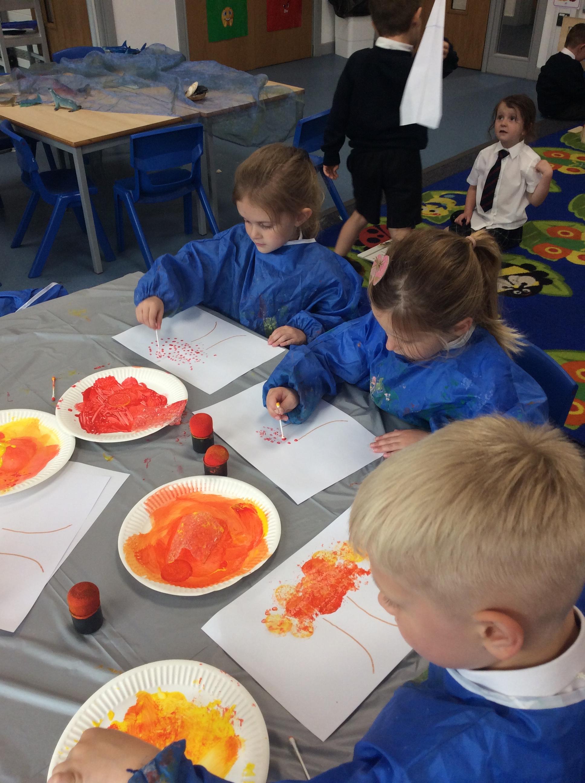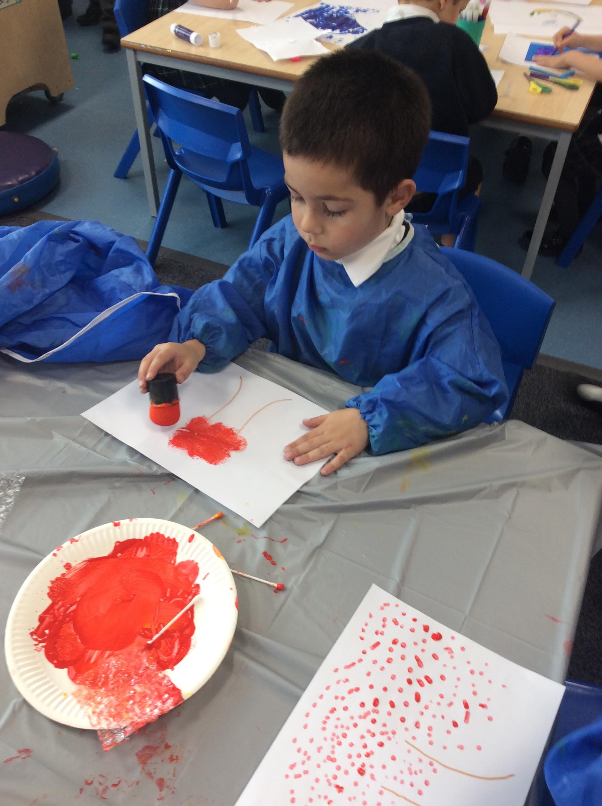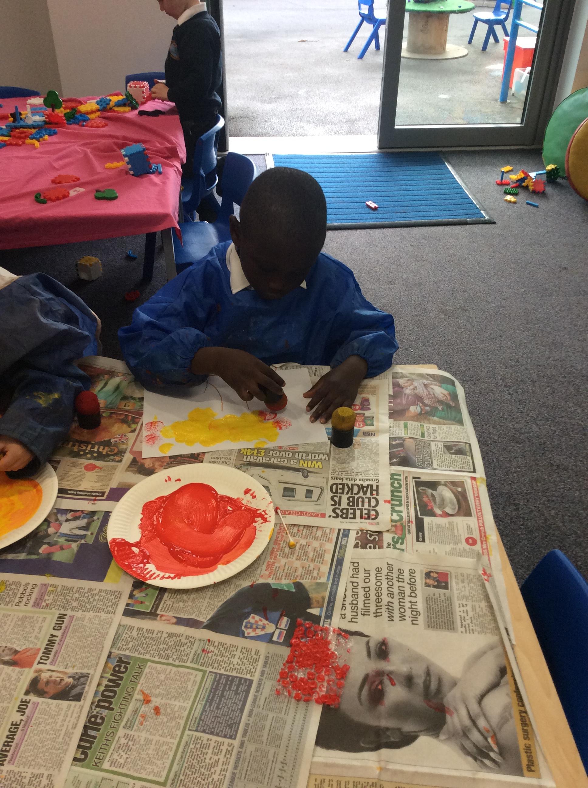 This term the children have been learning how to print. In art we used a variety of different materials, including sponges, cotton buds and bubble wrap, to print the leaves on our Autumn trees.
