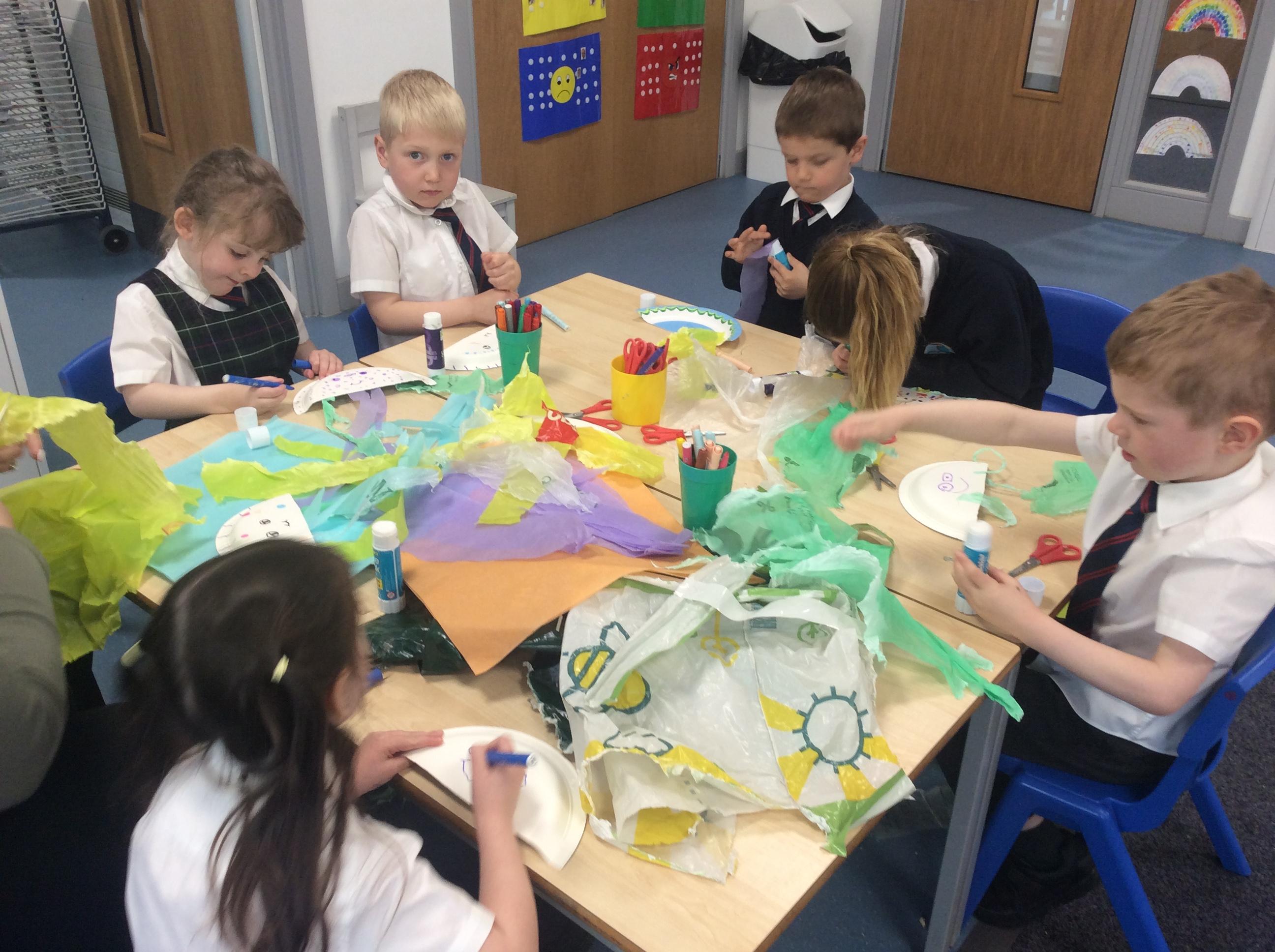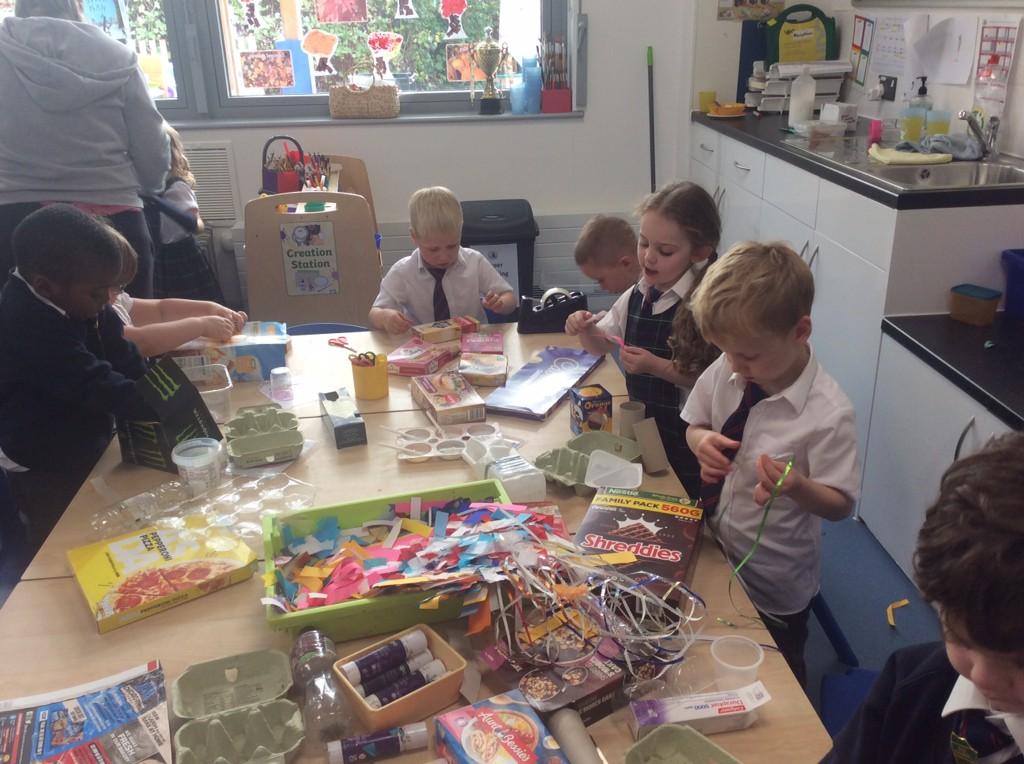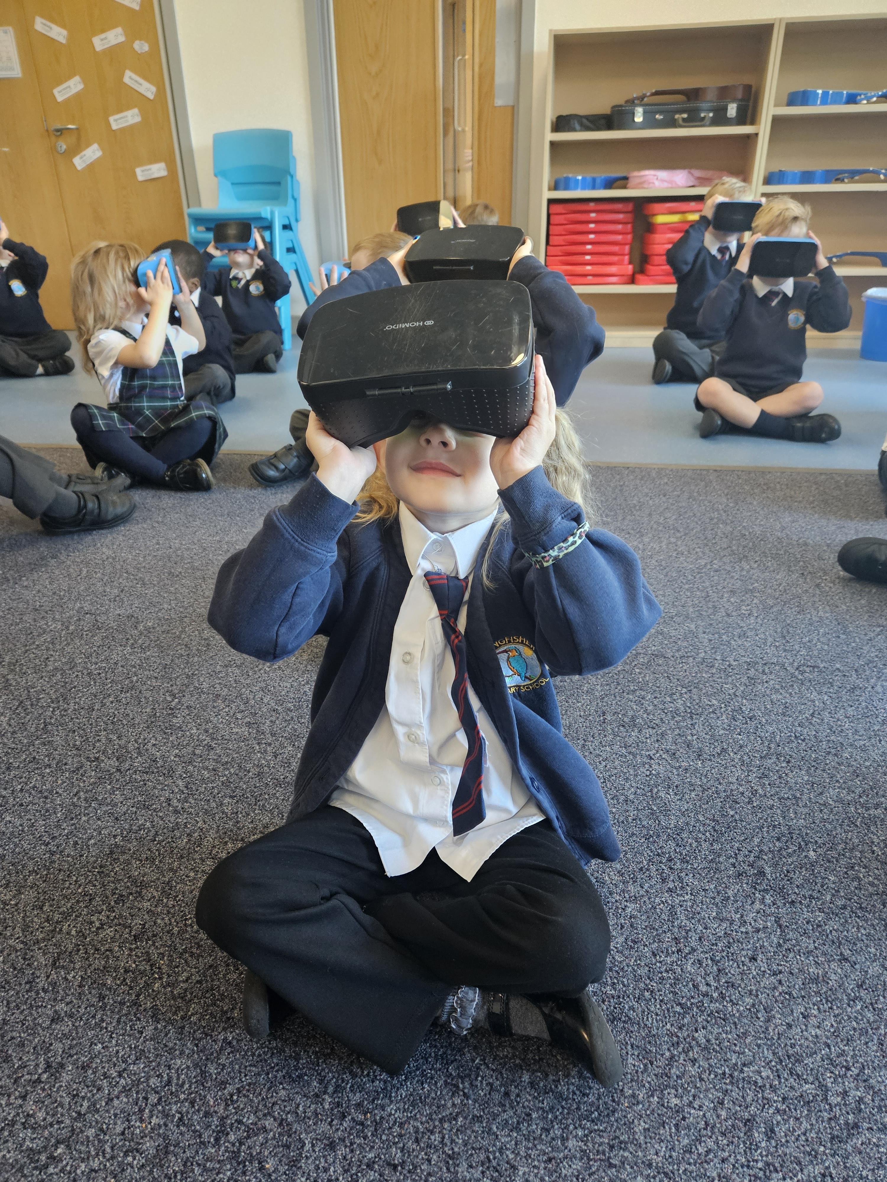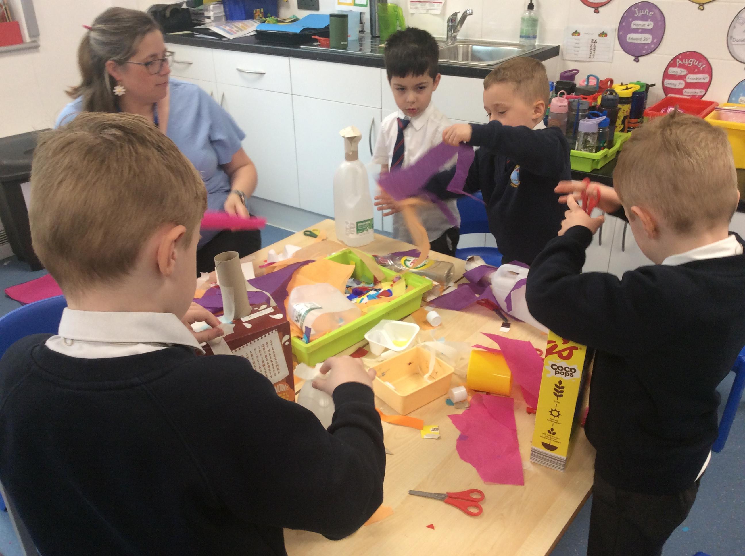 The children really enjoyed participating in eco day. They loved exploring the VRs and learning more about how we can look after our planet in the virtual reality workshop. Then in the afternoon we read the story 'Somebody Swallowed Stanley' and used this as a prompt to talk about what else we could do with our rubbish. The children then had fun using junk to create lots of different models including rocket ships and robots.
