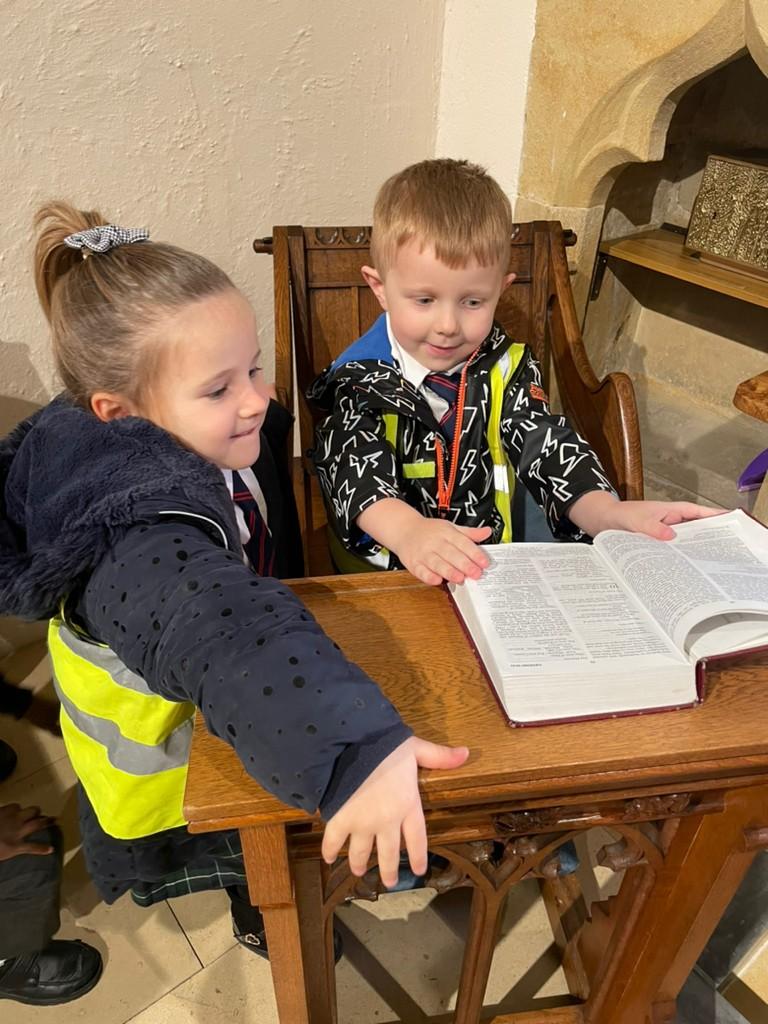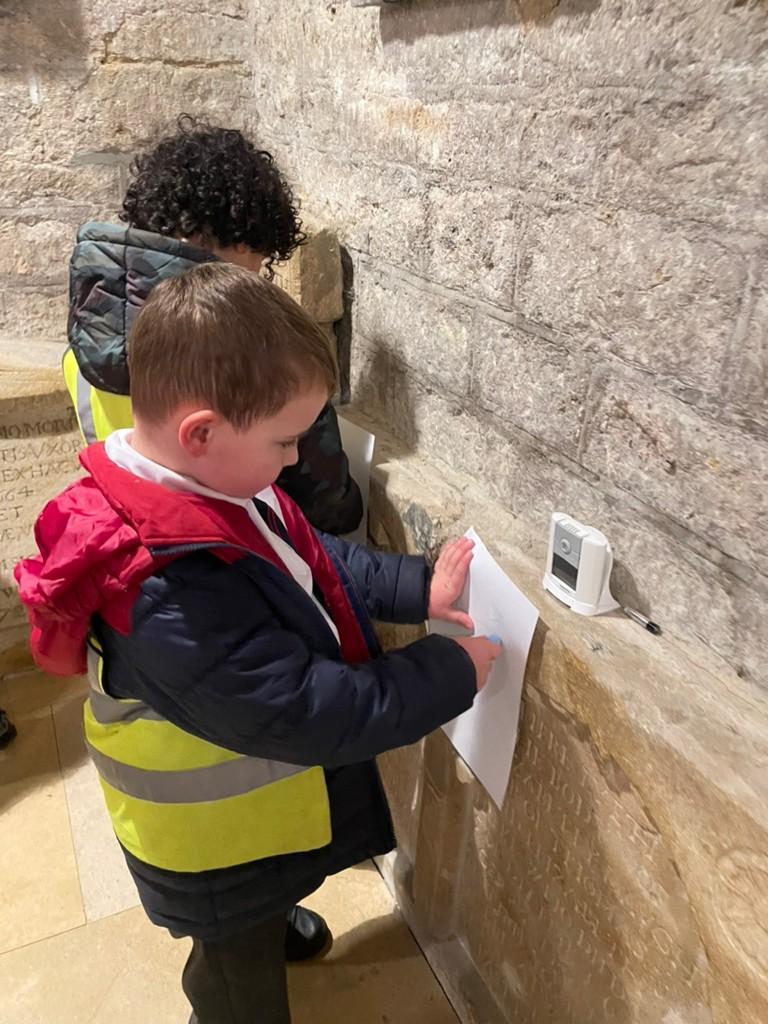 The children had a lovely time visiting St James Church. They had time to explore the church and the different features. They did some rubbings of the different reliefs around the church. Finally they helped Reverend Keen find the Nativity characters hidden around the church and then retold the Nativity story.