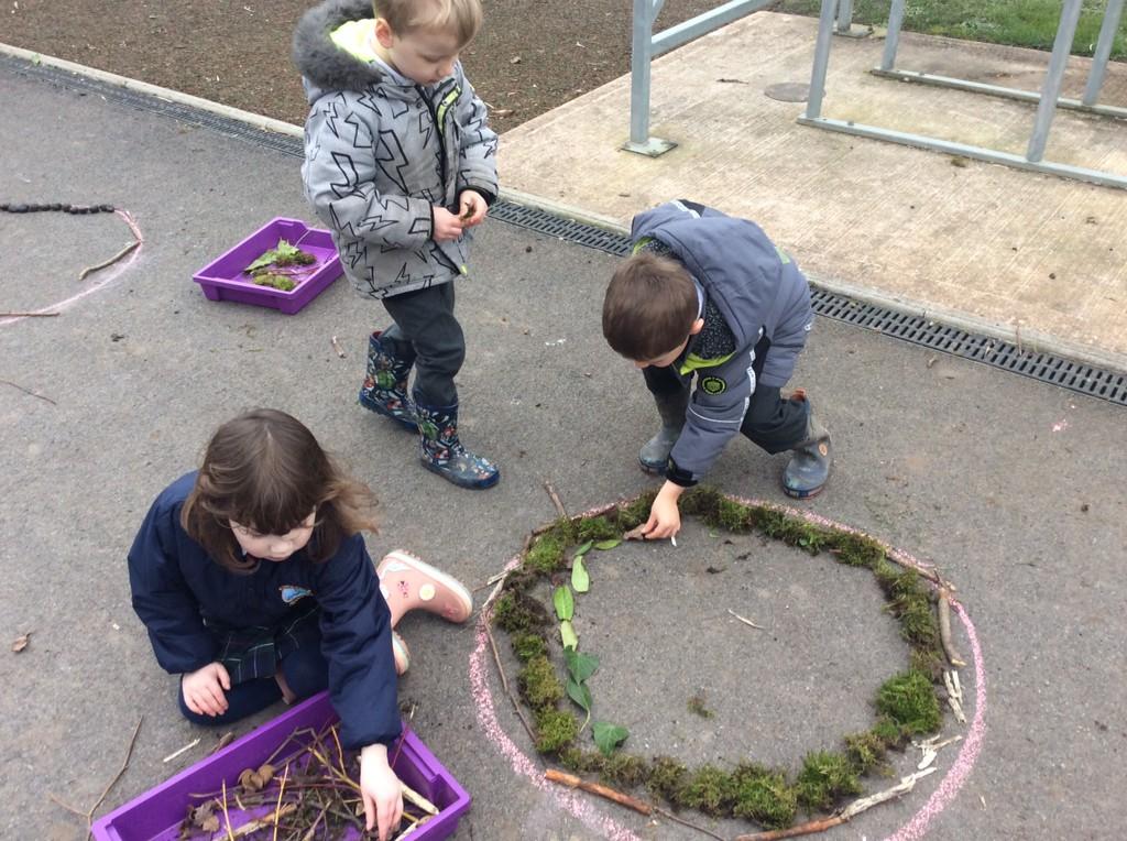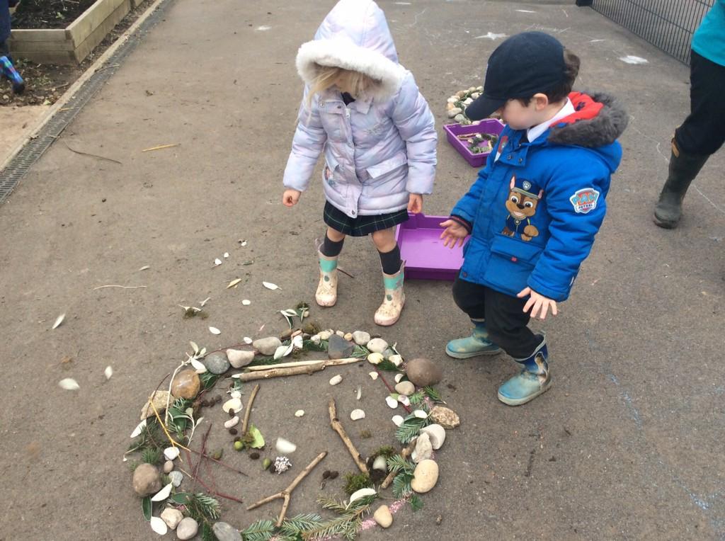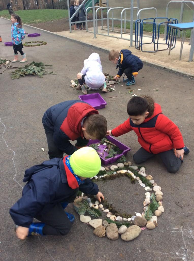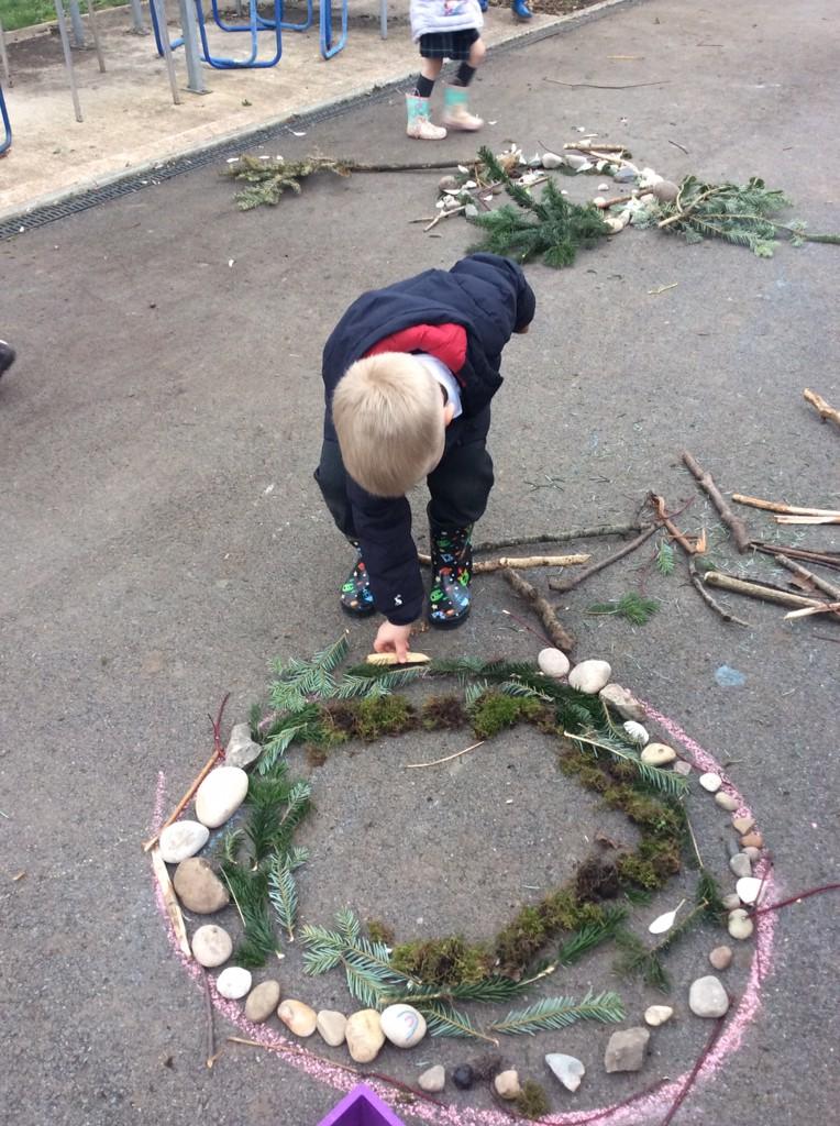 In outdoor learning this week we looked at Andy Goldsworthy and his art. We then went and collected lots of different natural materials and had a go at making art in the same style.