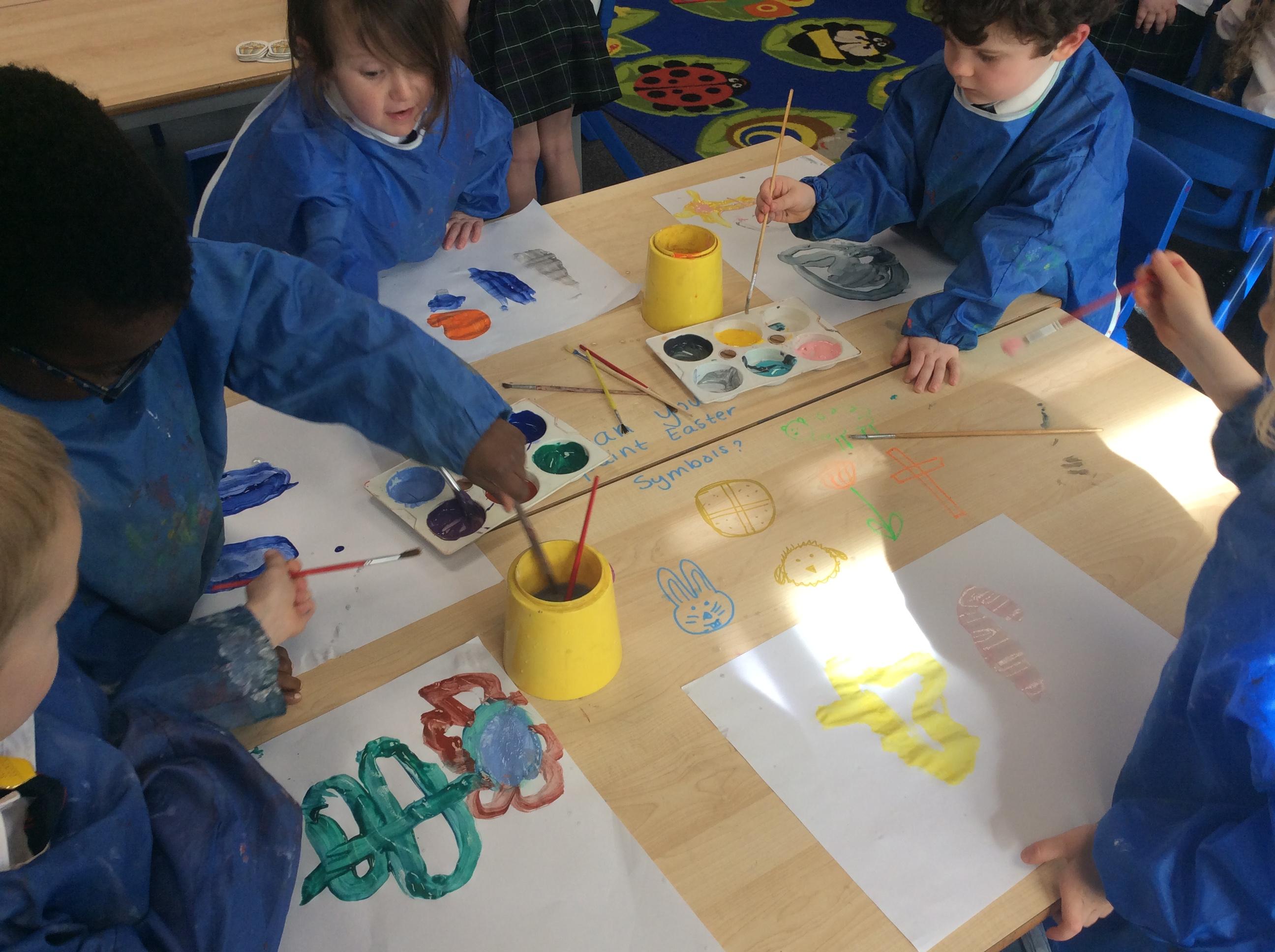We really enjoyed celebrating and learning about Easter in Minnow Class. We learnt about the Easter story and the meaning of Easter. We also talked lots about how Easter represents new life at Spring time. We carried out lots of activities including painting Easter symbols, writing Easter words and retelling the Easter story.