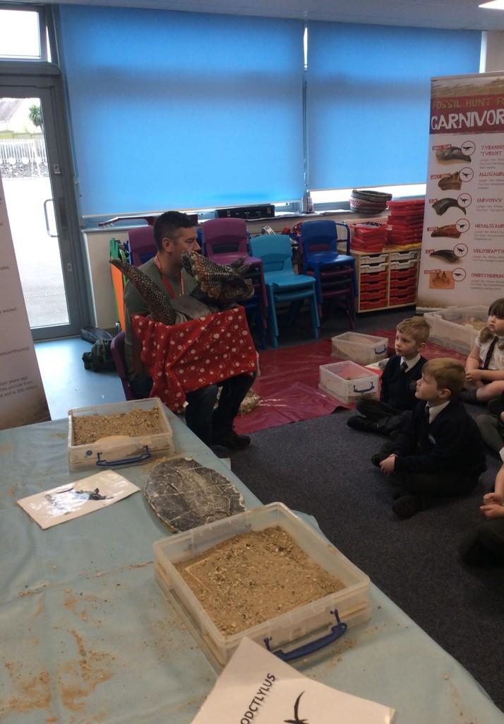 The children had an amazing time at the dinosaur workshop. They got to have a go at being palaeontologists and unearth some of their own fossils. They learnt all about different dinosaurs and creatures that were alive back then. Finally they got to meet two baby dinosaurs and give them a little stroke.