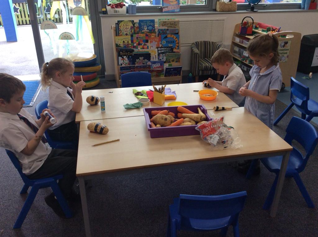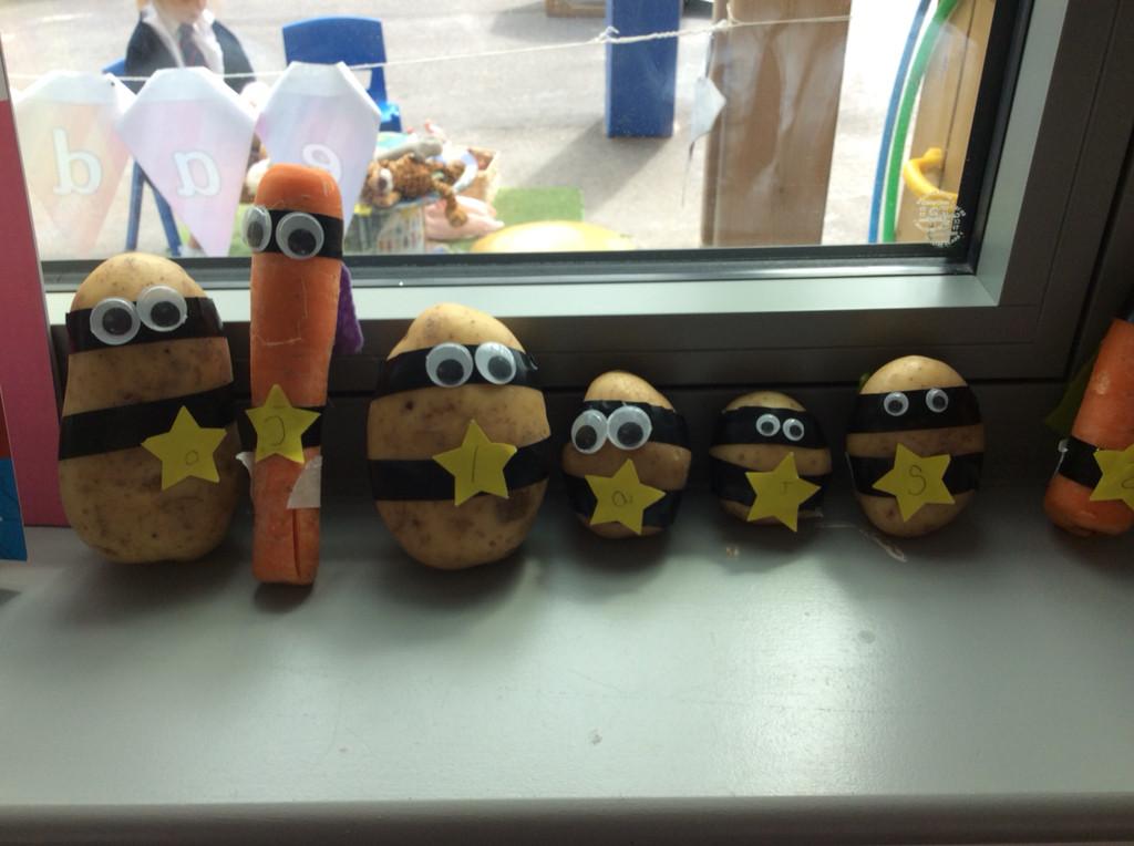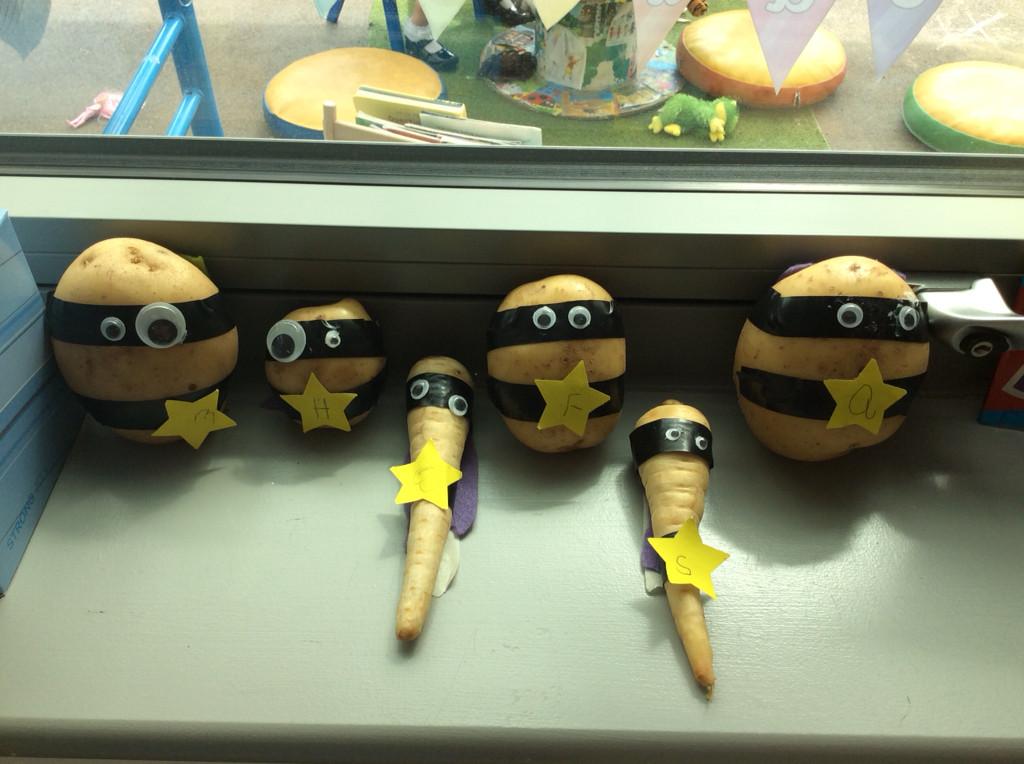 As part of our 'Let's Explore' topic we looked at Superheroes. We used the story Supertato to work from and had a great time creating our own super veg. We then wrote about all of the superpowers our vegetables had and how they could help people.