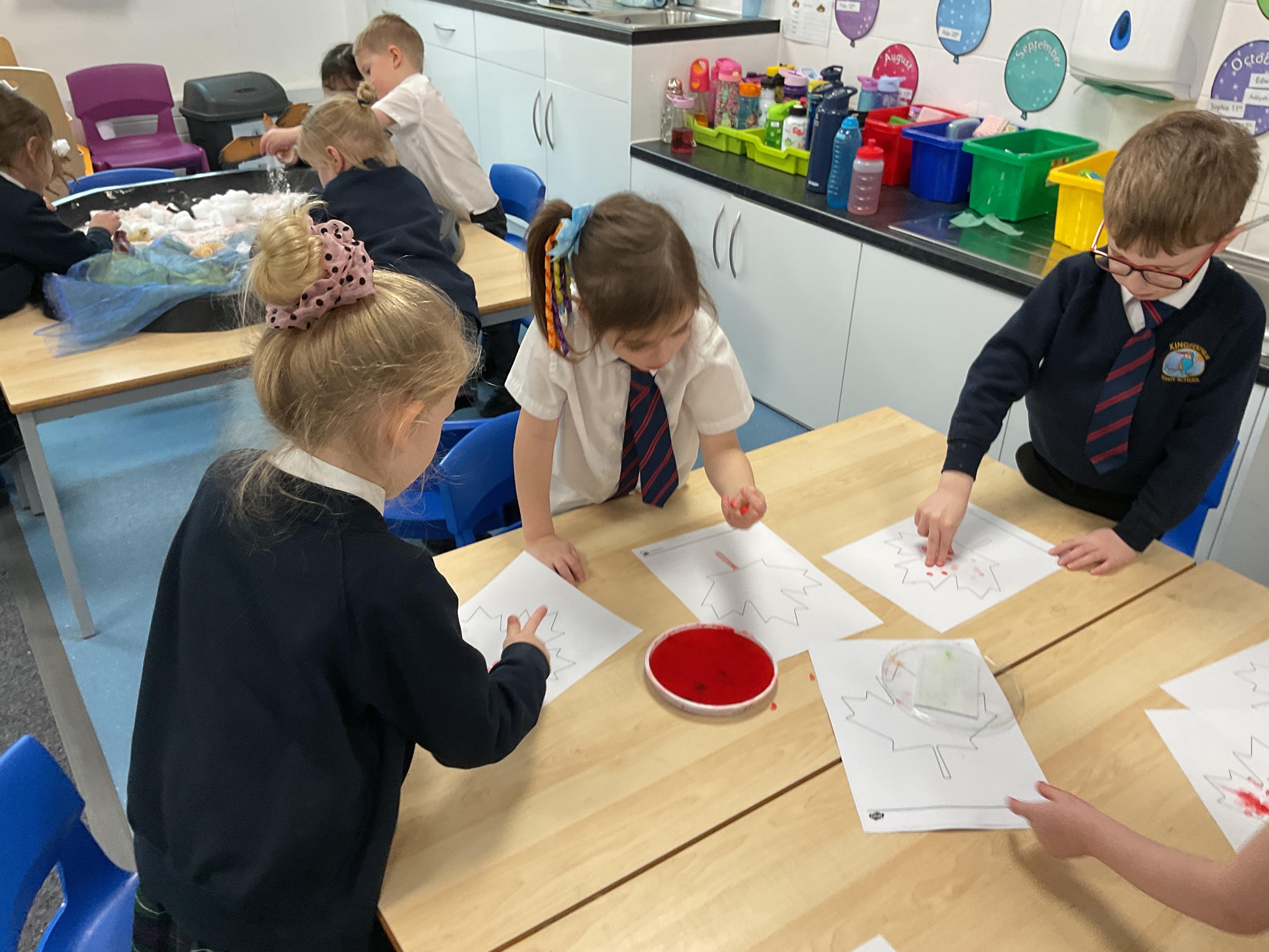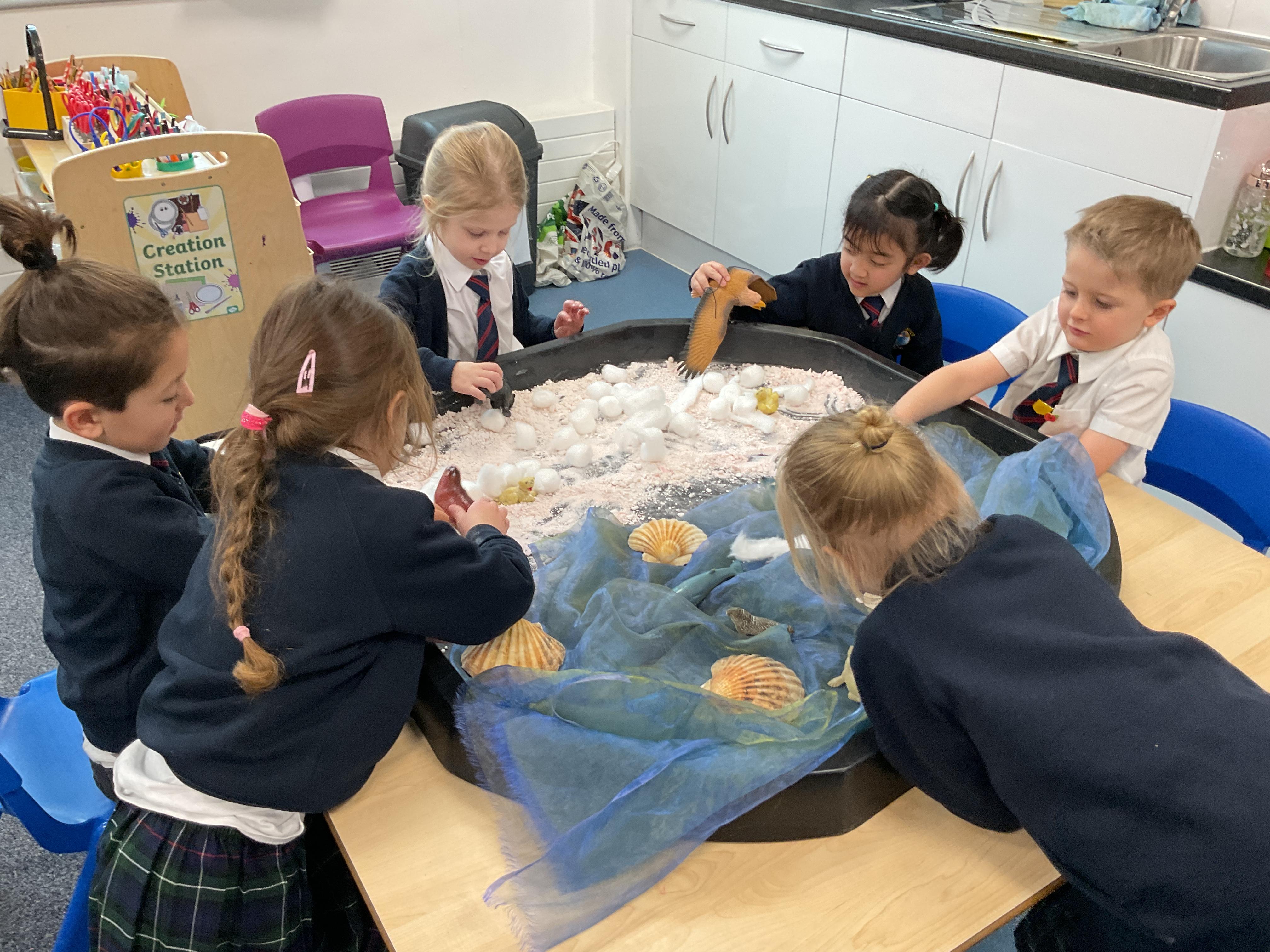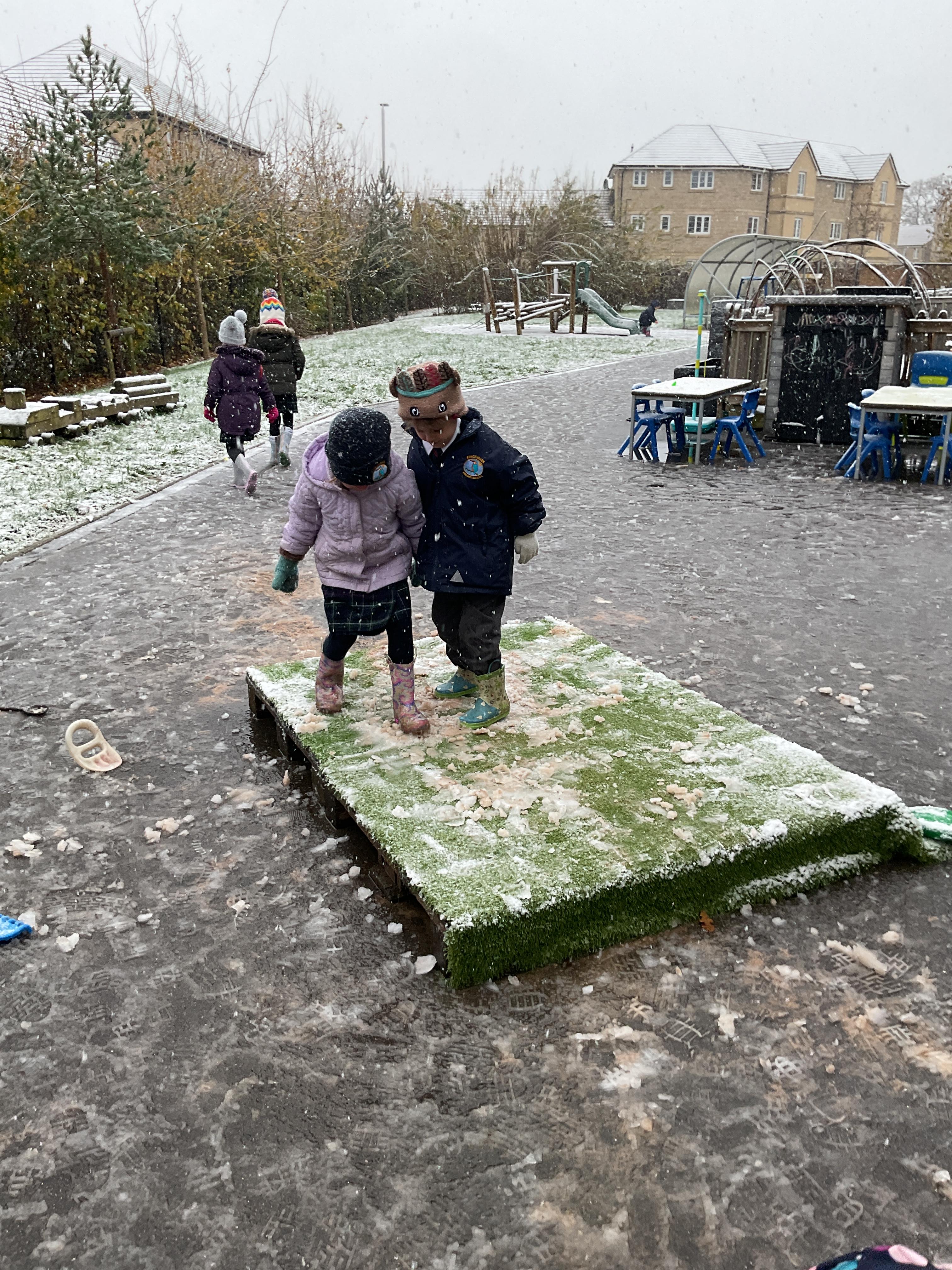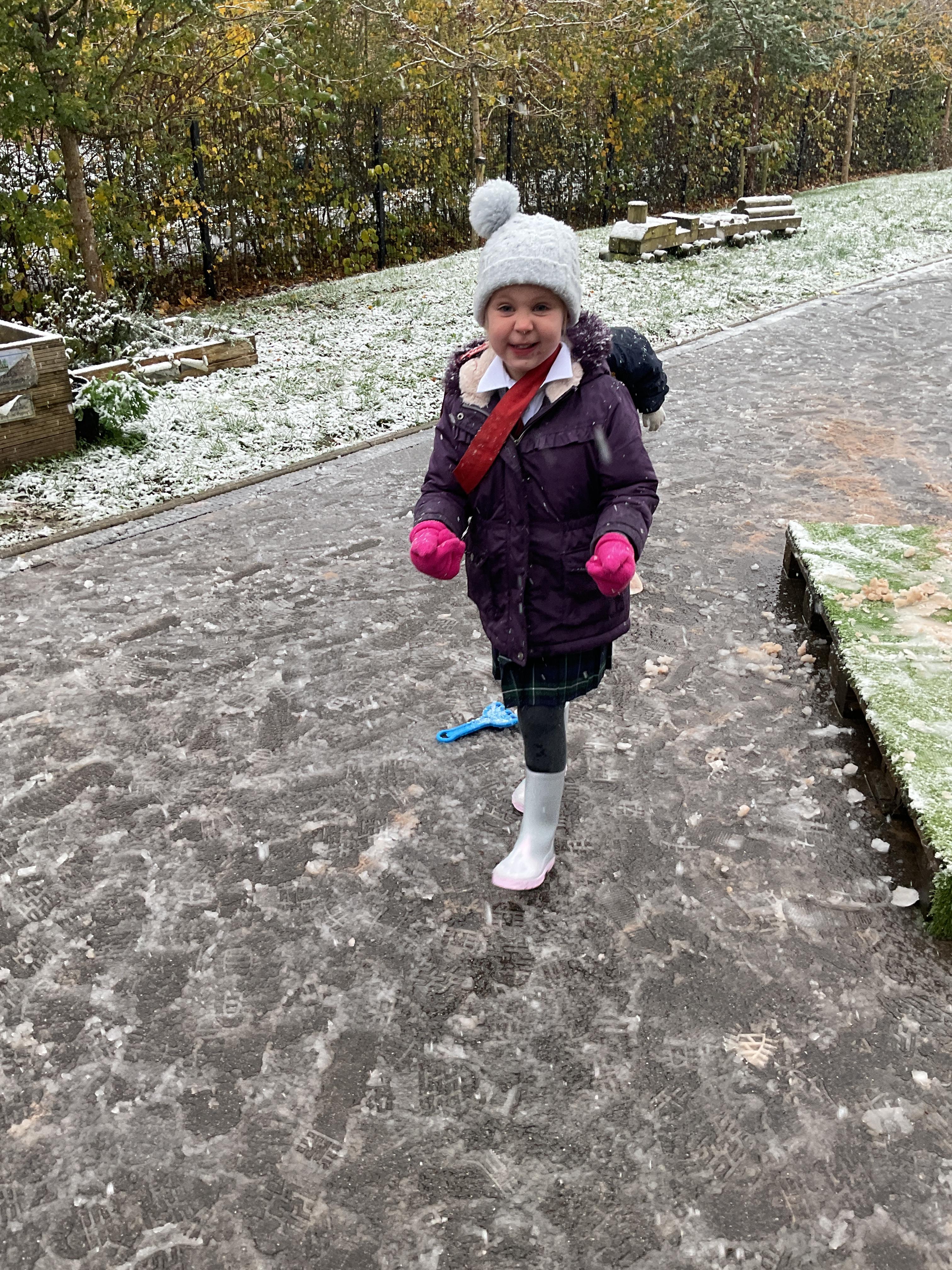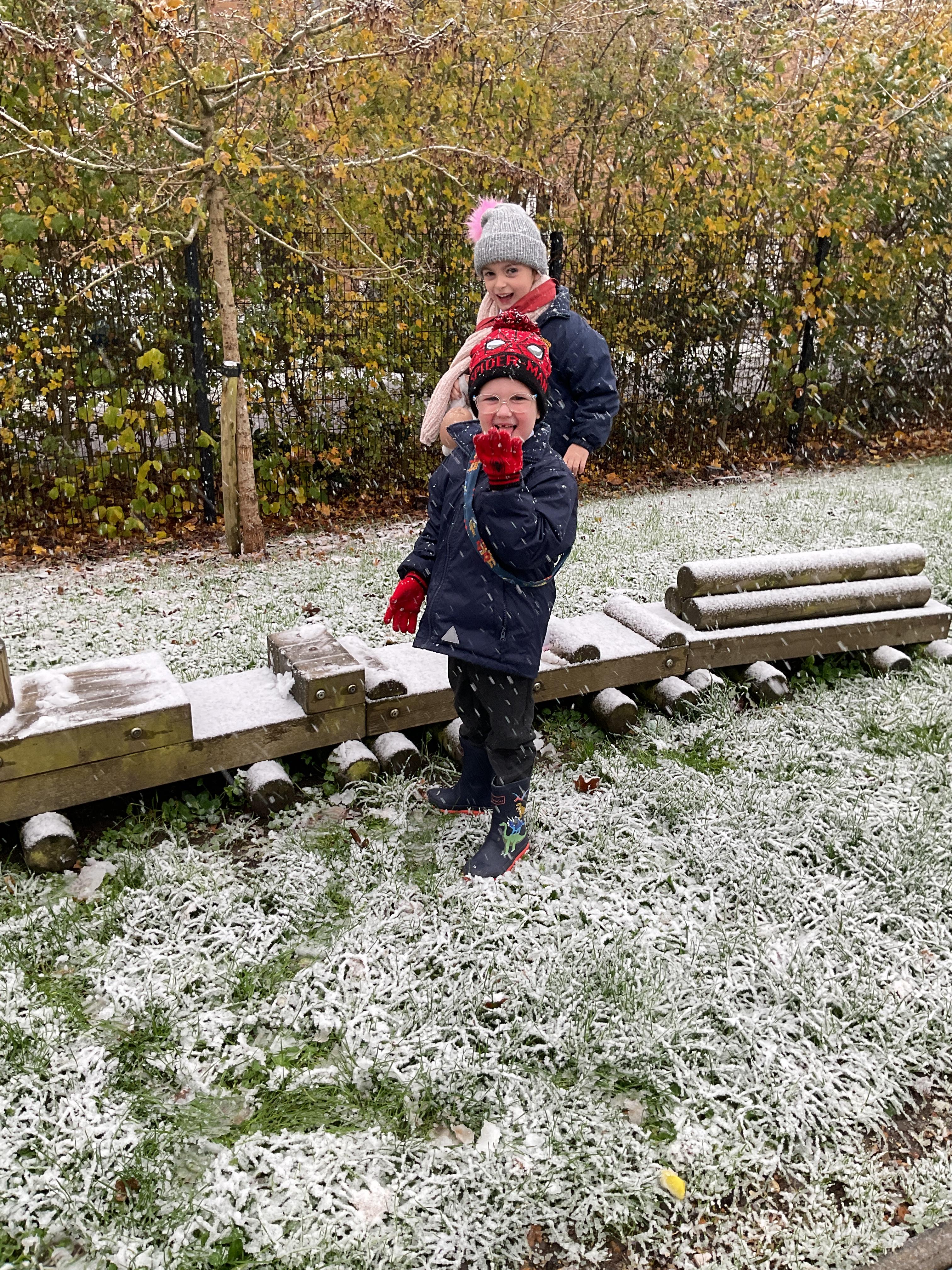 The children had a wonderful time playing in the snow. They enjoyed trying to catch the snowflakes, exploring the ice, making footprints and making snowballs. They then all went out on the playground to play with the rest of year one and two.