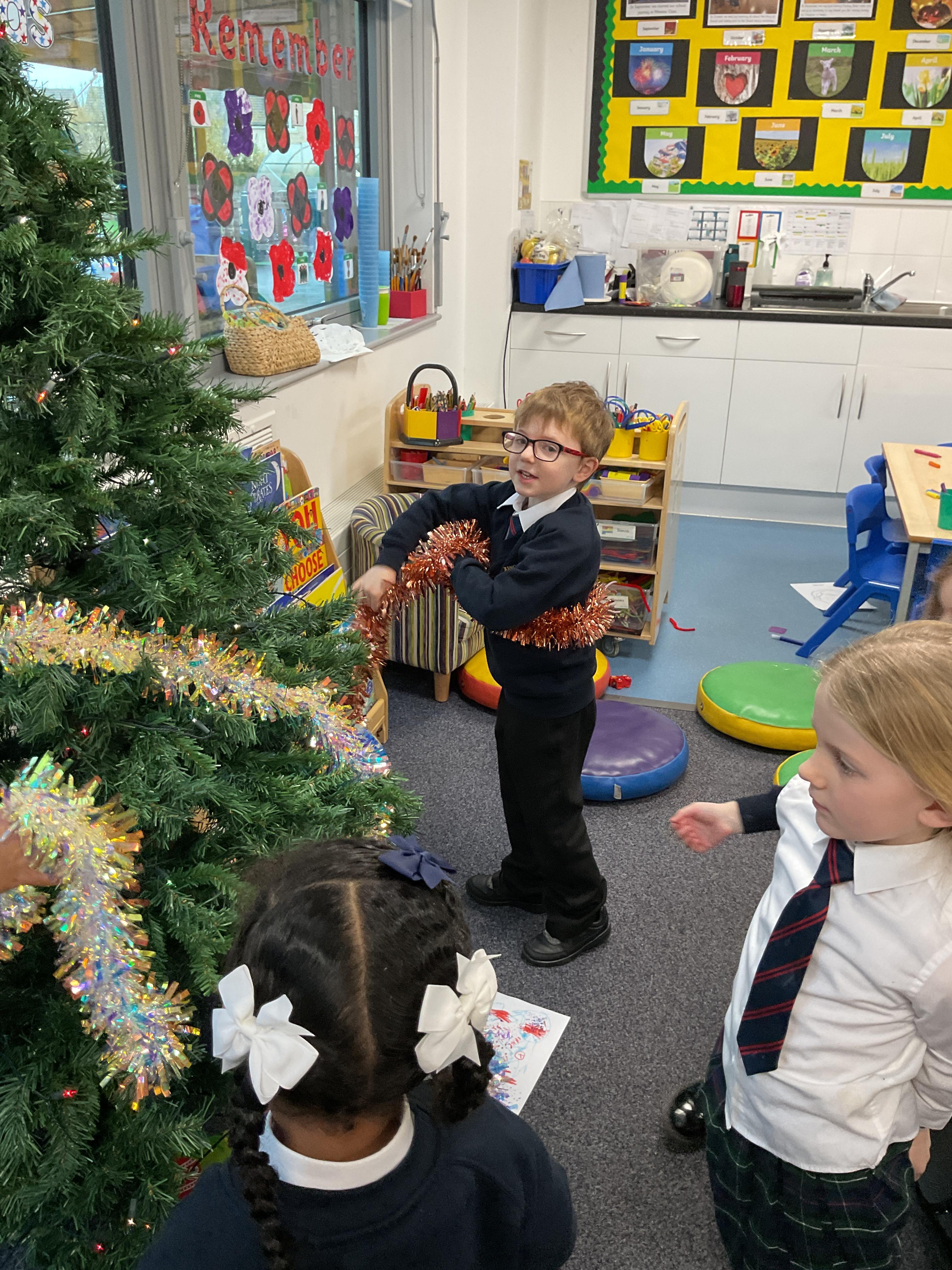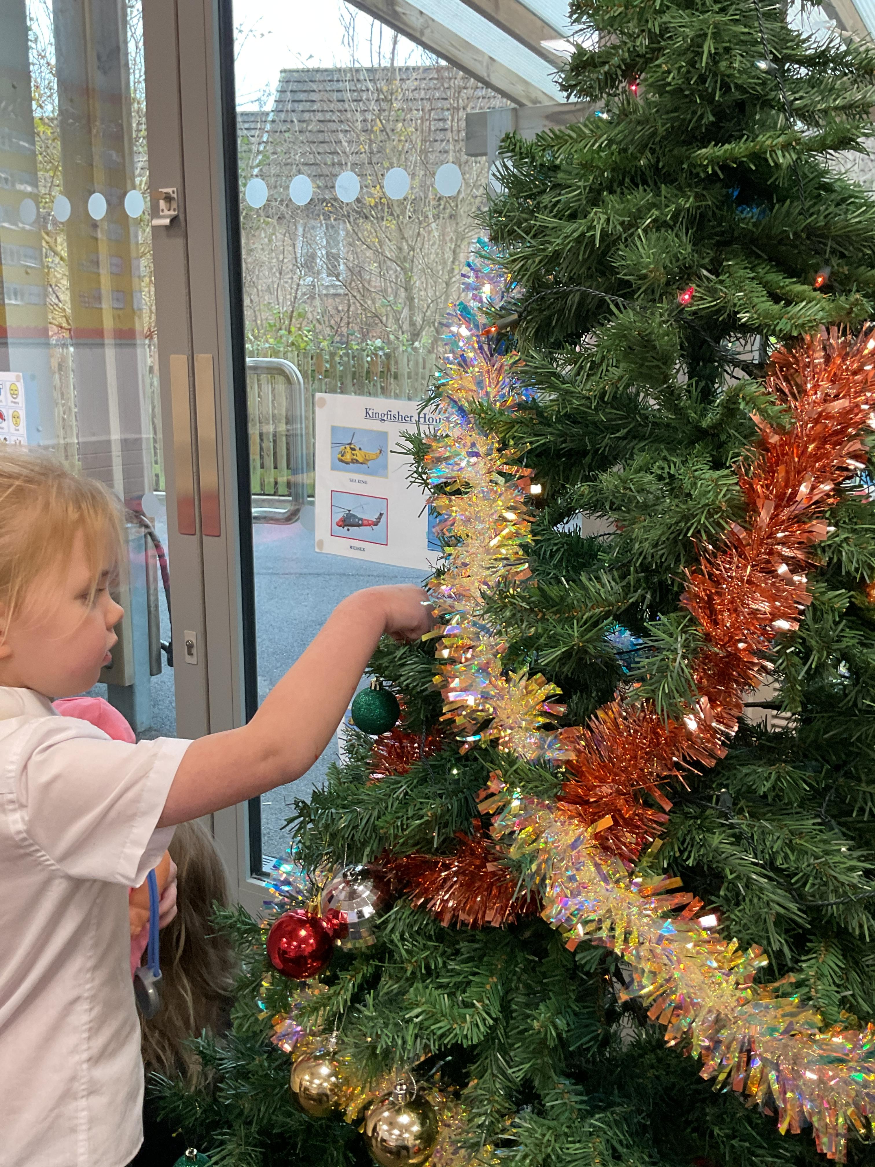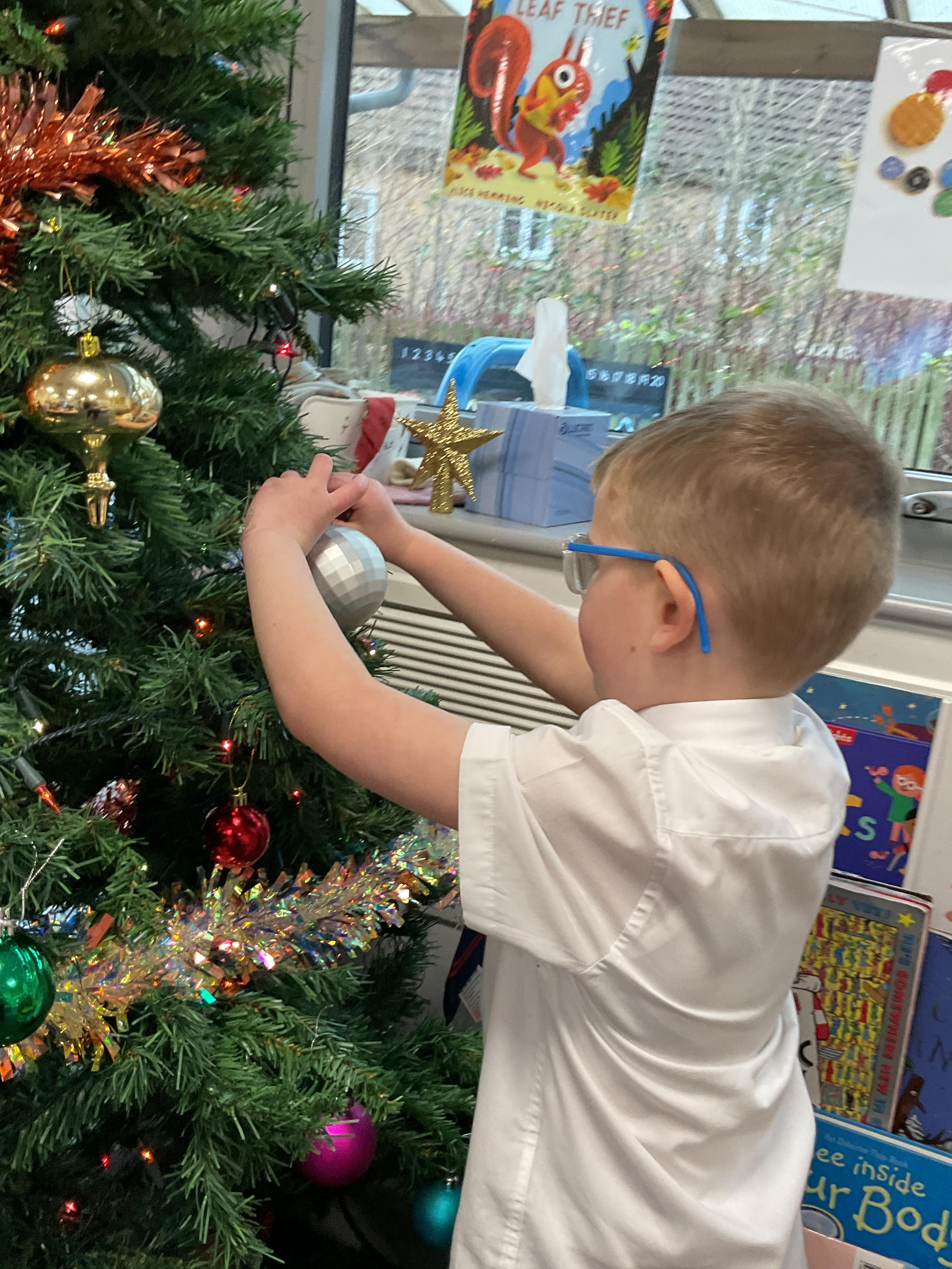 The children all had a great time getting into the Christmas spirt by decorating our class Christmas tree. They all enjoyed putting on the baubles and dancing with the tinsel. They then finished off the afternoon with a bit of festive dancing.