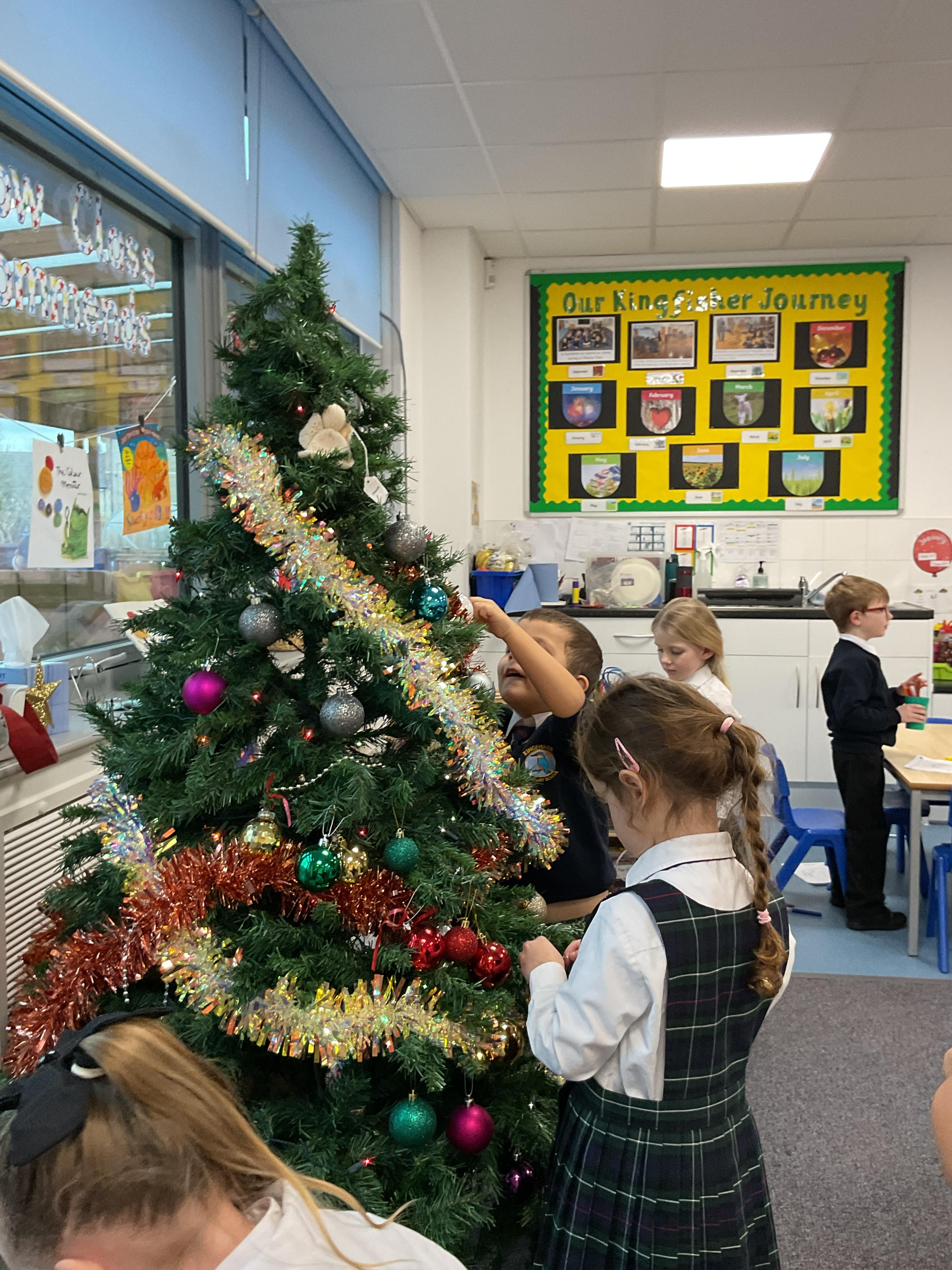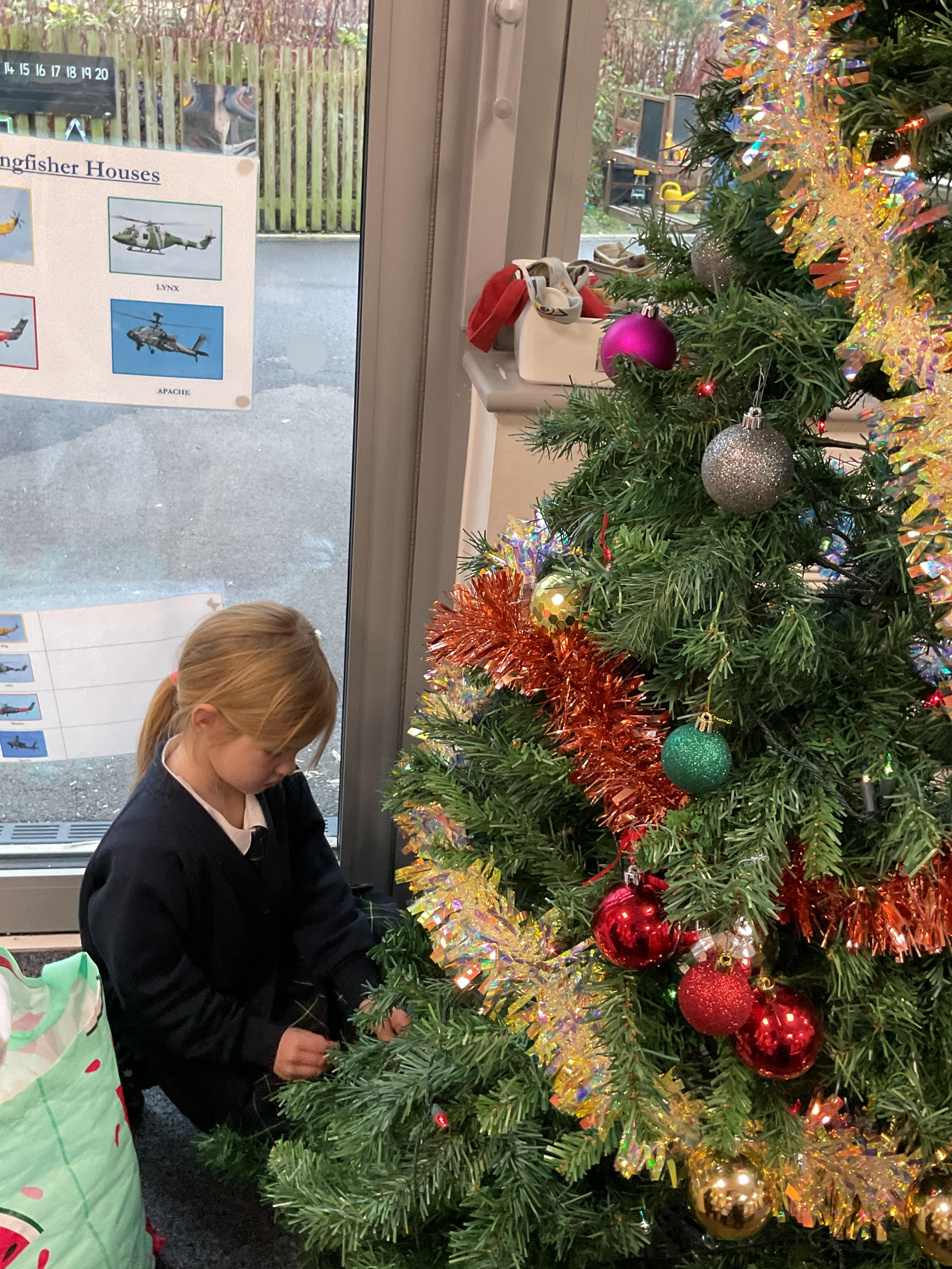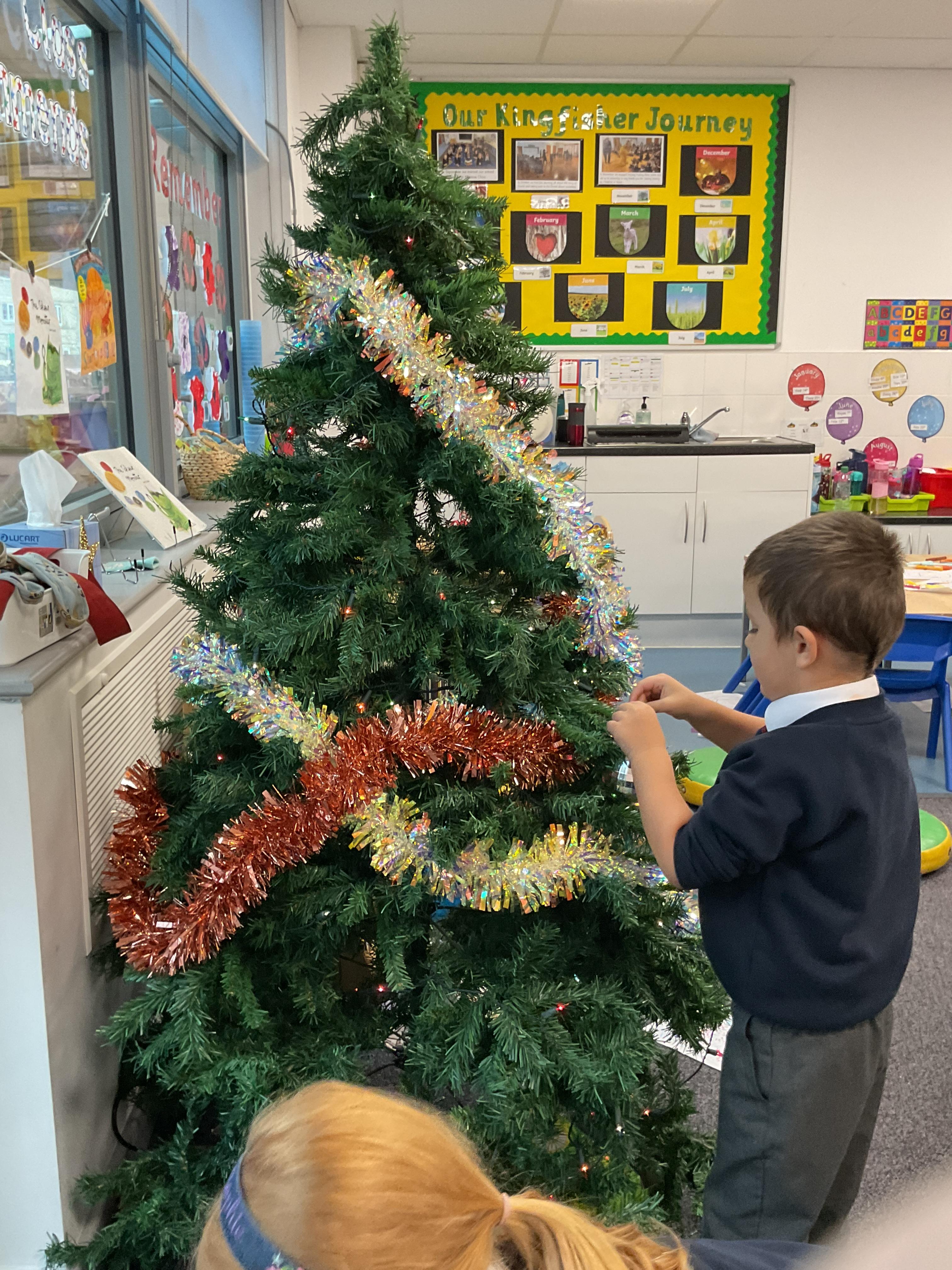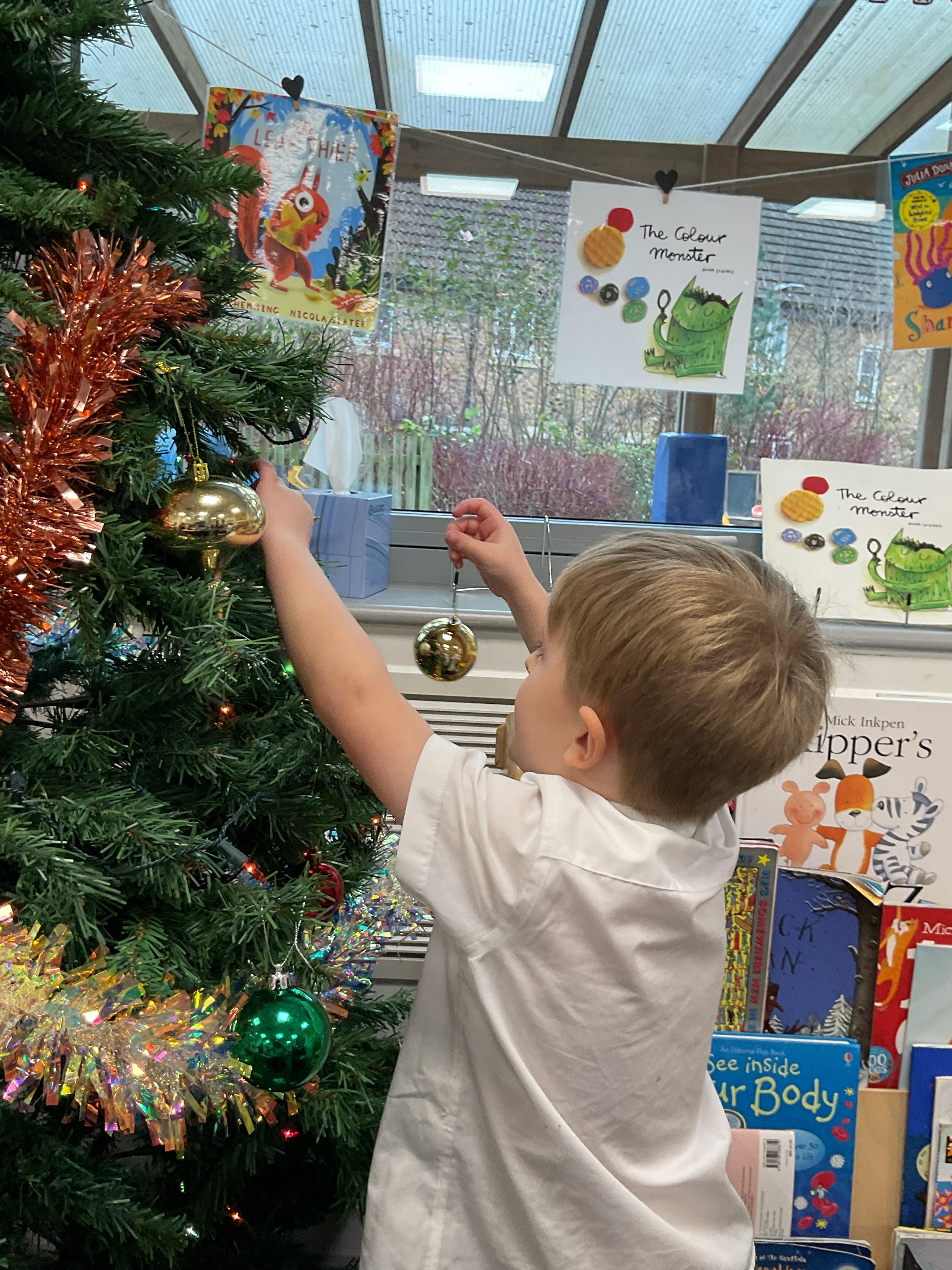 The children all had a great time getting into the Christmas spirt by decorating our class Christmas tree. They all enjoyed putting on the baubles and dancing with the tinsel. They then finished off the afternoon with a bit of festive dancing.