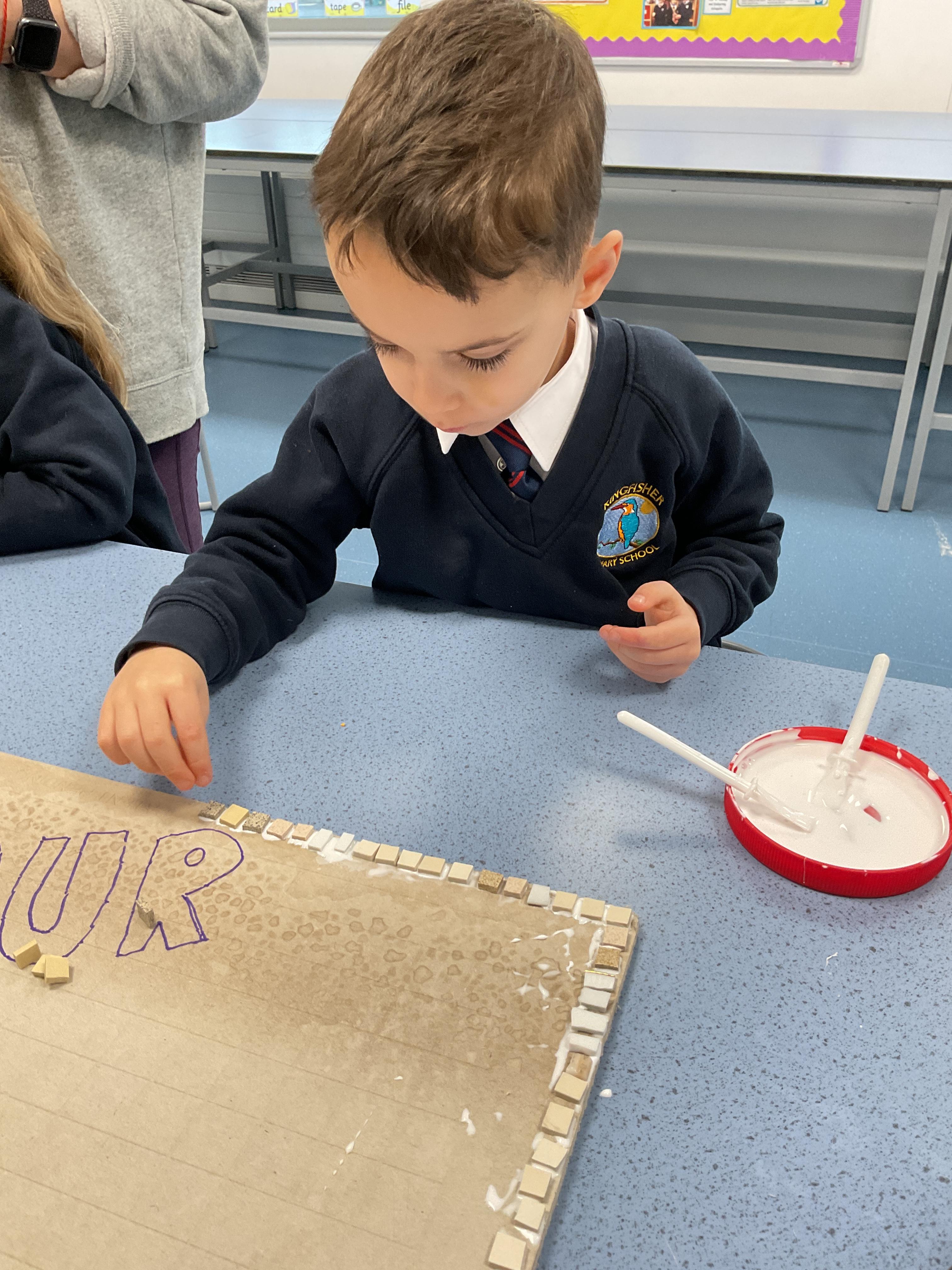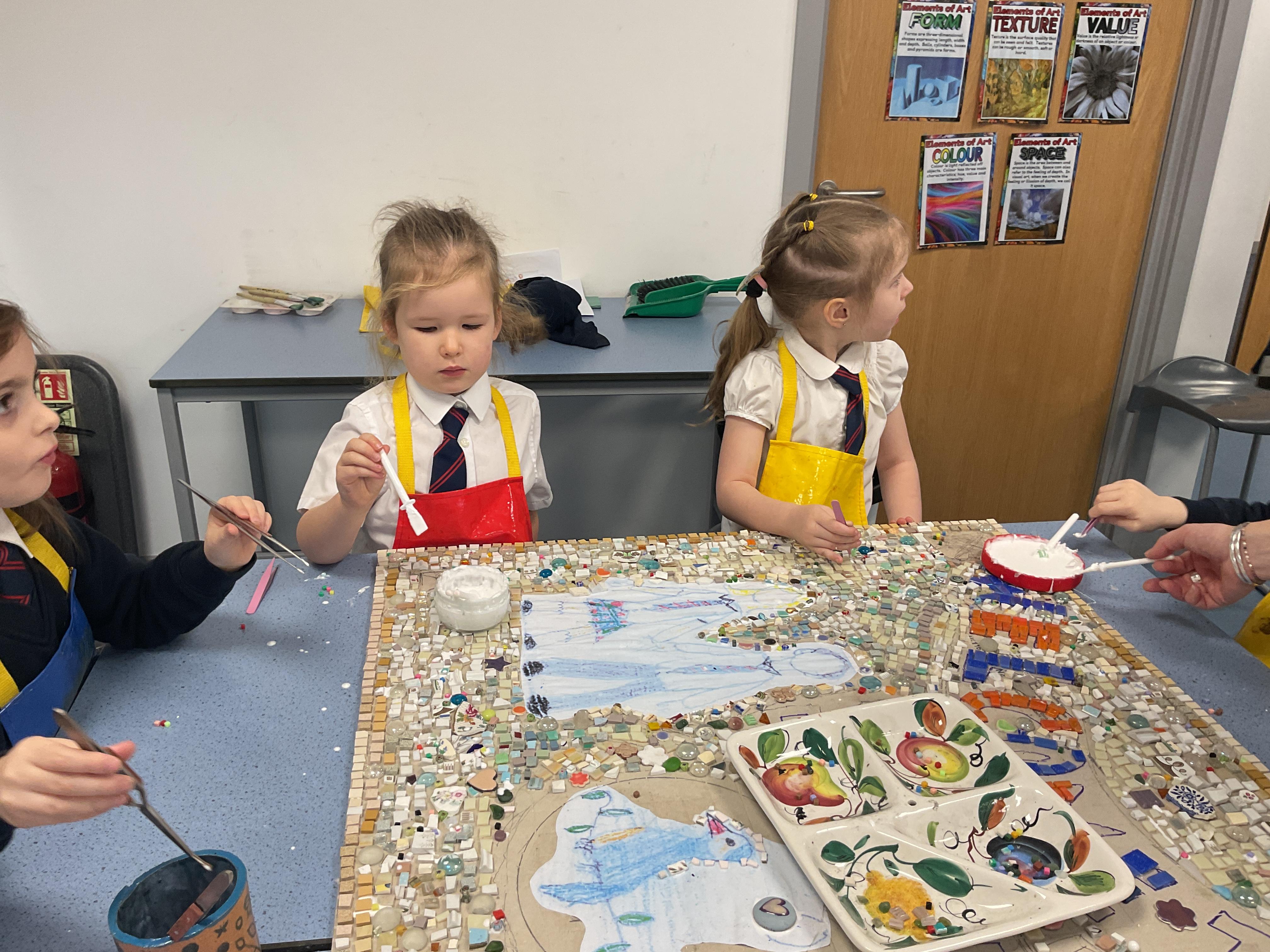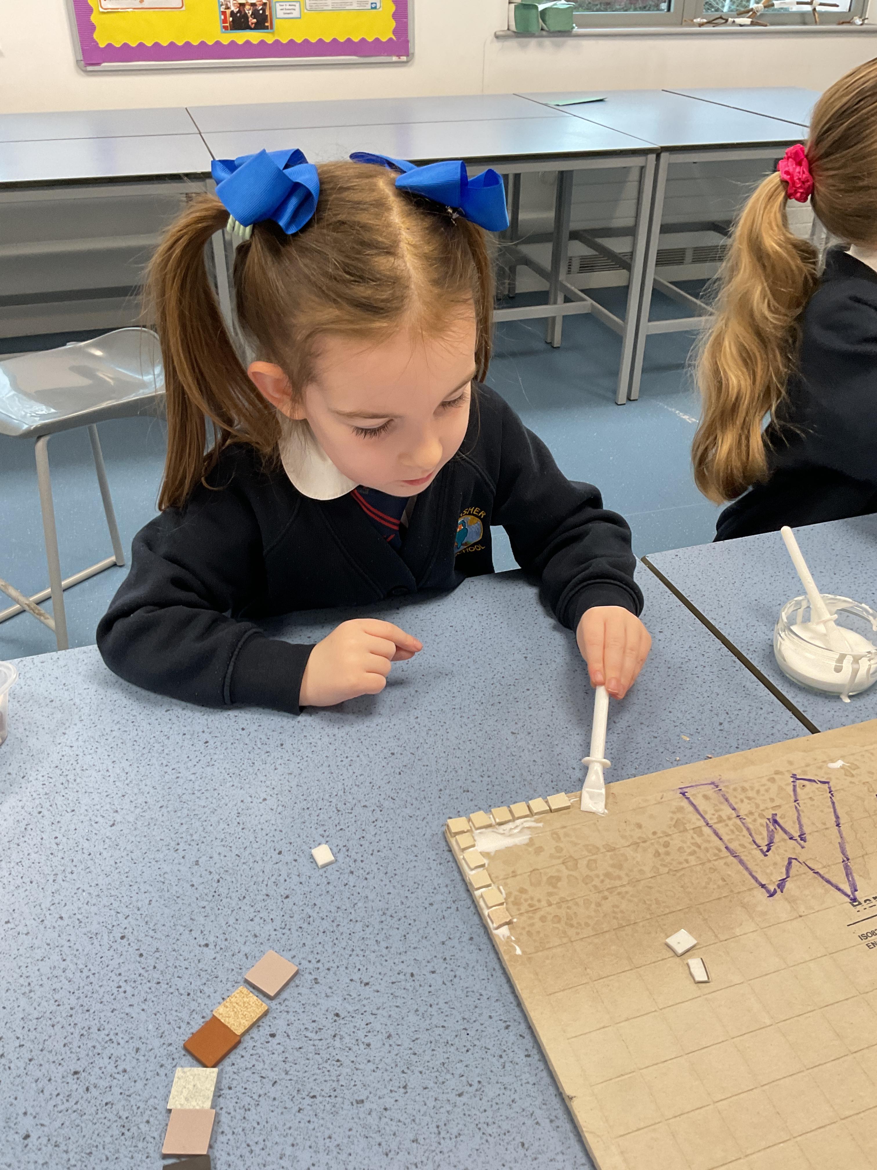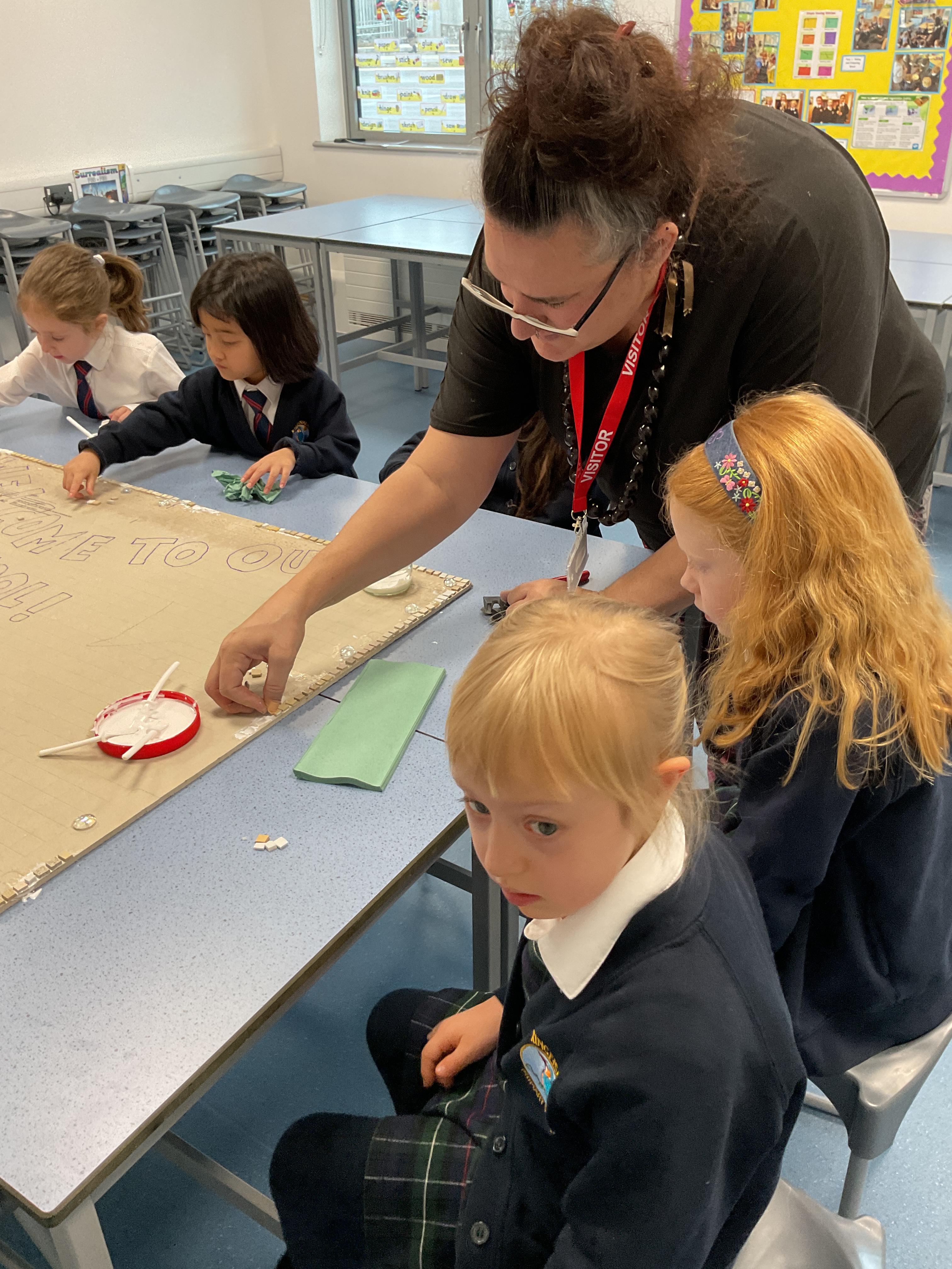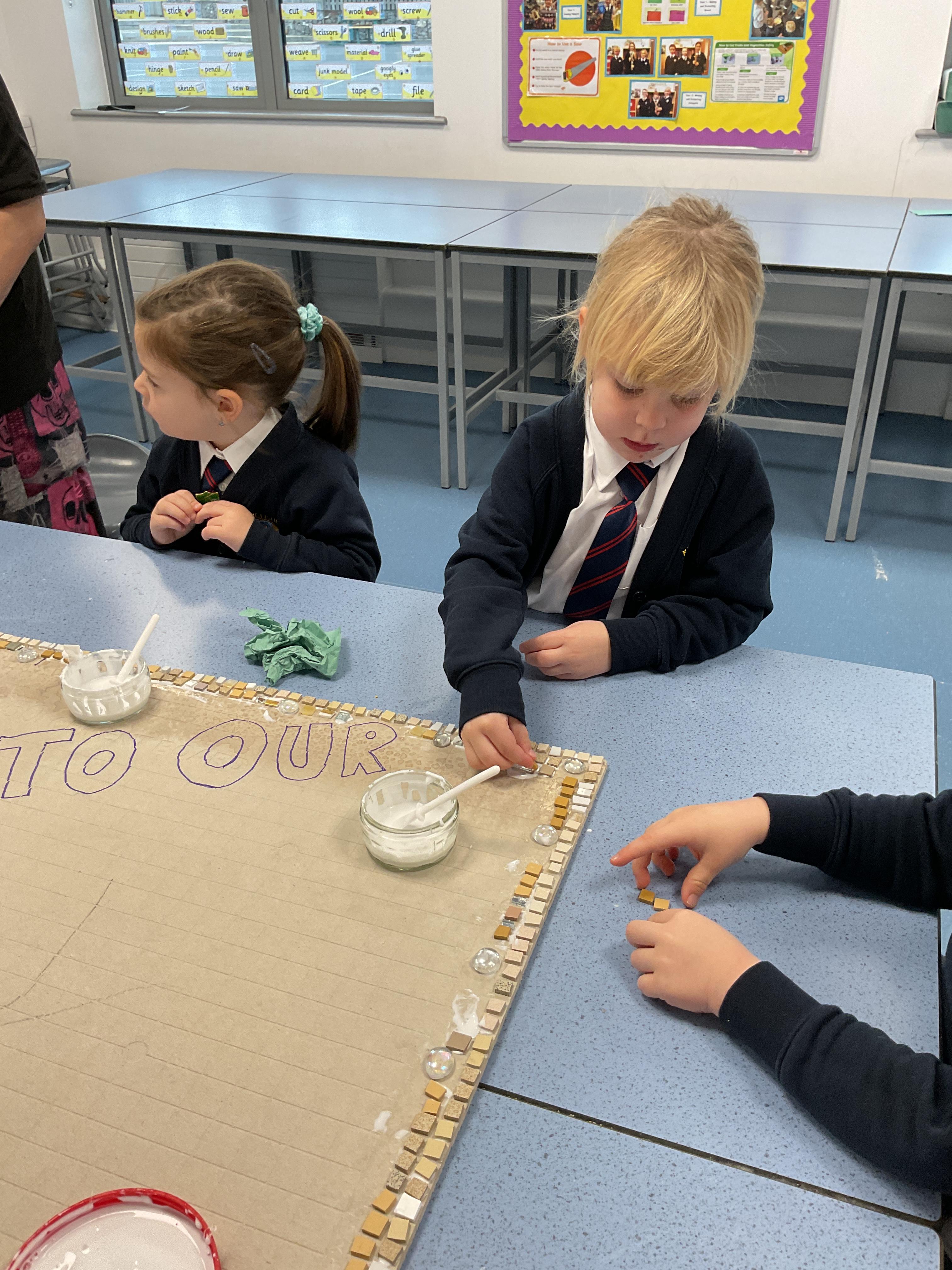 The children really enjoyed having the opportunity to take part in the mosaic workshop. Every child placed some pieces of mosaic into the schools new welcome sign.