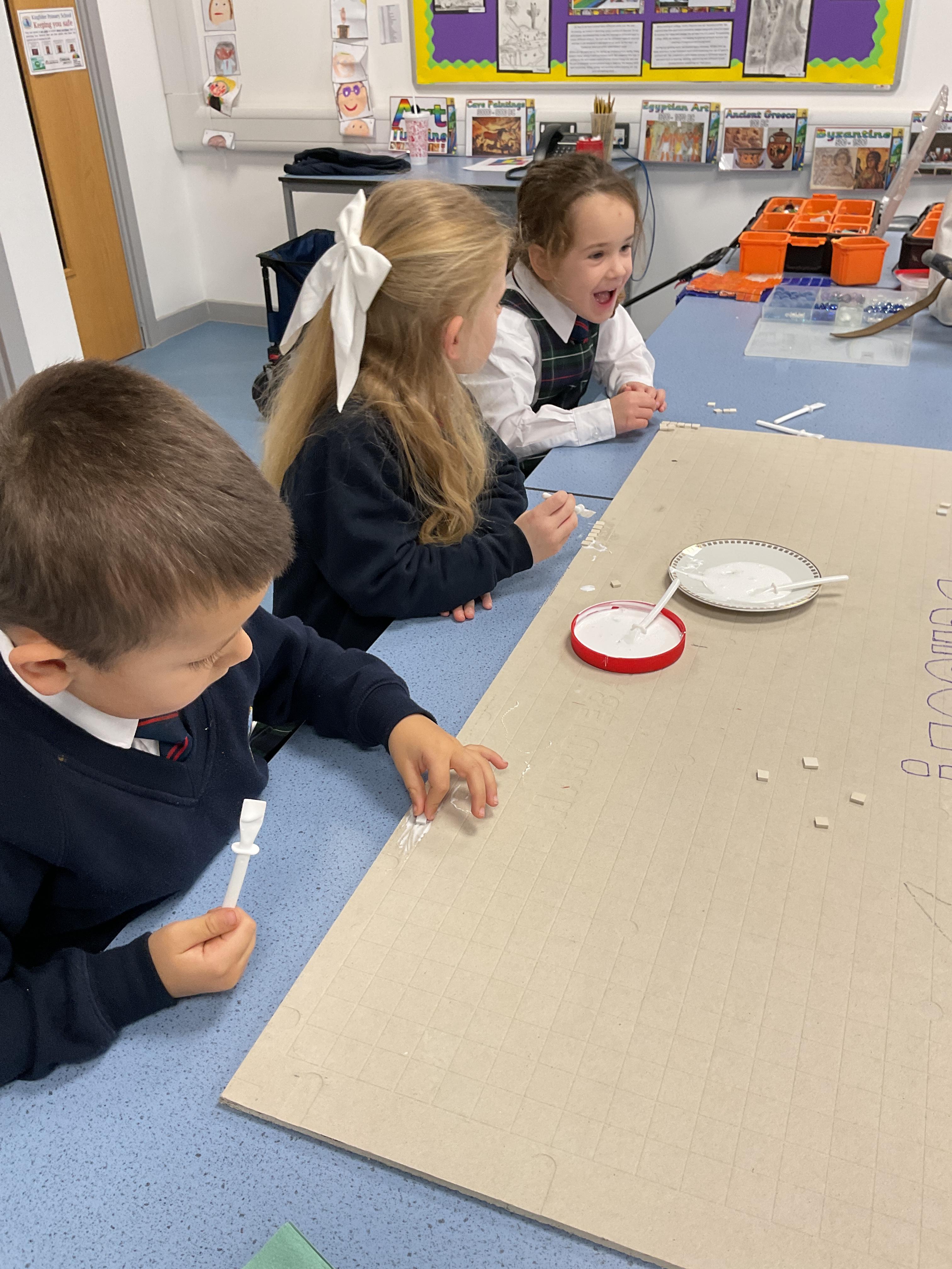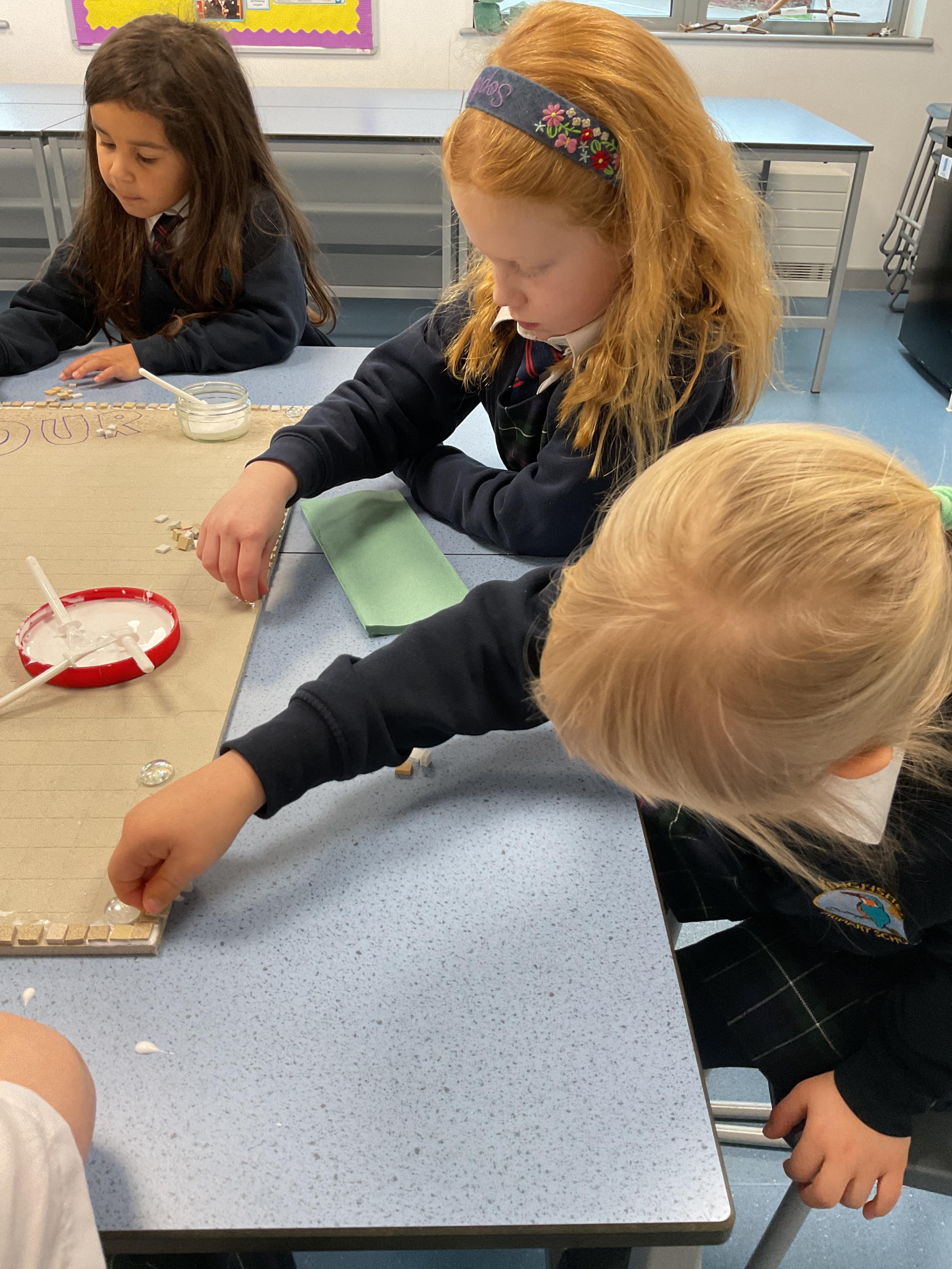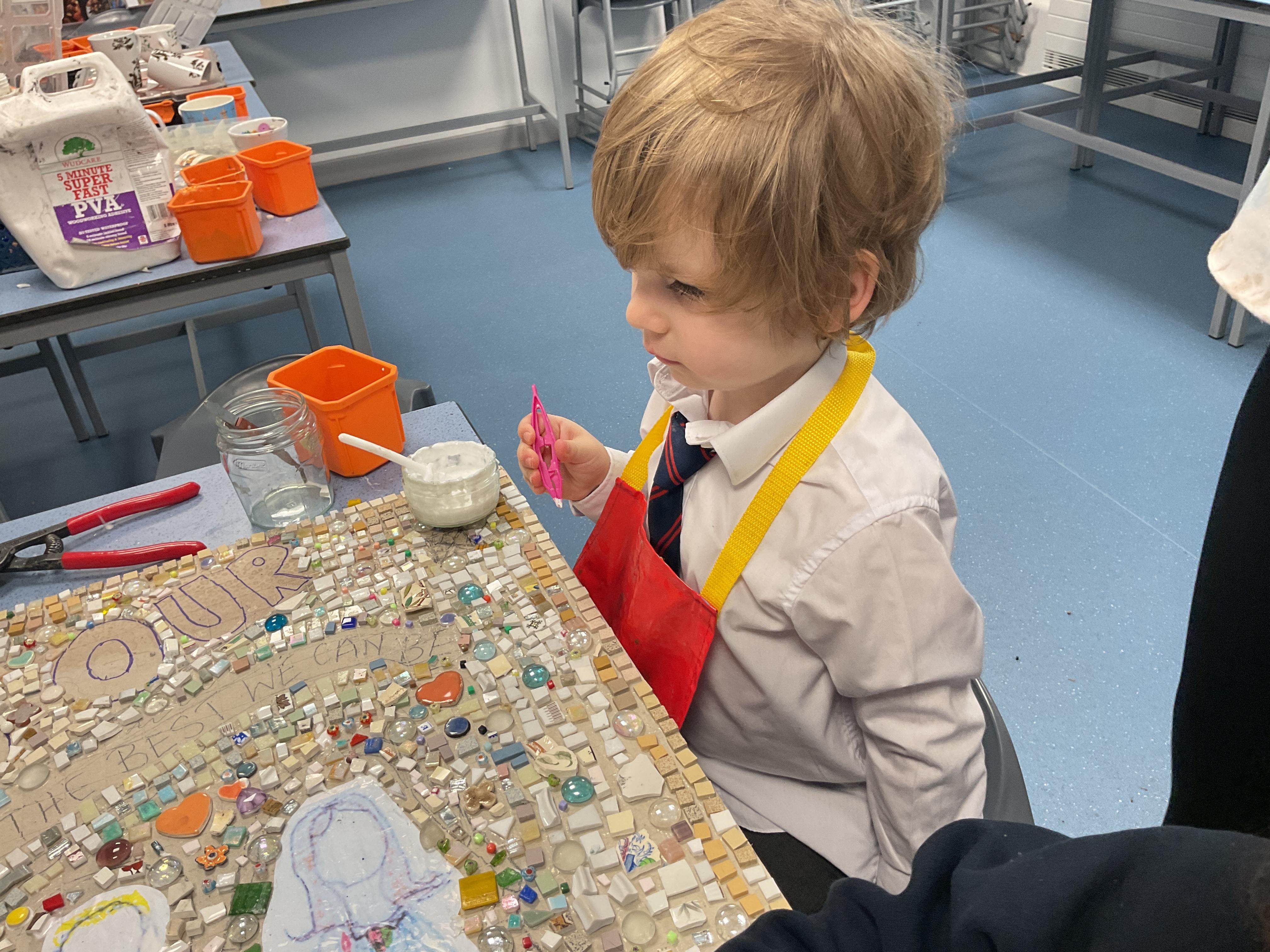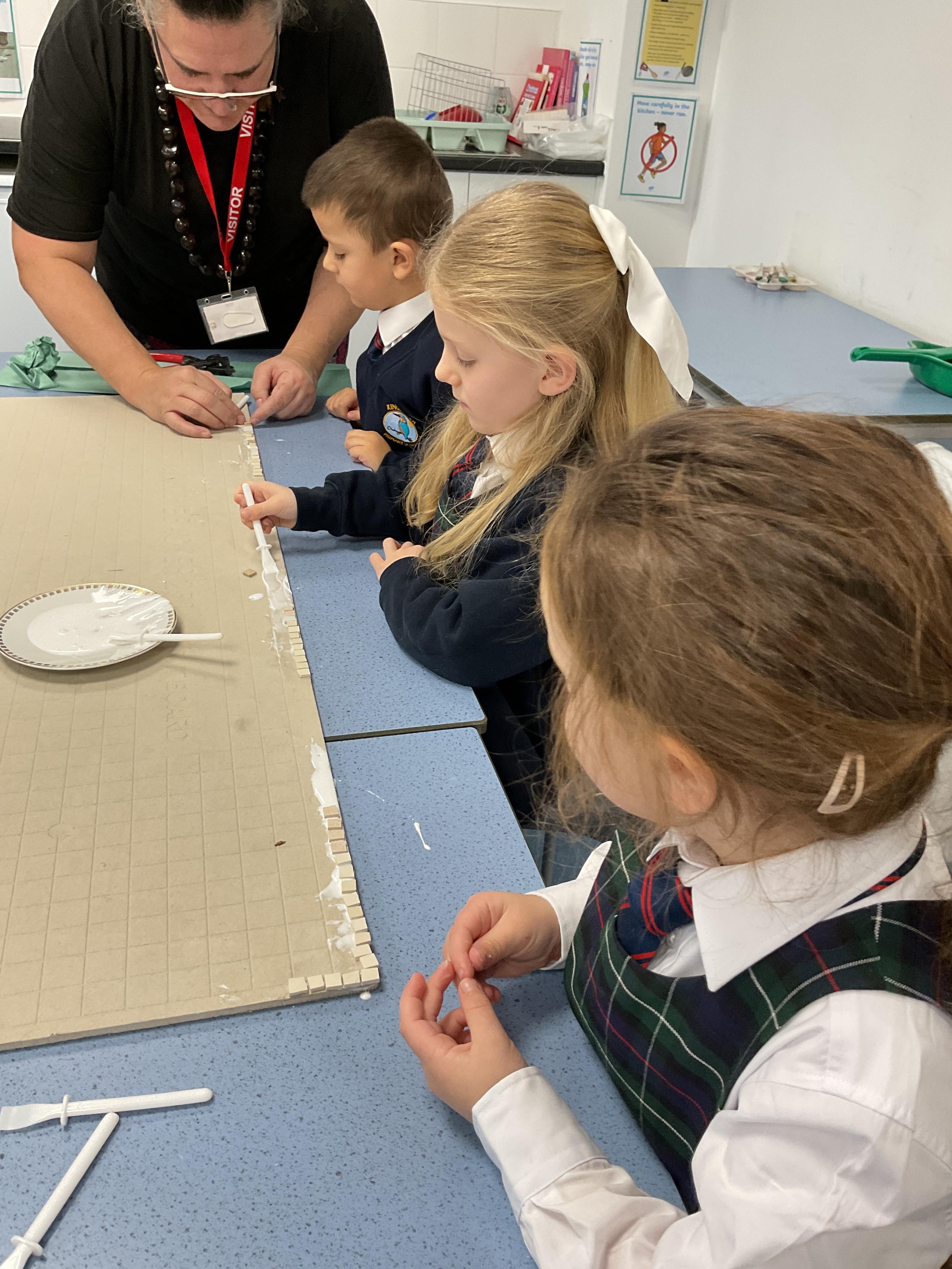 The children really enjoyed having the opportunity to take part in the mosaic workshop. Every child placed some pieces of mosaic into the schools new welcome sign.